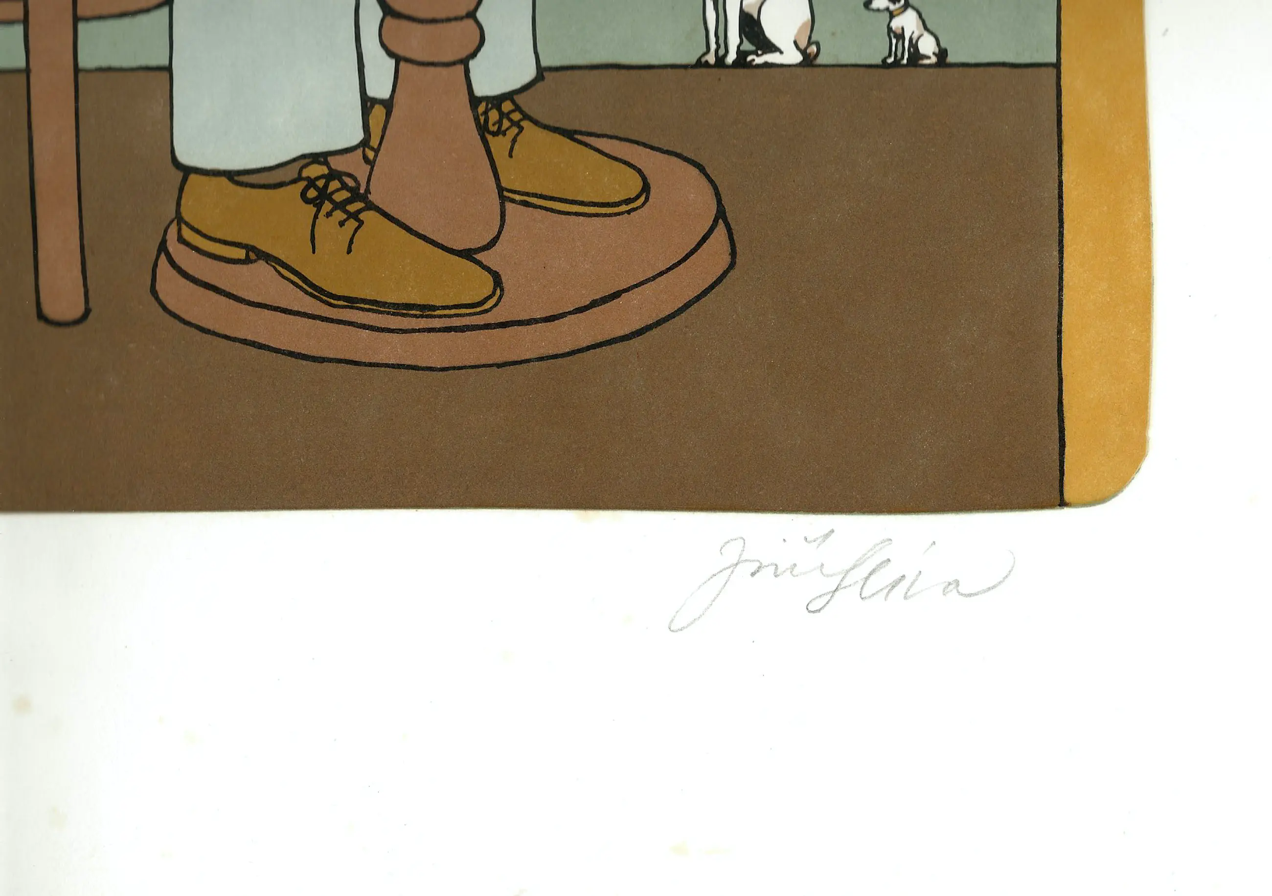 originele steendruk van Jiri Sliva uit de serie Cafés