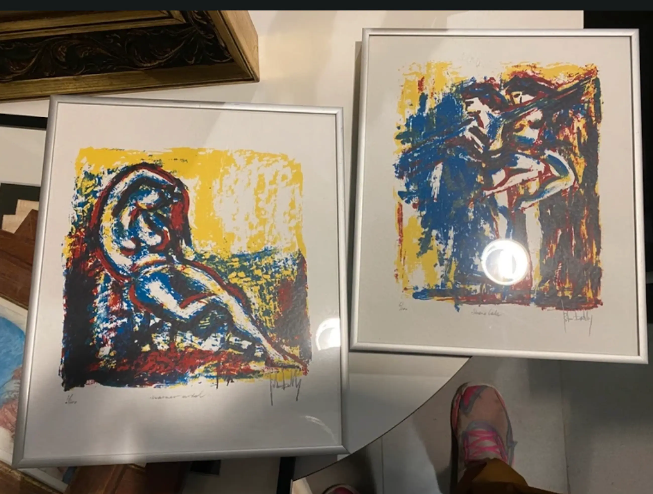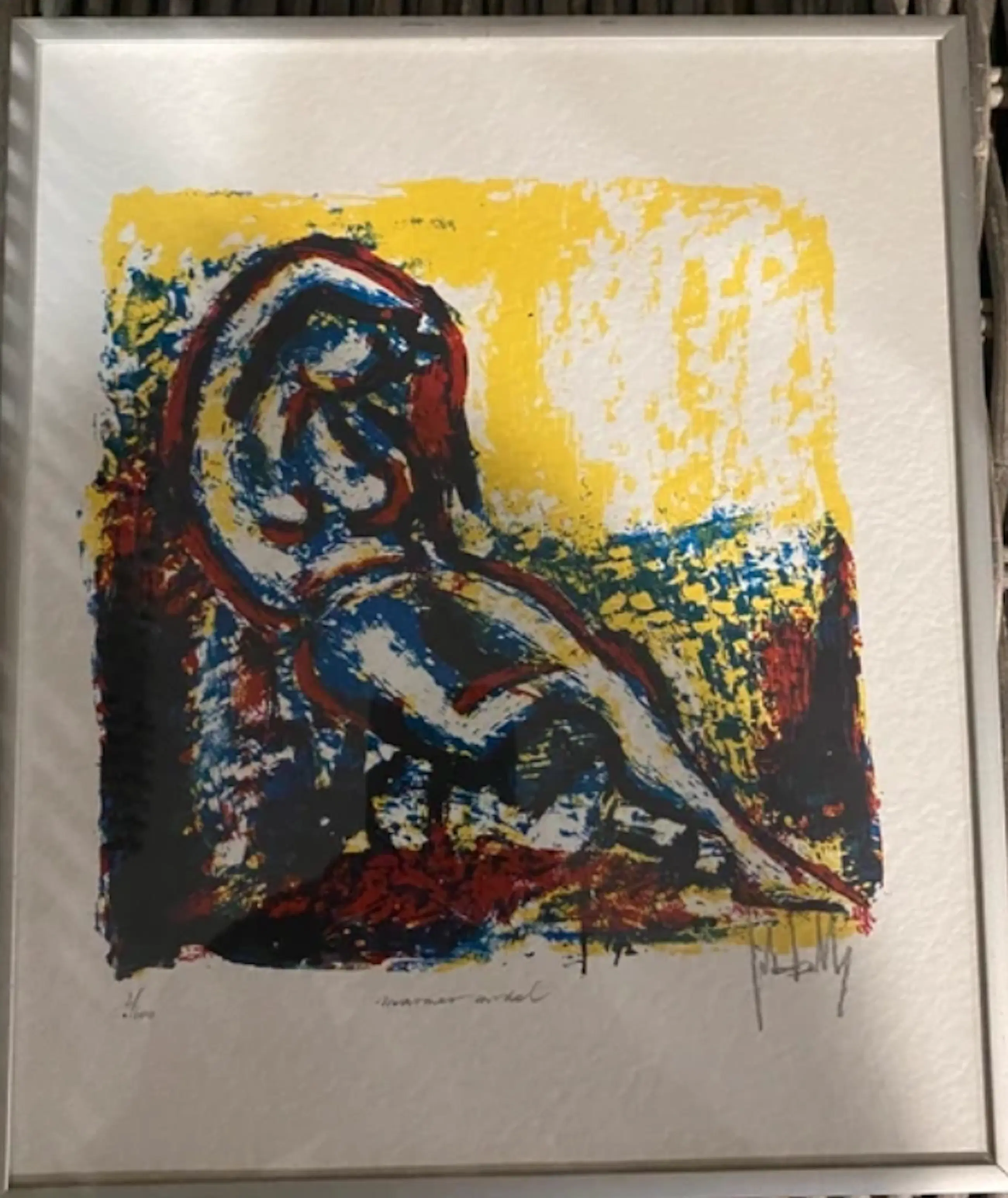 Ontdek de expressieve kracht van deze zeefdrukken. Deze kunstwerken, gesigneerd door de kunstenaar zelf, vangen de essentie van de menselijke vorm met een dynamische en kleurrijke benadering die kenmerkend is voor Bakker's stijl.