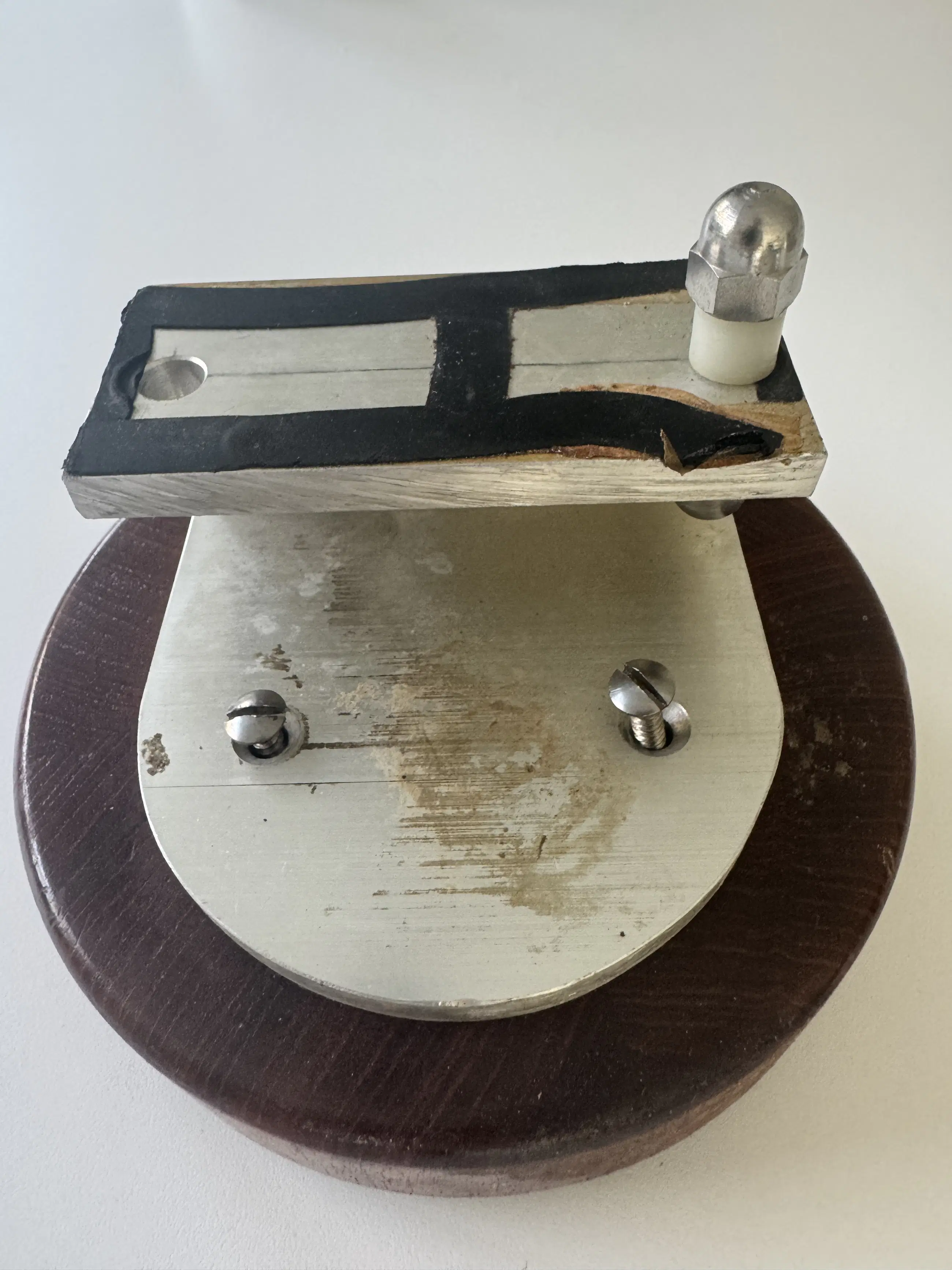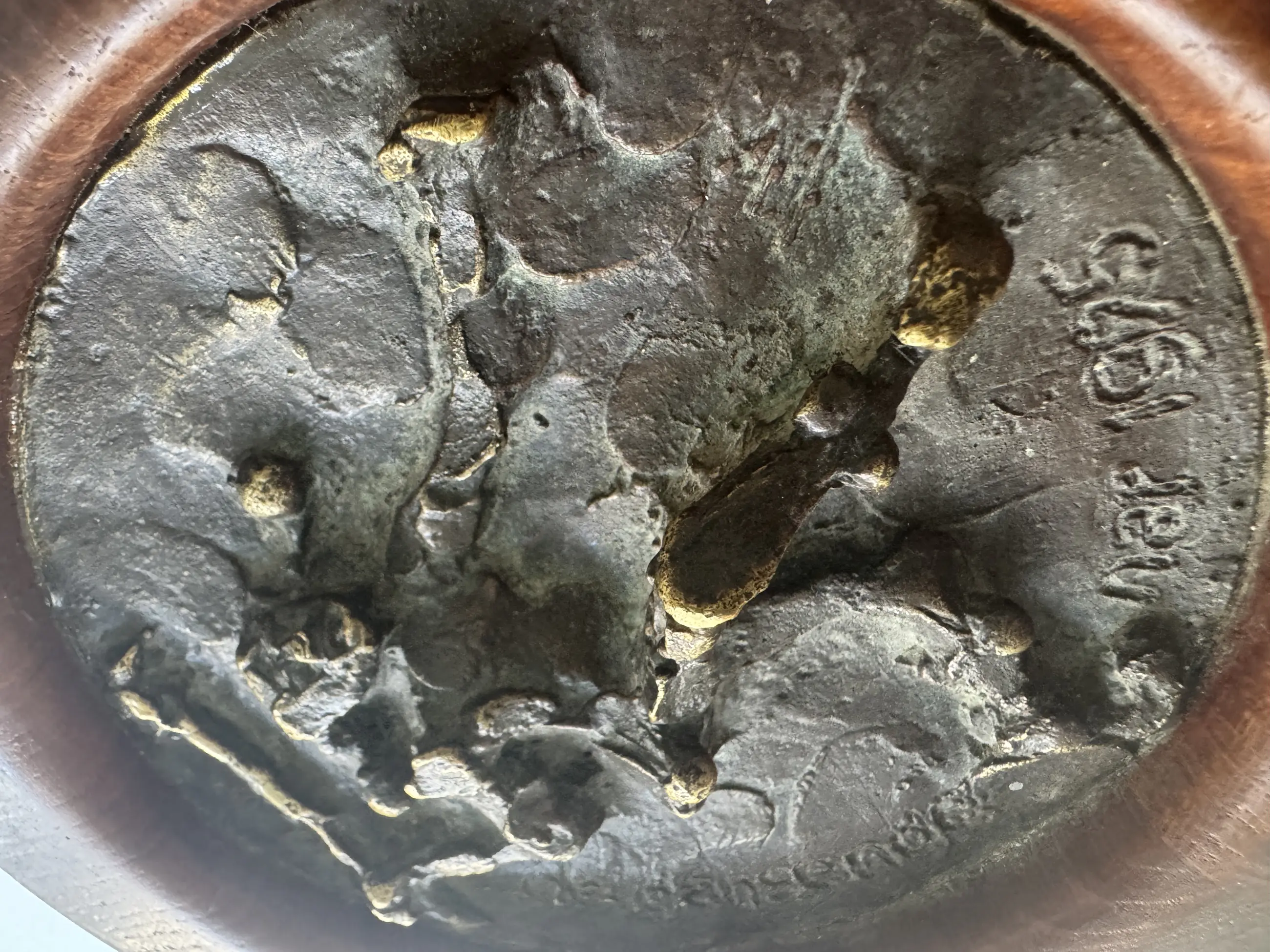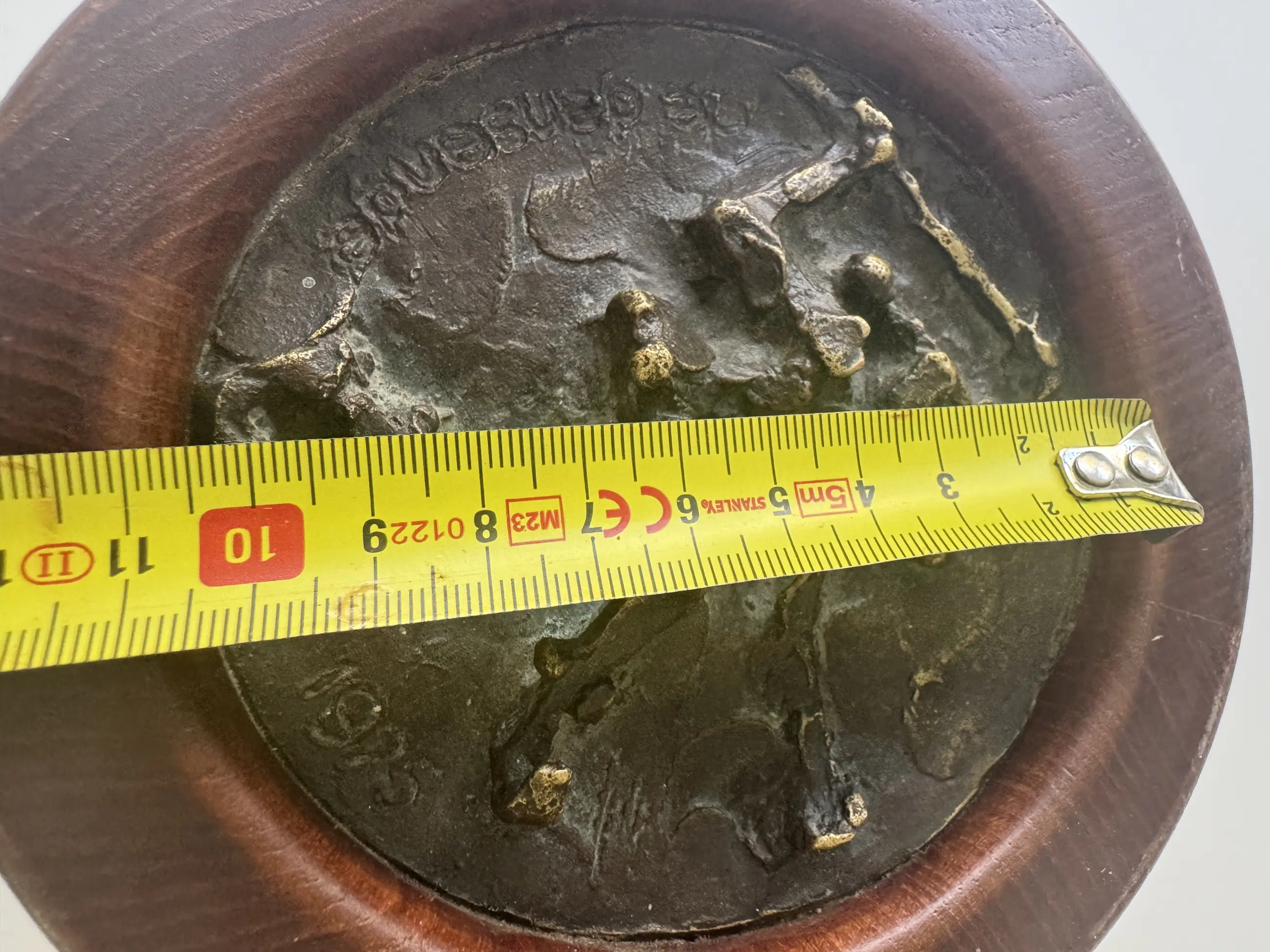 Zie foto's. Op zich prima conditie maar kleurverschillen door gebruik als deurknop aan bovenkant penning. Onderkant geen idee. Zit zo te zien gelijmd in het hout van de deurknop