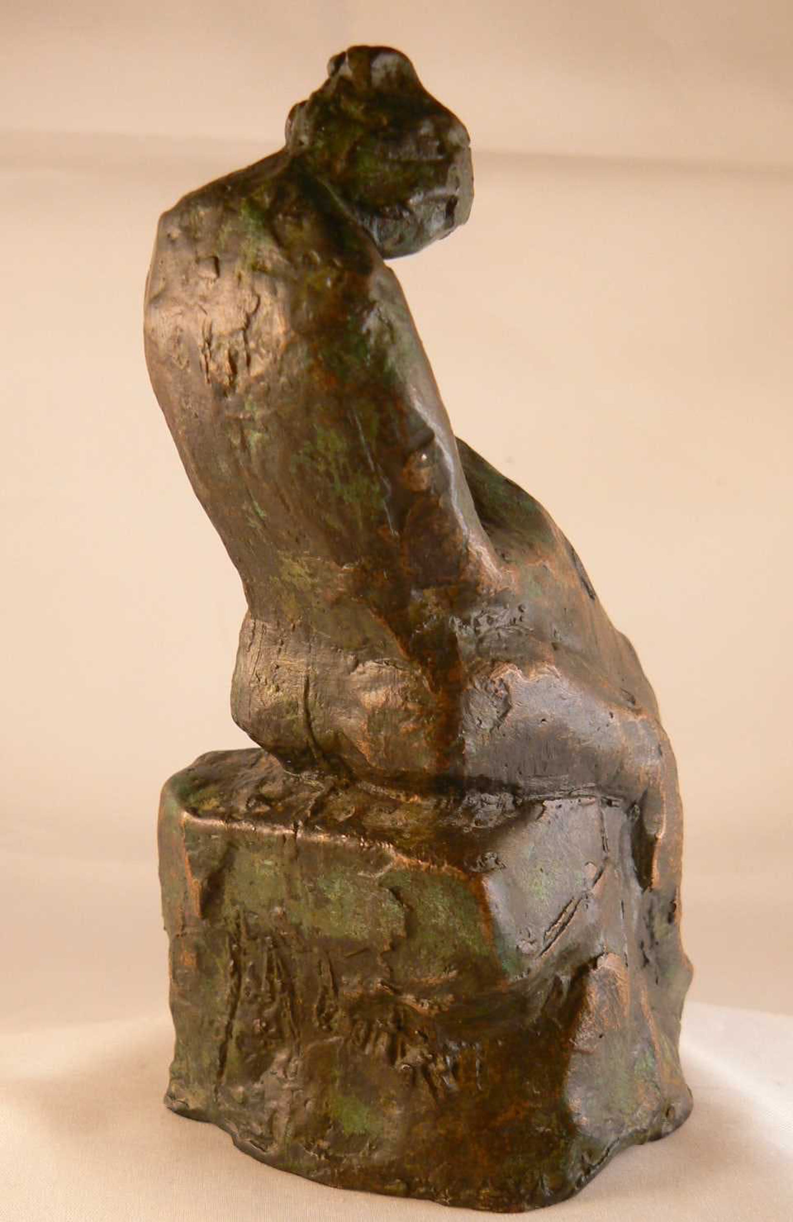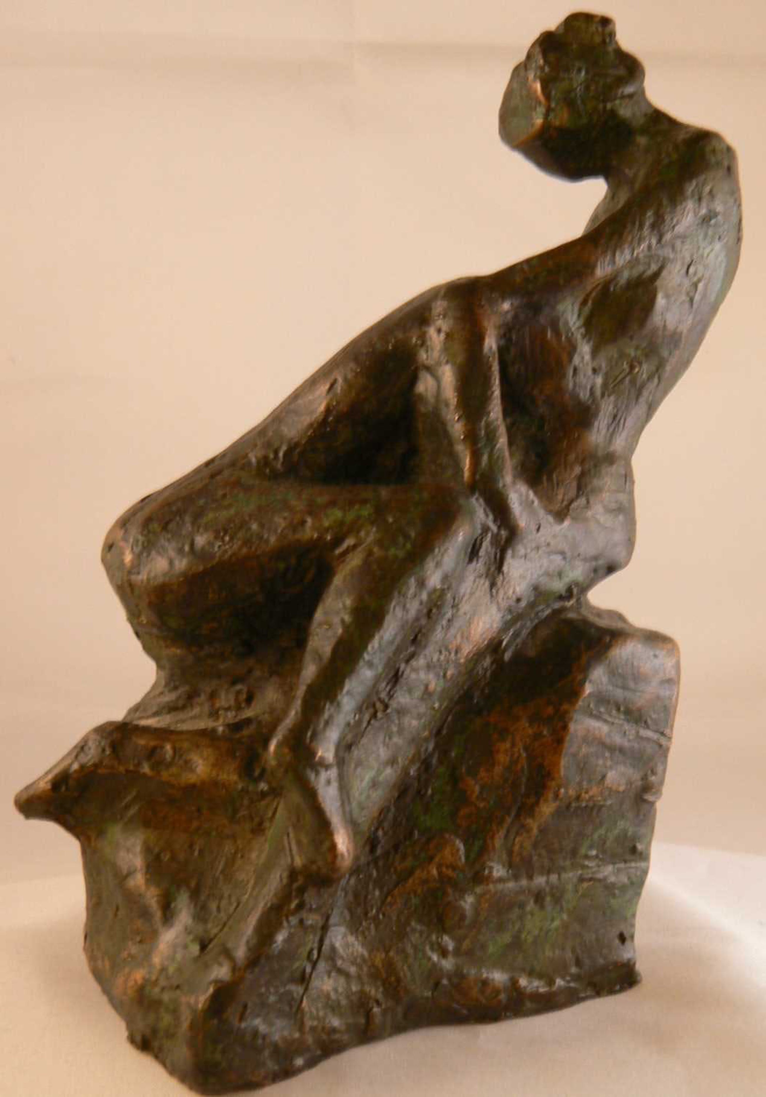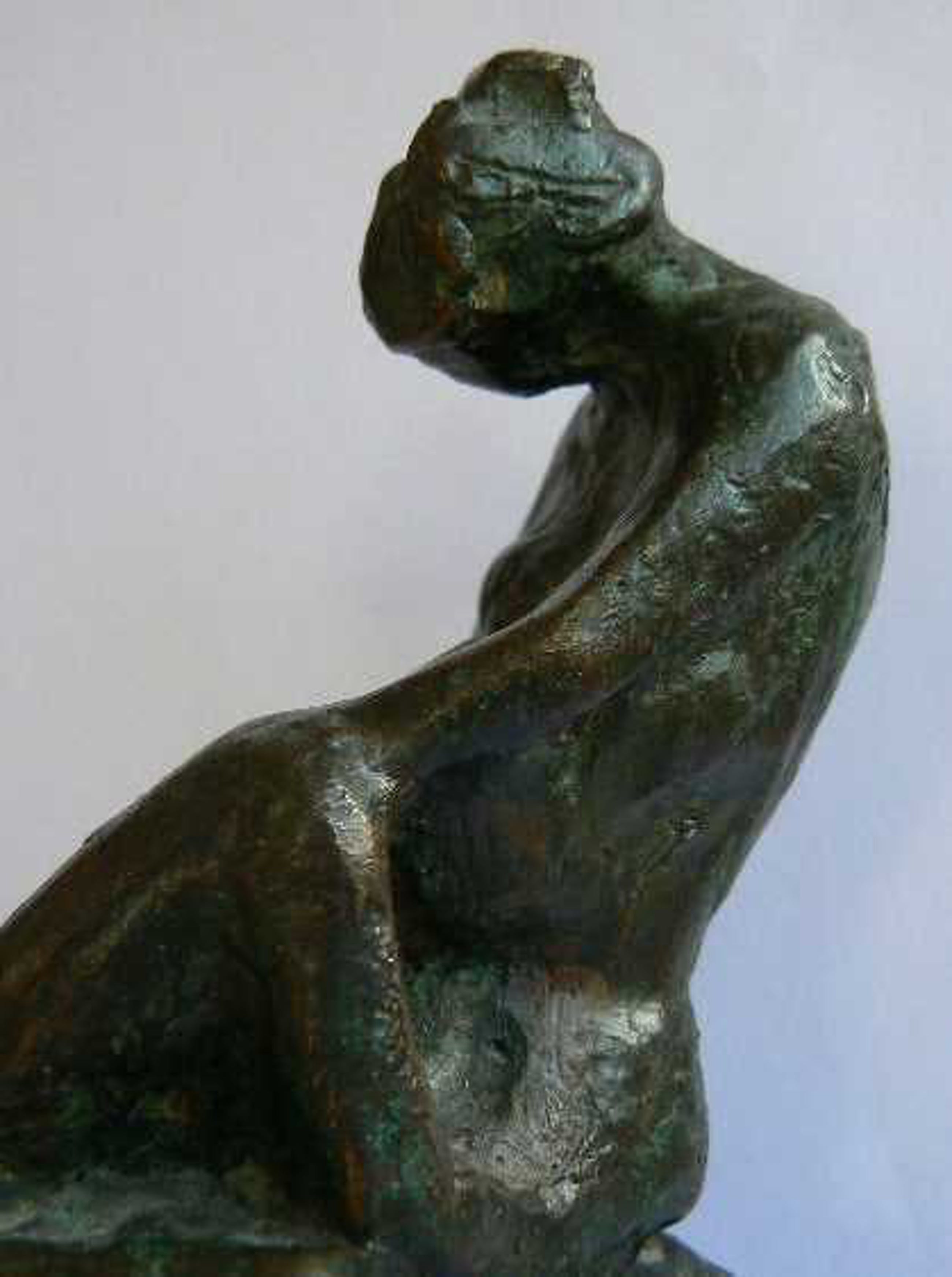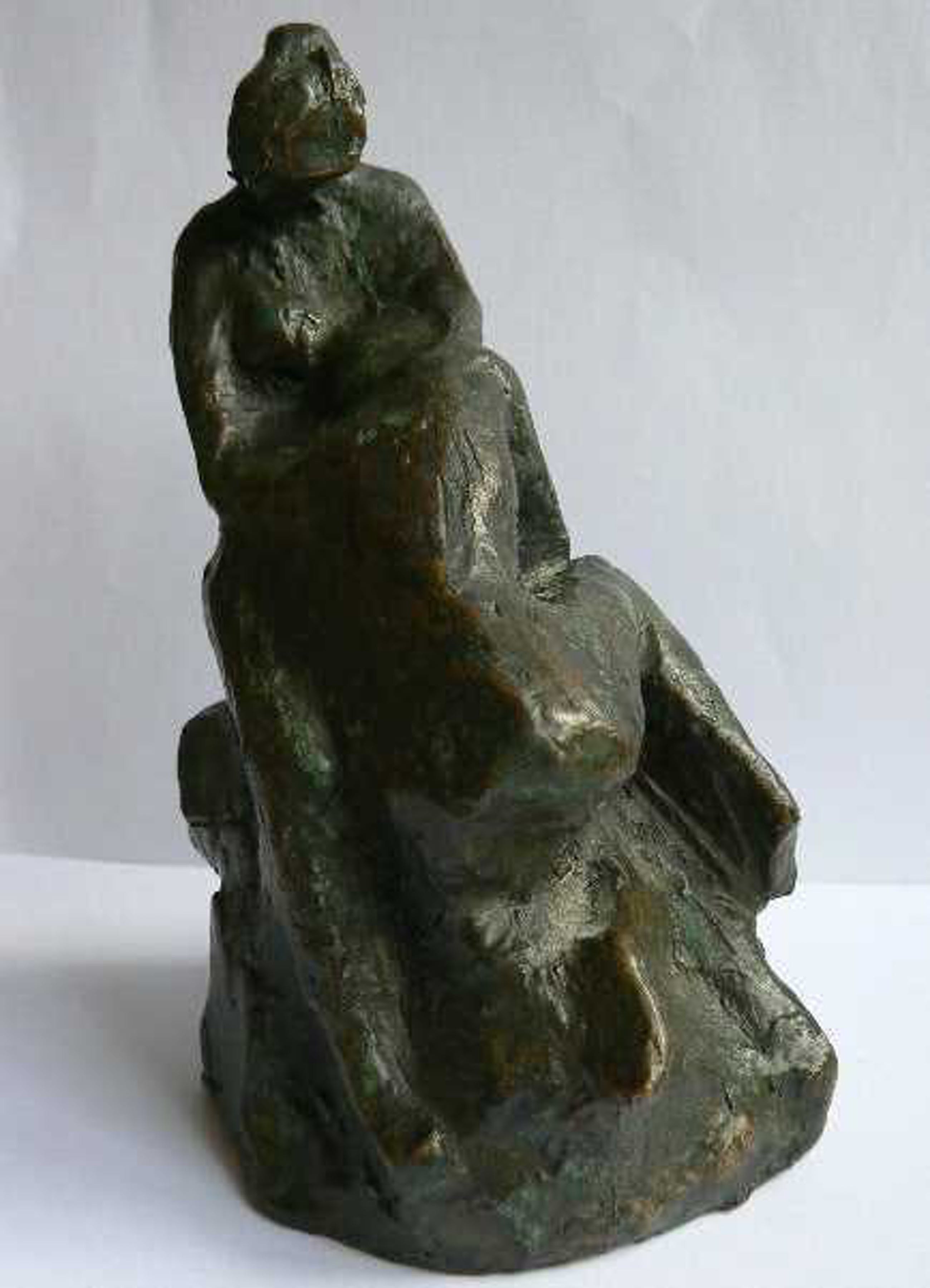 Bronzen beeldje gemaakt door Jits Bakker. Het gaat hier vermoedelijk om een studie in brons voor het bekend beeld Innigheid. Die later is uitgevoerd in Brons groot formaat en in marmer. Zie boek Jits Bakker 1987 ISBN 906216093 pagina 62 en 79 Gesigneerd, wel een beetje onduidelijk gesigneerd omdat het hier om een studie gaat. 14,5 cm hoog 7 cm breed 10 cm lang gewicht ongeveer 990 gram.