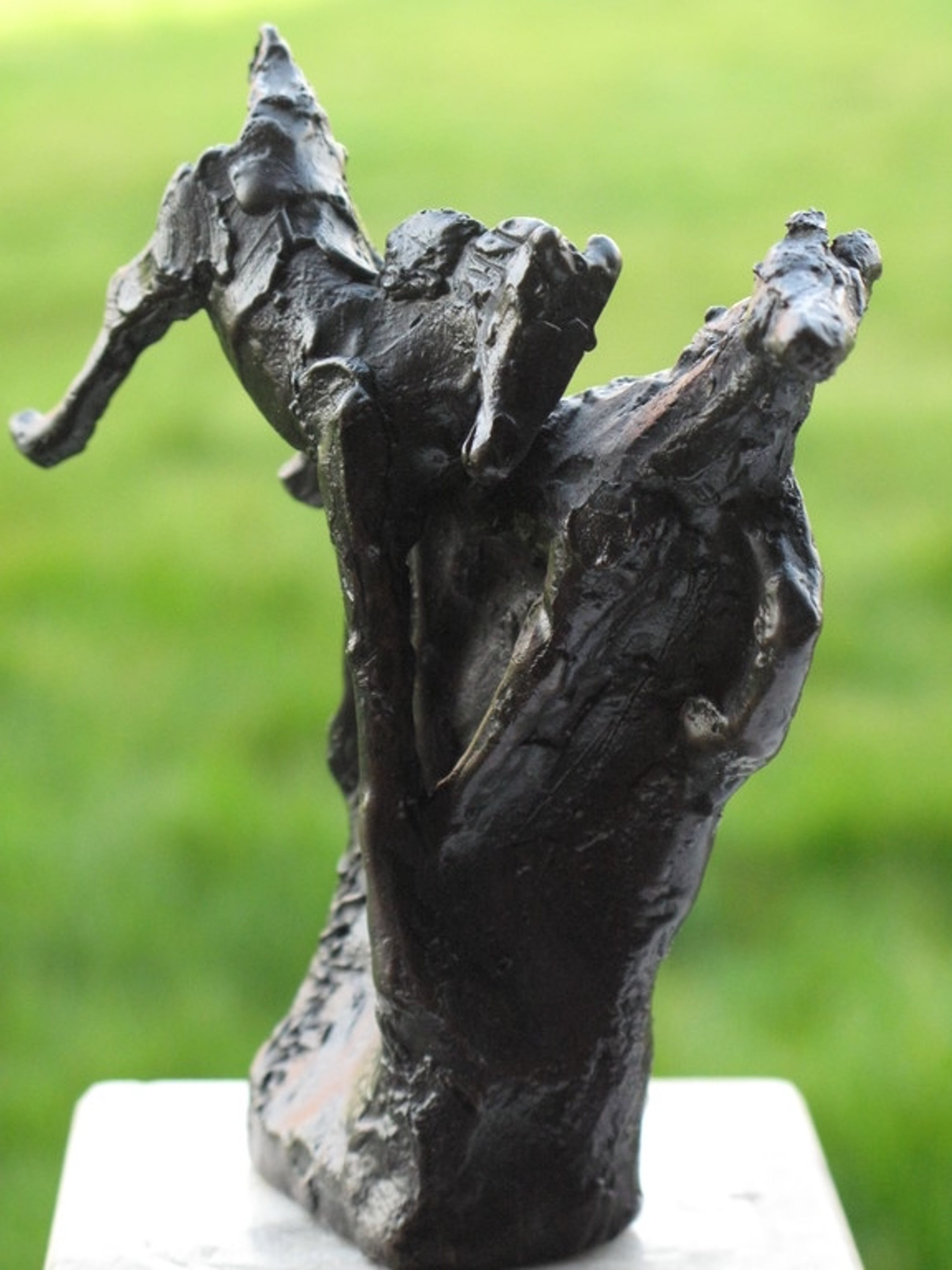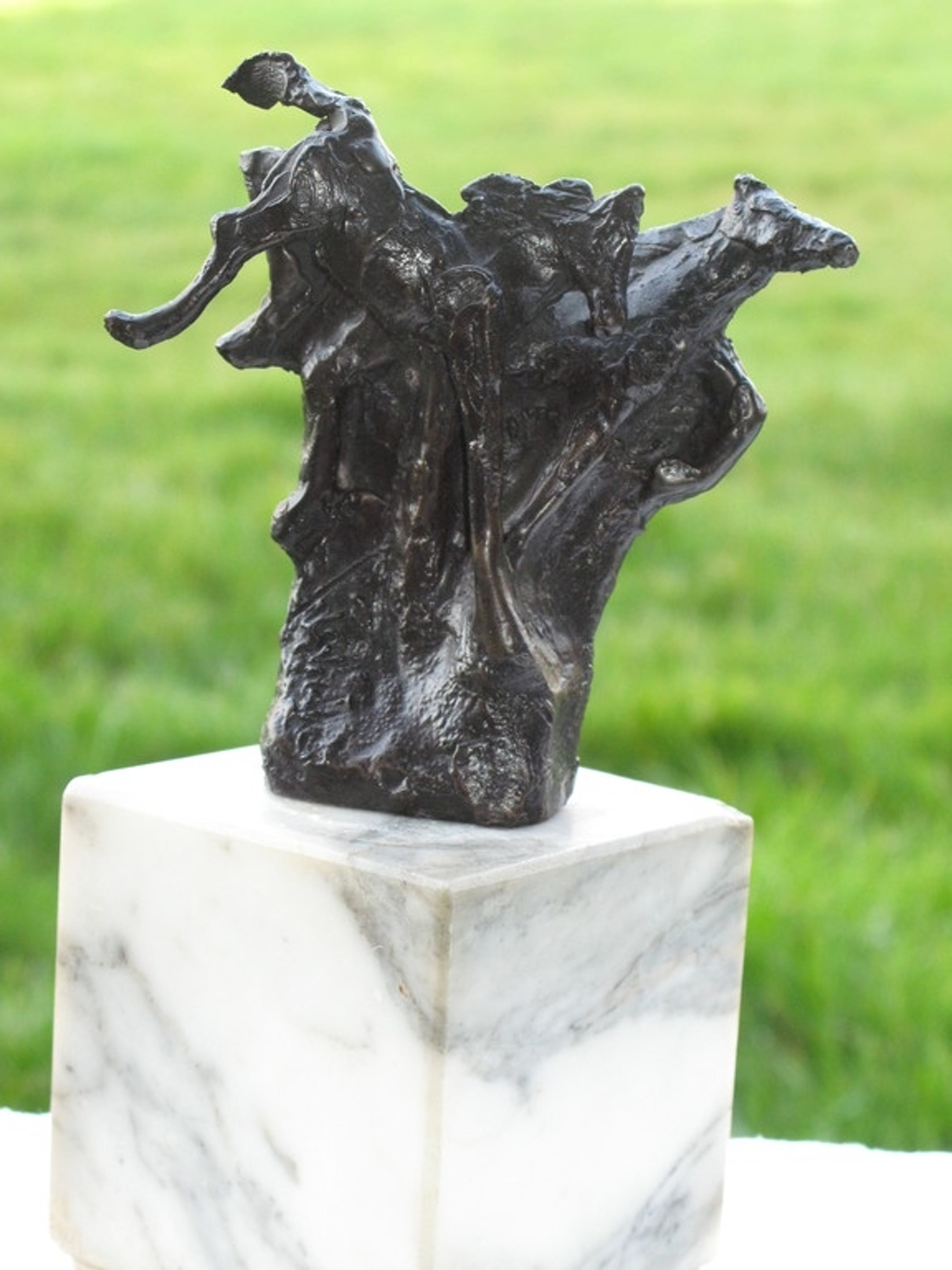 Jits Bakker had passie voor alle geledeingen van de sport en heeft ons bijvoorbeeld de jaap Eden, die elk jaar wordt uitgereikt aan de beste sporters van het jaar nagelaten. Bronzen beelden van hem in binnen en buitenland. Deze scultuur "horses" op marmeren sokkel is een creatie uit 1976. Wij doen het werk van de hand , samen met 2 mooie catalogi met een mooi overzicht van het werk.