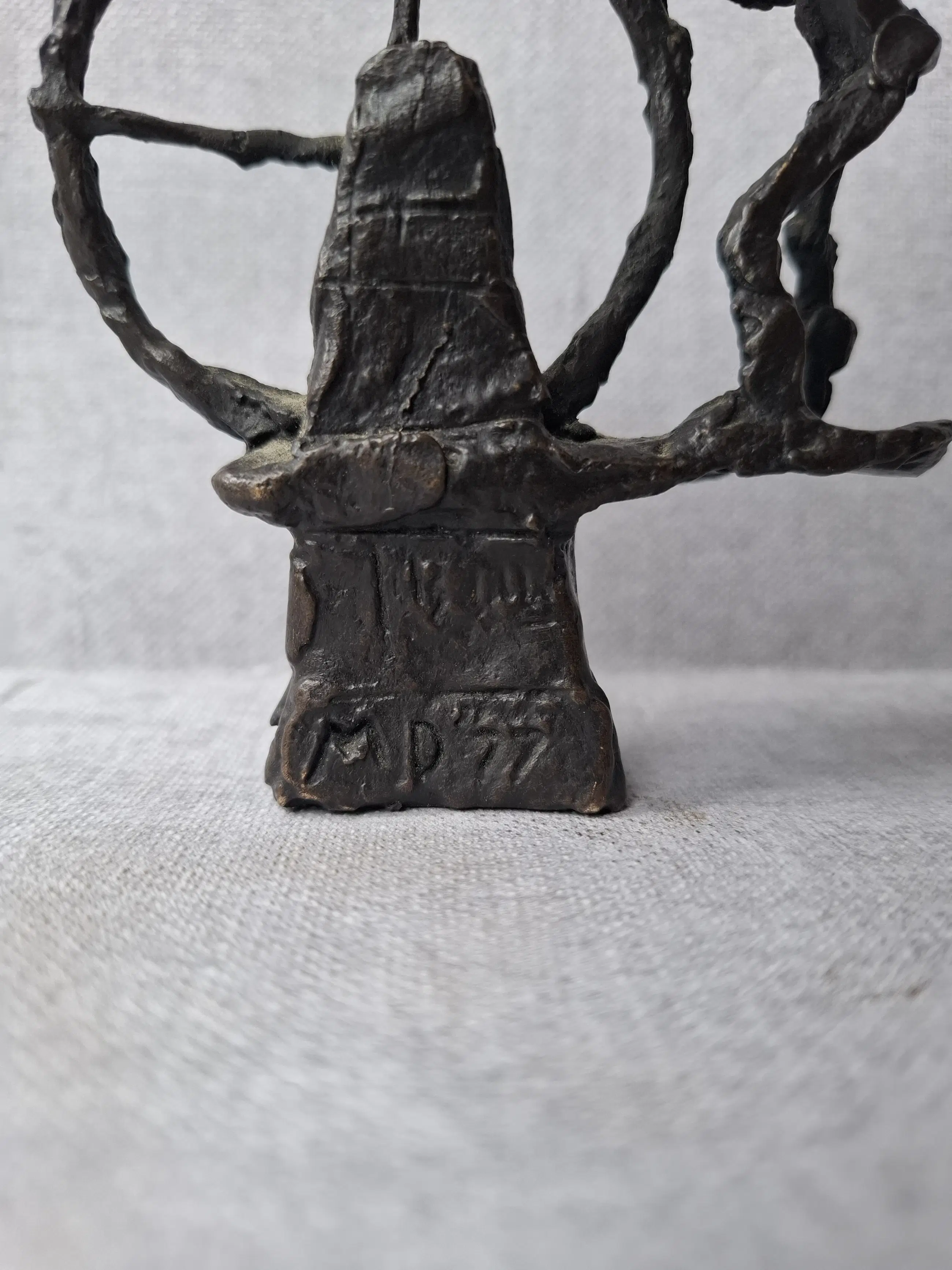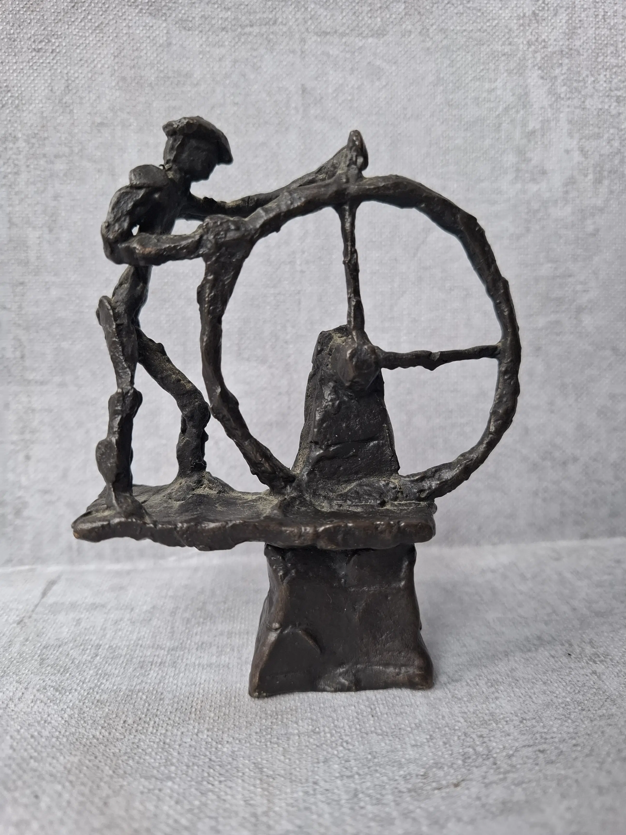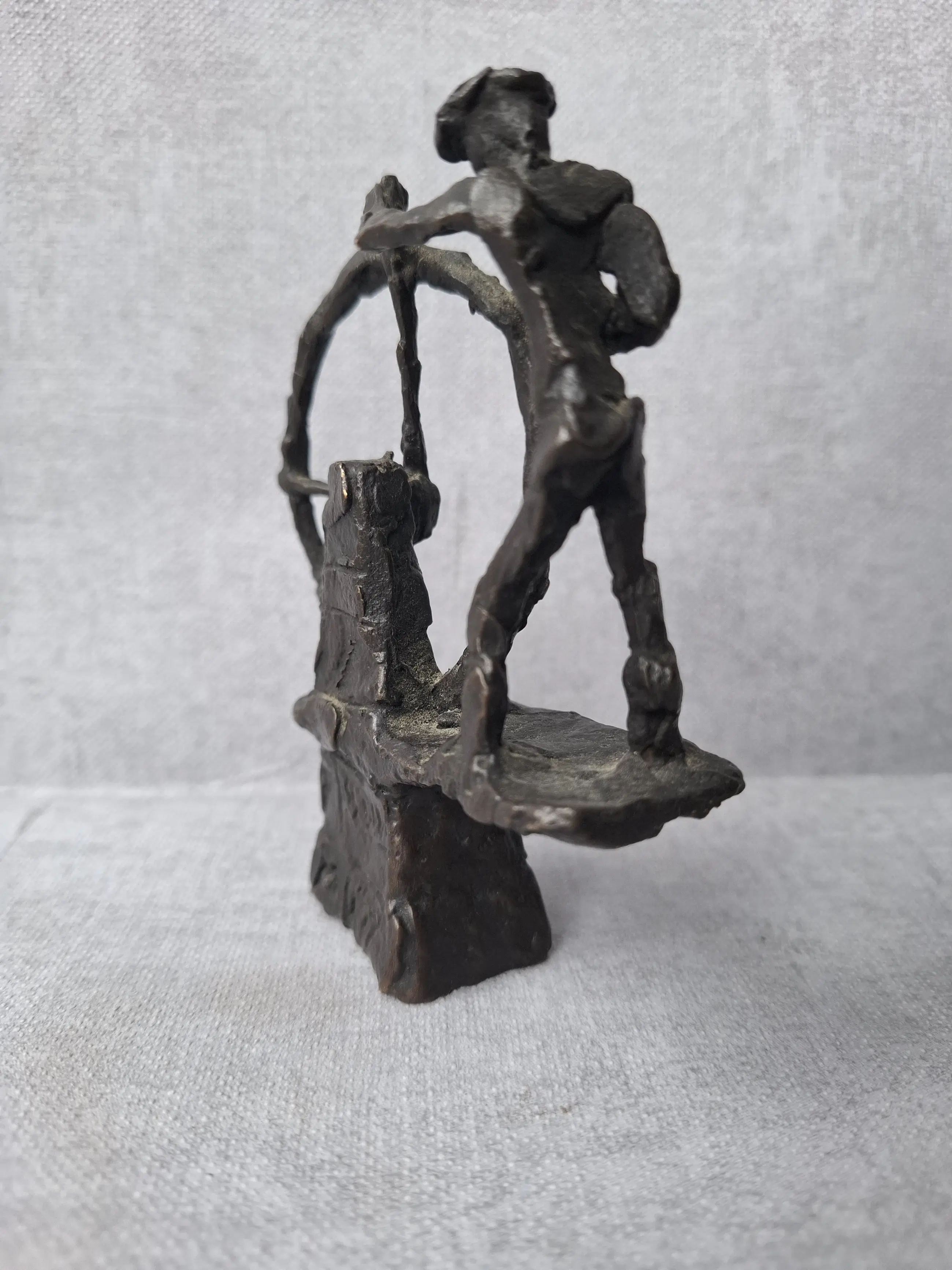 Mooi fijn en klein sculptuur van Jits Bakker. Voorstellend een sluis wachter. Gesigneerd en de tekst MD ( Maas en Dommel?)