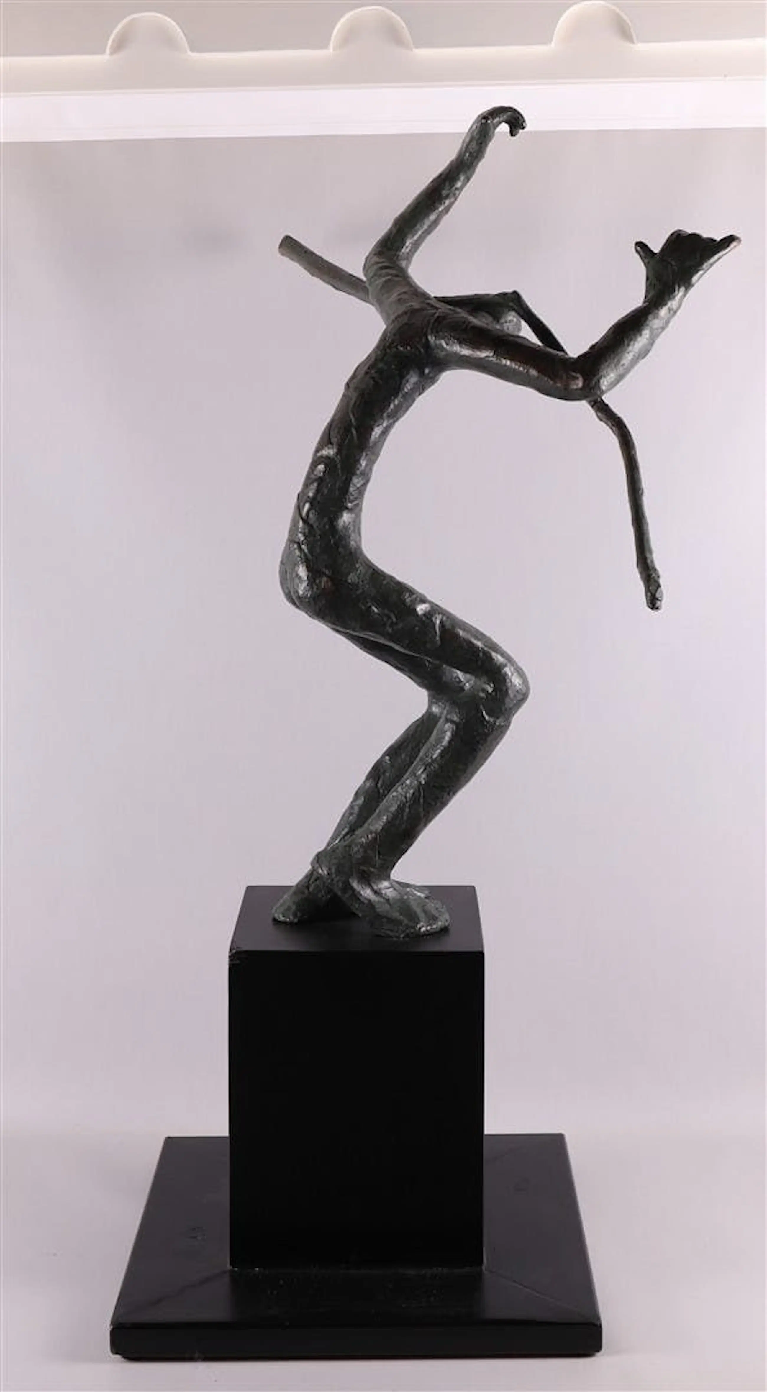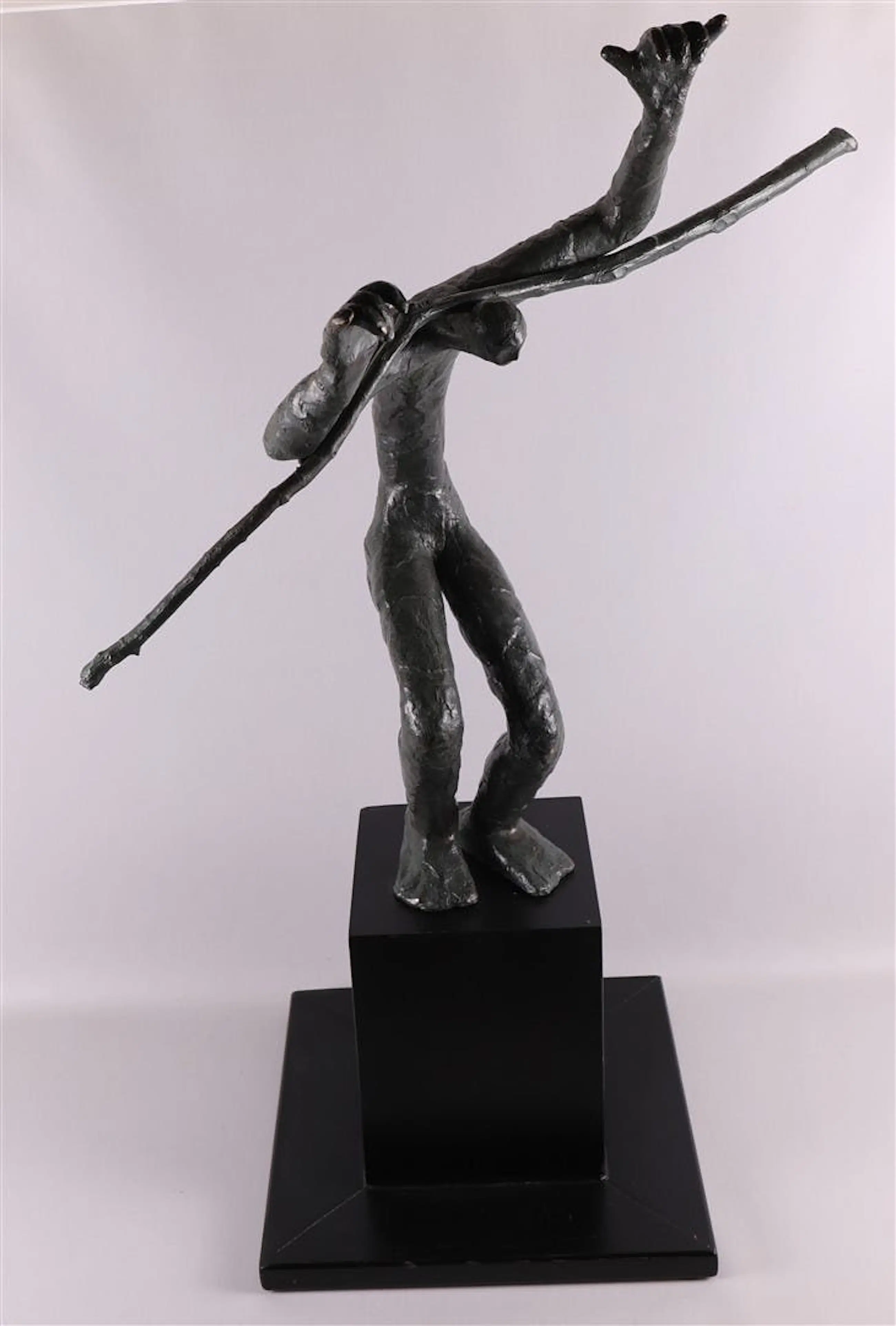 Bronzen sculptuur, op houten sokkel, van Jitske Sikkema. Titel: Butoh II, Japanse danser. Jaar: 2002. Afmetingen incl sokkel: H90cm x b35 x d35cm. Hoogte beeld zonder sokkel is 65cm. Het object is, op de voet, gesigneerd door de kunstenaar. De authenticiteit van het aangeboden werk wordt volledig gegarandeerd. Een certificaat van echtheid kan, op aanvraag, worden gemaild.