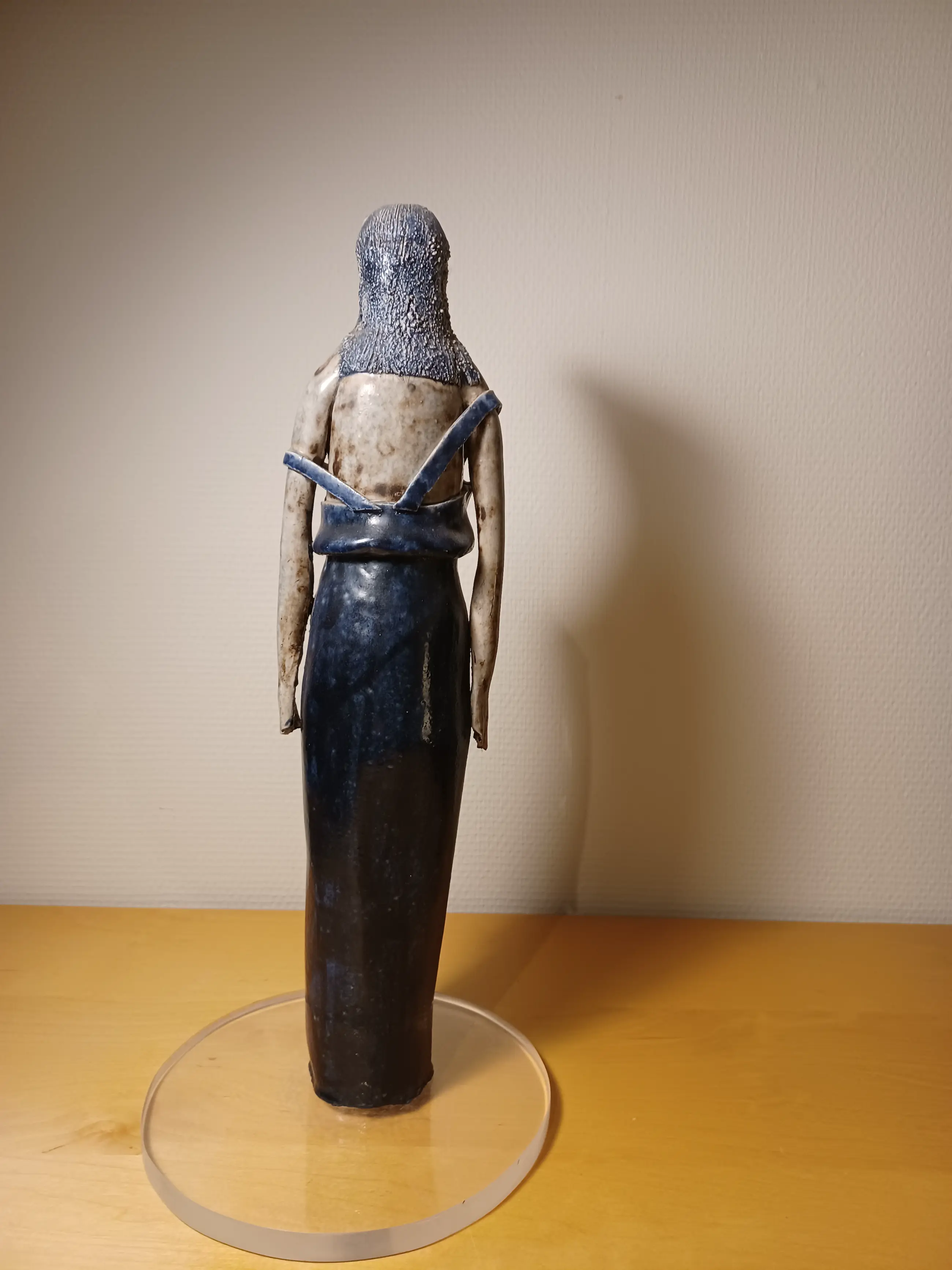 Een intrigerend beeld van een deels ontklede, trotse vrouw, die als hoofd een (echte) vogelschedel heeft. Het beeld heeft daardoor een verwarrende aantrekkingskracht en stoot tegelijk af. Je blijft kijken, twijfelen..