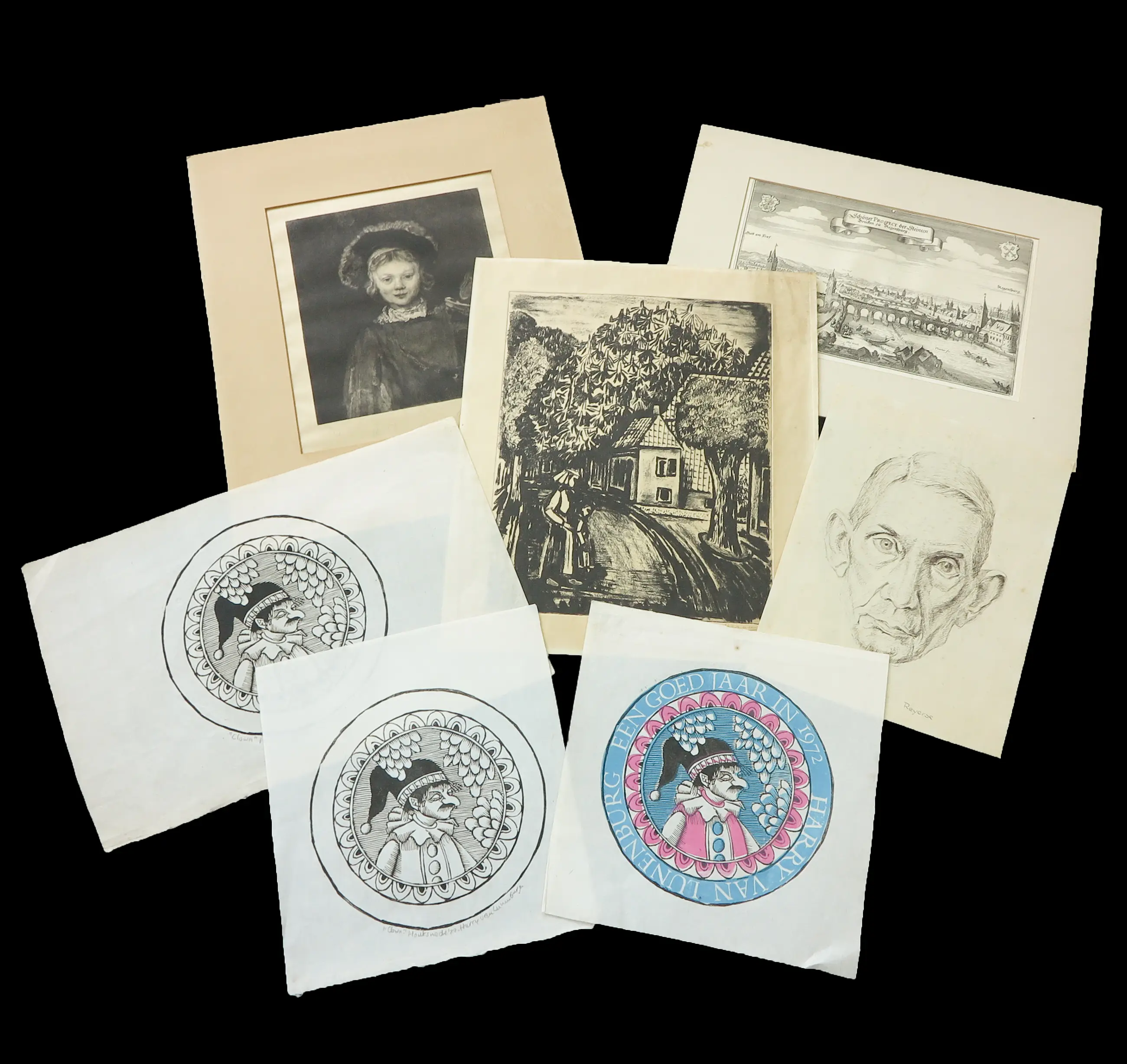 Lot met diverse grafische werken van onder andere Jo Bezaan, Harry van Lunenburg en Petrus Johannes Arendzen en Matthieu Merian.