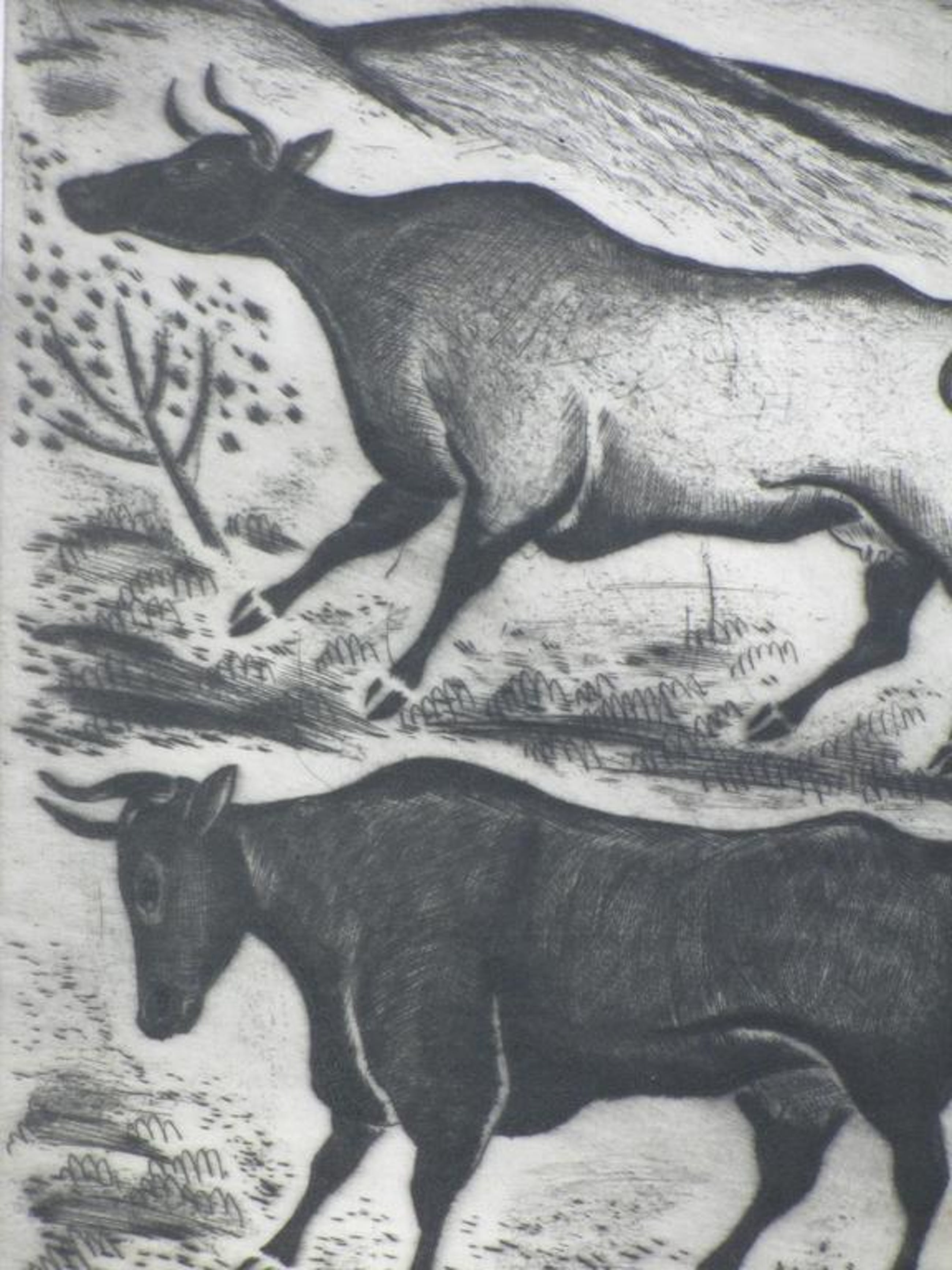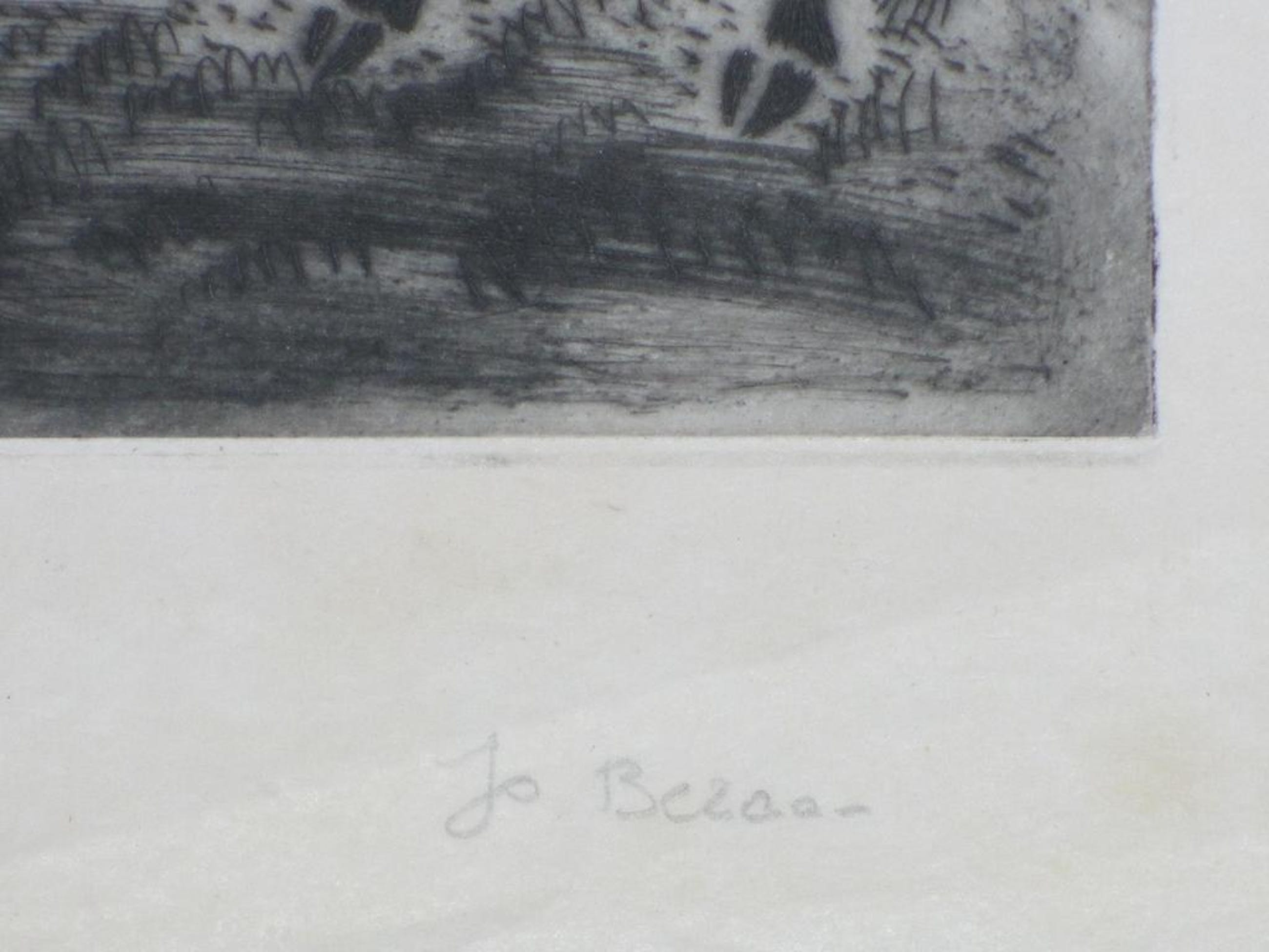 Aantrekkelijke droge naald ets door Jo Bezaan.