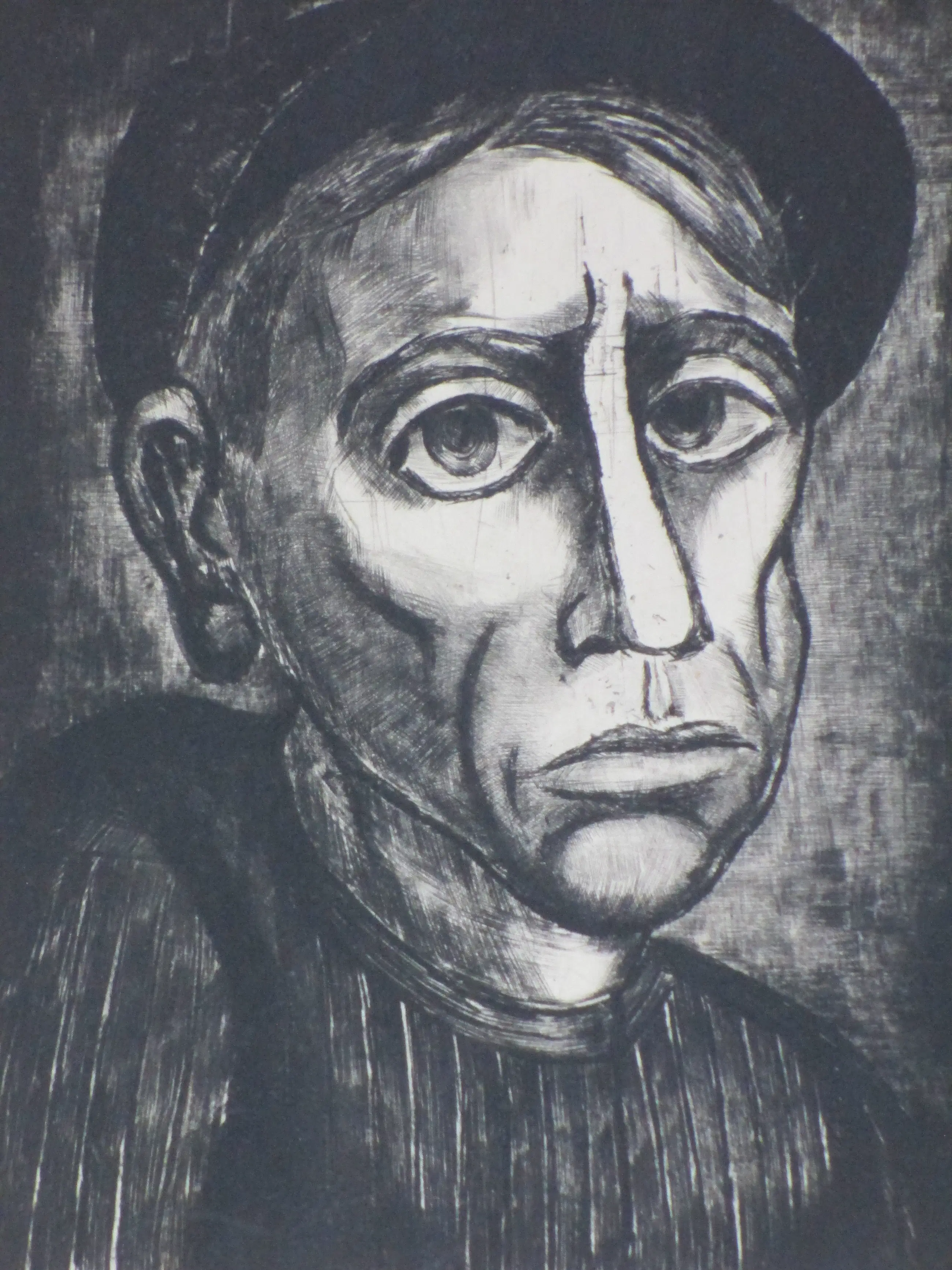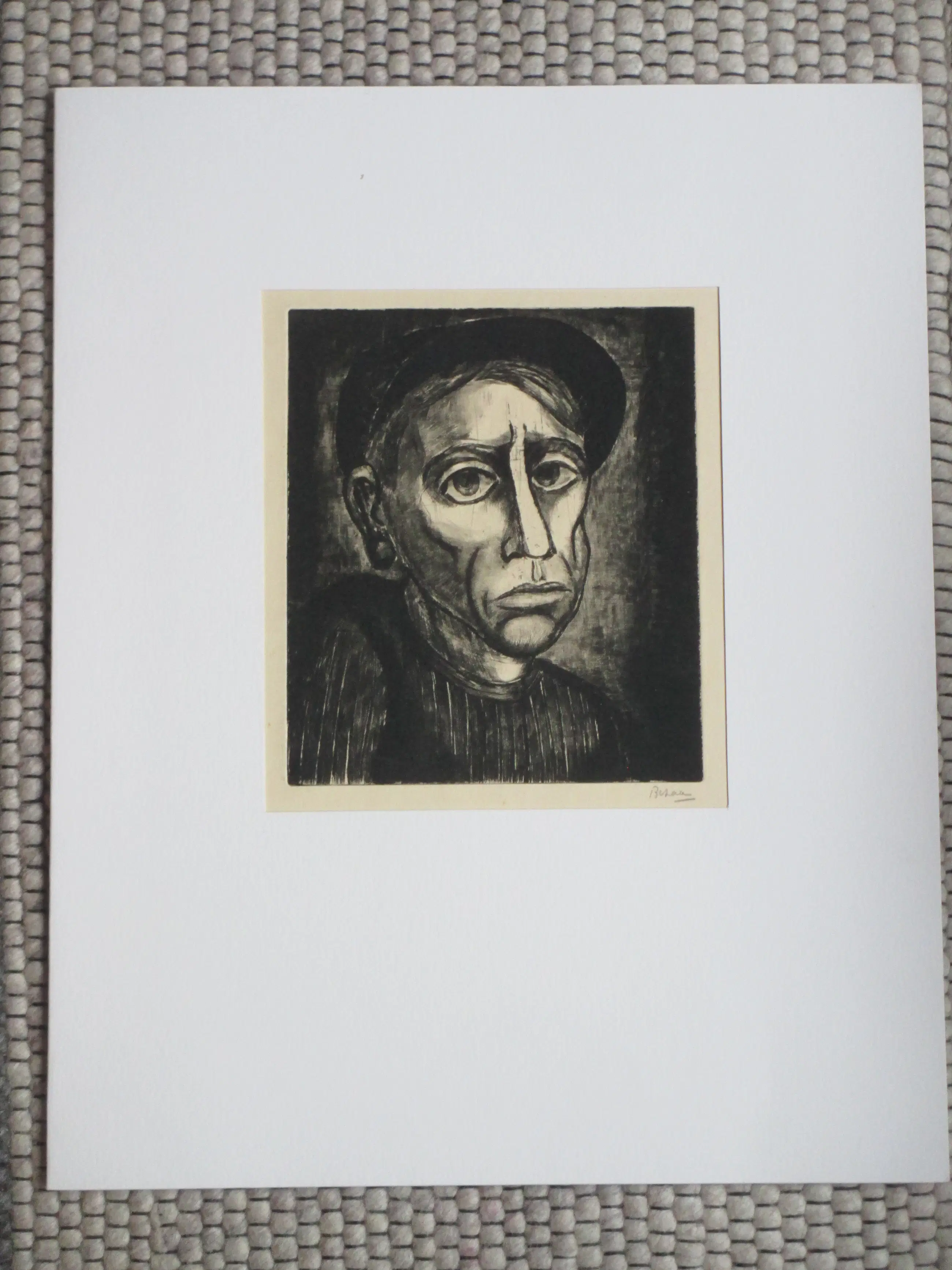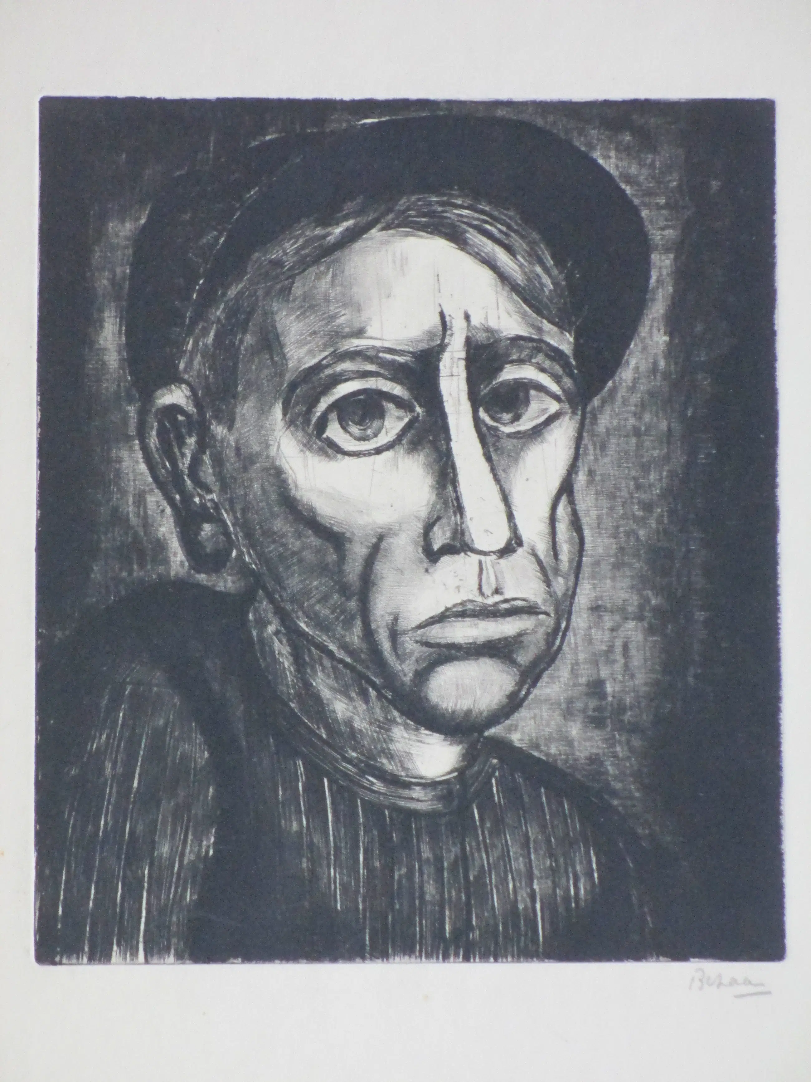 Ets door Jo Bezaan Voorstelling van een boer Losbladig, beeldmaat 22x19, bladmaat 38x30 Gesigneerd in potlood r.o.: 'Bezaan' Meerdere literatuurannotaties in potlood l.o.