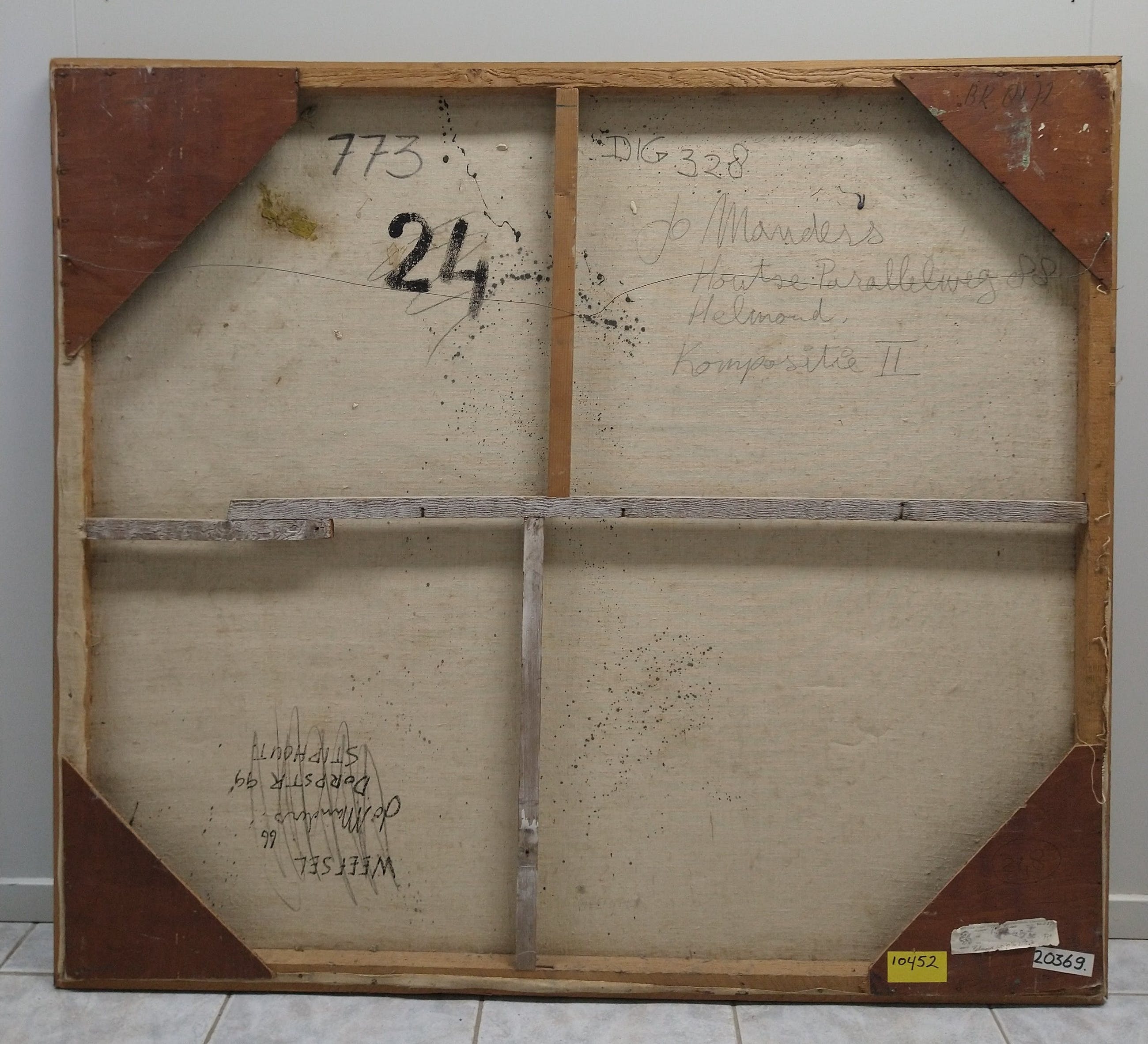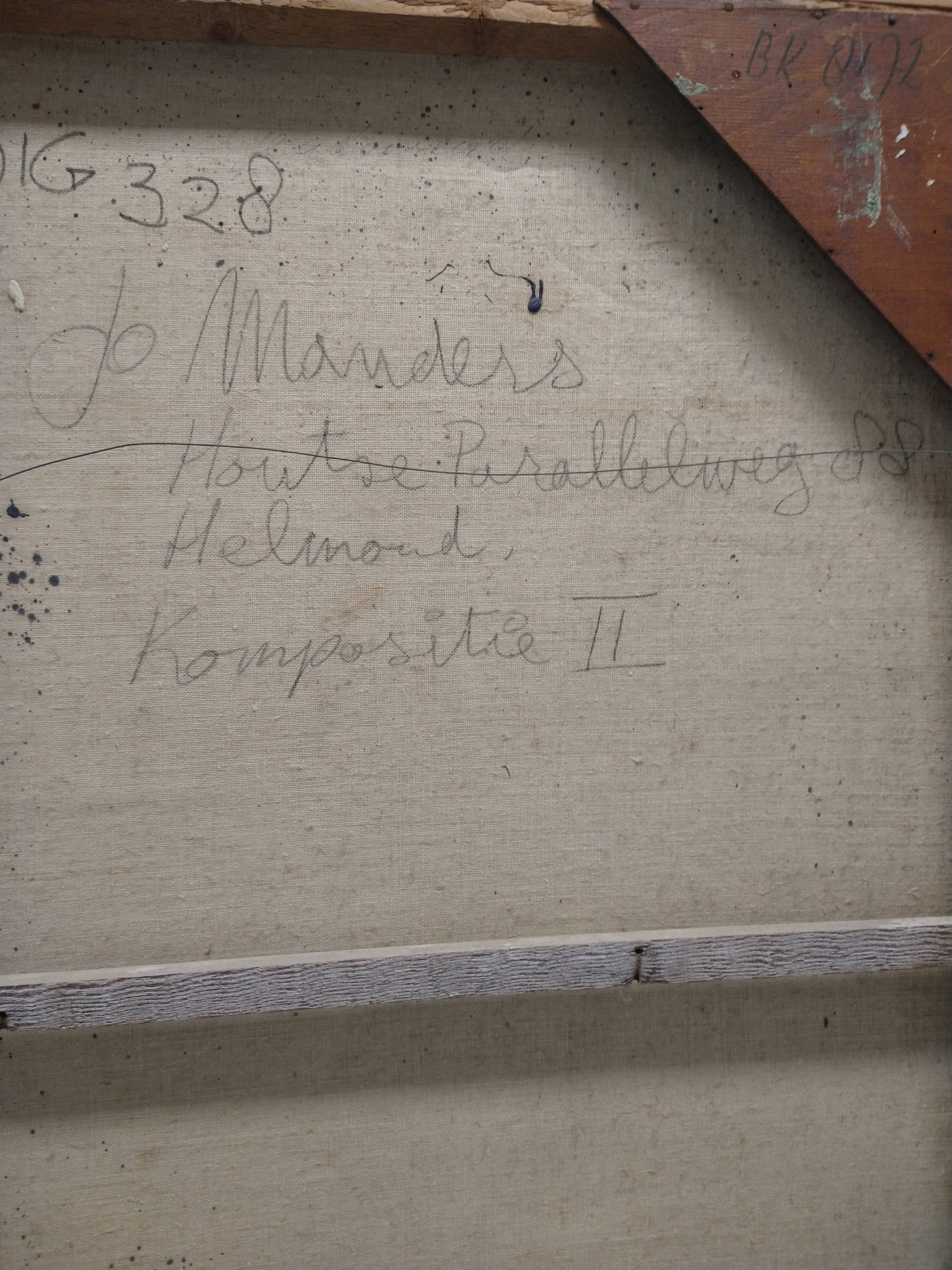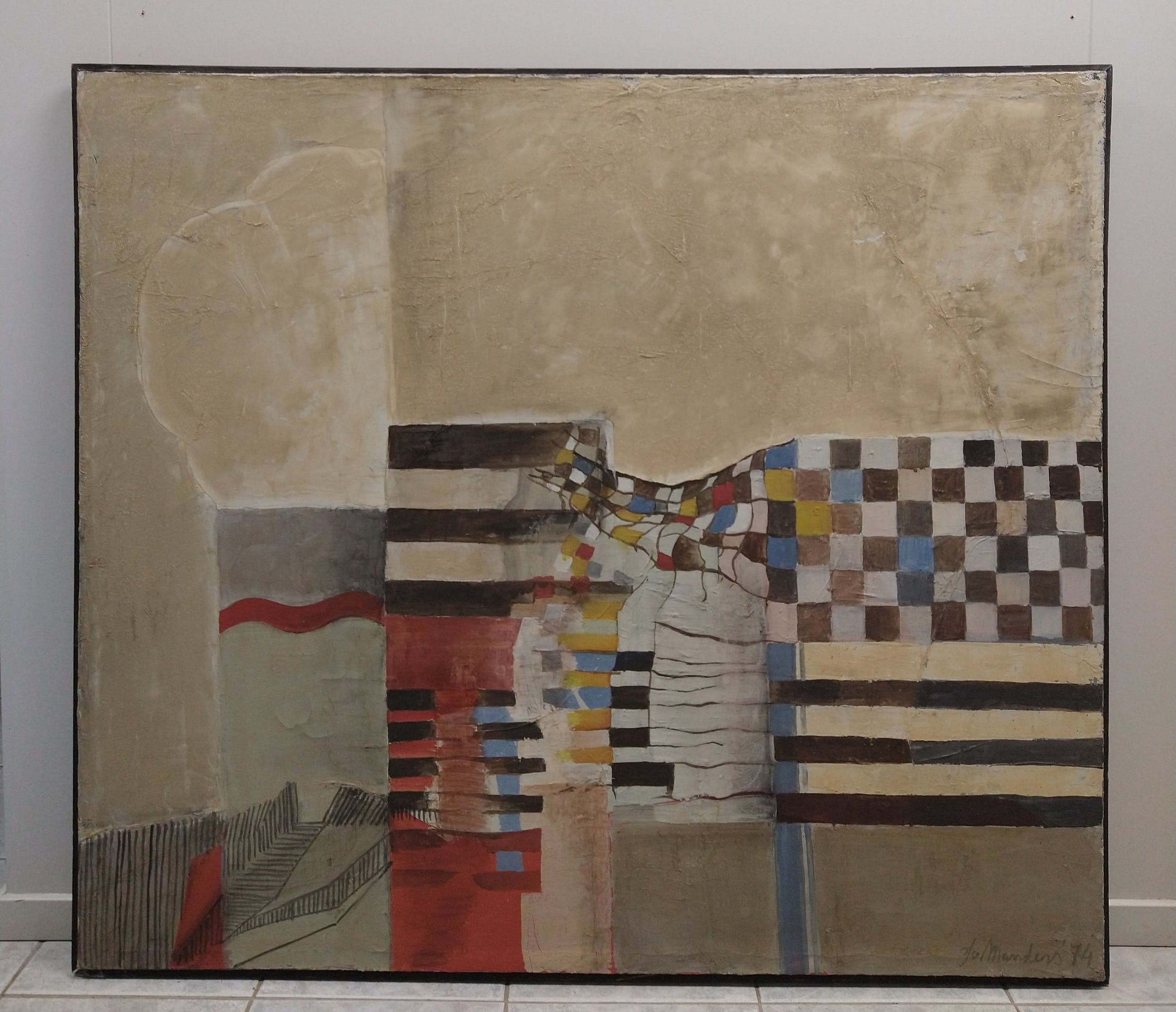 Olieverf van de Helmondse schilder Jo Manders. Het werk is afkomstig uit de voormalige gemeentecollectie van Helmond Rechtsonder is het gesigneerd en gedateerd. Aan de achterzijde is het nogmaals gesigneerd en voorzien van een label