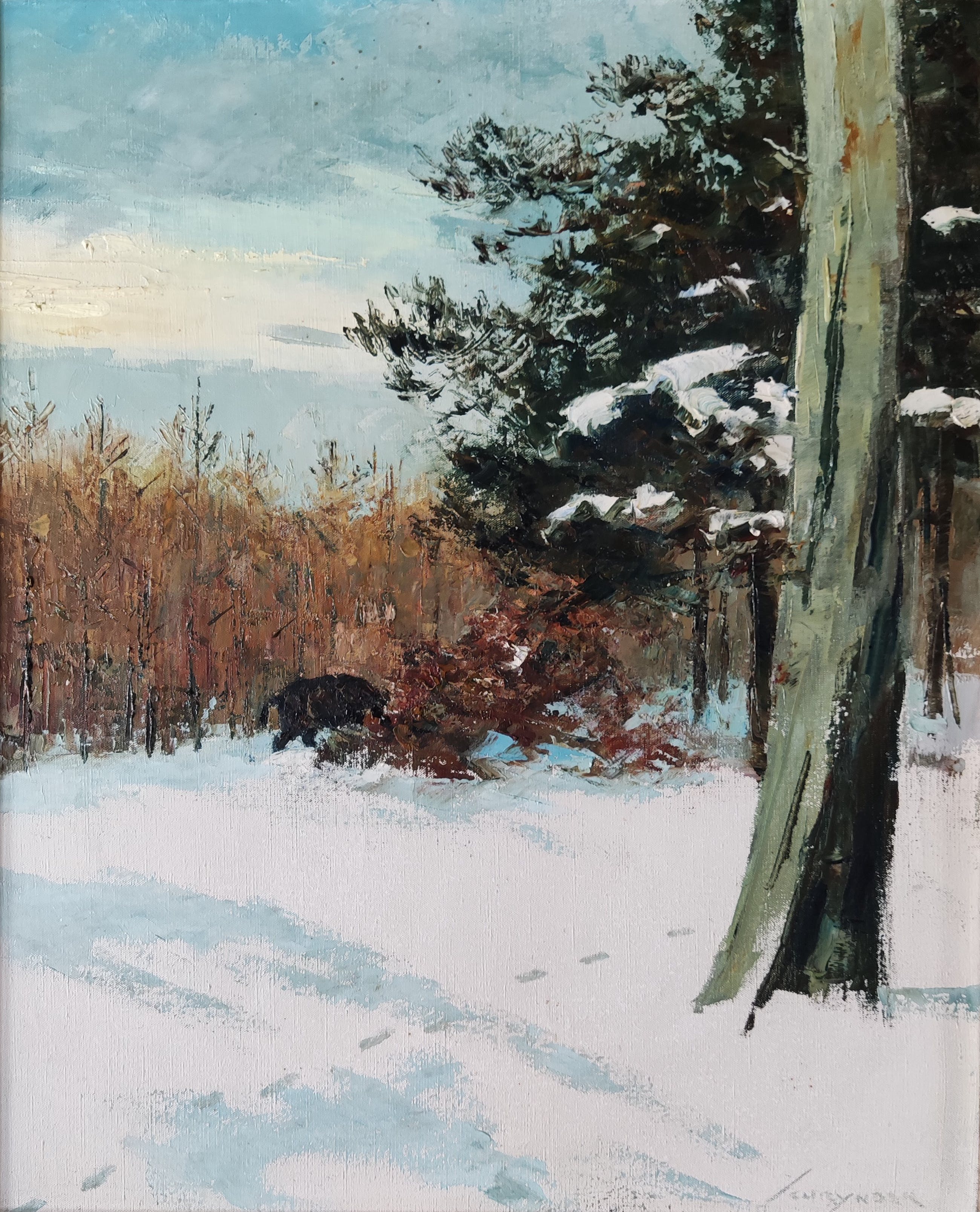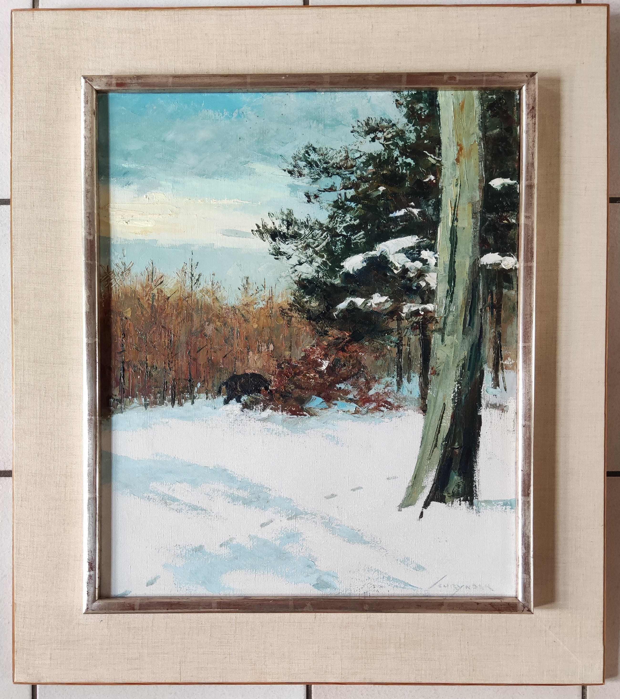 Gesigneerd rechtsonder. Doekmaat 60x50 cm. Lijstmaat 81x71x4 cm. Josephus Alphonsus (Jo) Schrynder werd geboren te Druten op 22 maart 1894 en overleed te Amstelveen op 27 januari 1968. Was van 1924 tot 1946 burgemeester van Grootebroek. Als schilder autodidact. Bekend om zijn vele jachtvoorstellingen en landschappen met vogels. Aquarellist, schilder, beeldhouwer en glasschilder. Maakte affiches, glas in lood en ontwierp boekbanden.