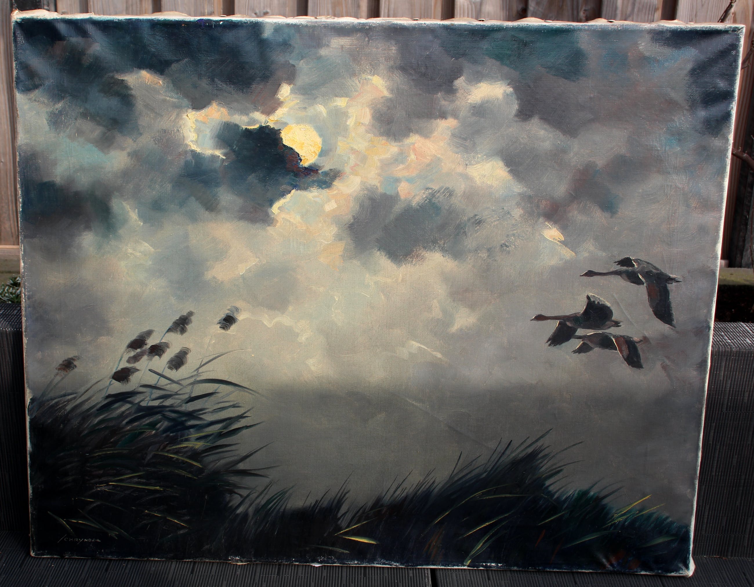 Olieverf op doek van Jo Schrijnder. Afmetingen doek: H80 x b100cm. Het werk is linksonder gesigneerd door de kunstenaar. De authenticiteit van het aangeboden werk wordt volledig gegarandeerd. Een certificaat van echtheid kan, op aanvraag, worden gemaild.