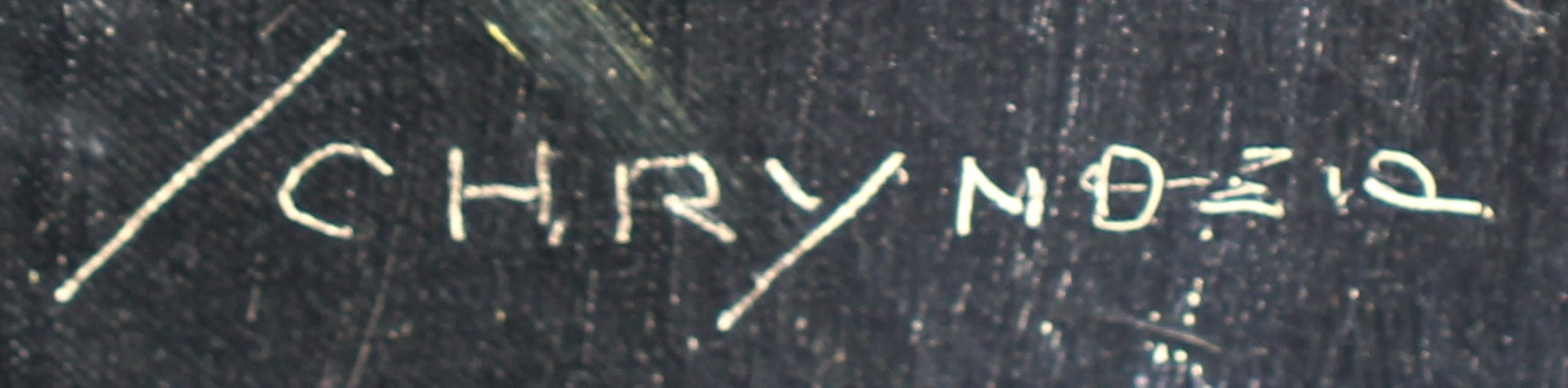 | Het doek is in goede staat. Op de onderrand is de verf iets lichter omdat daar de lijst overheen heeft gezeten. | |