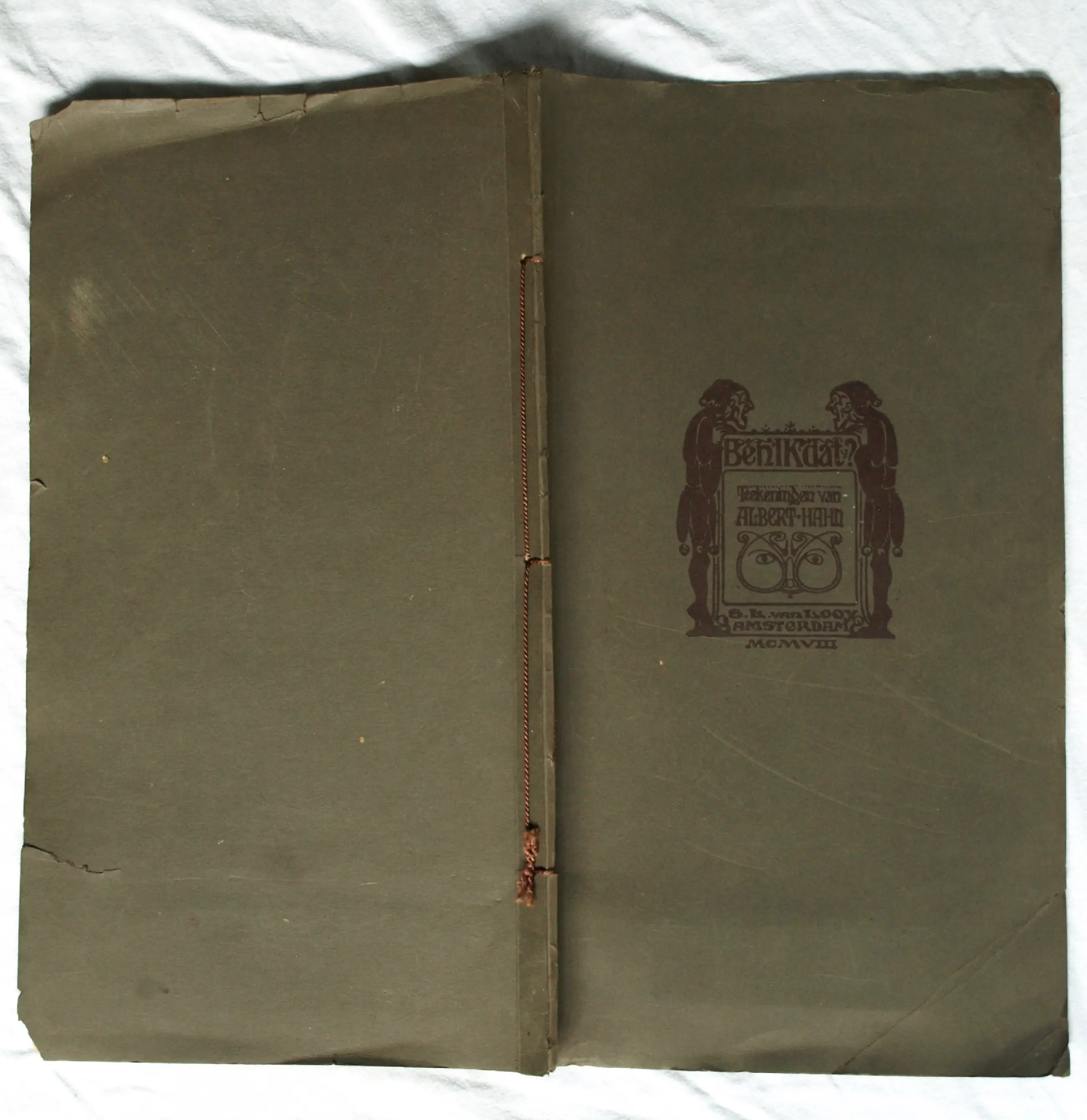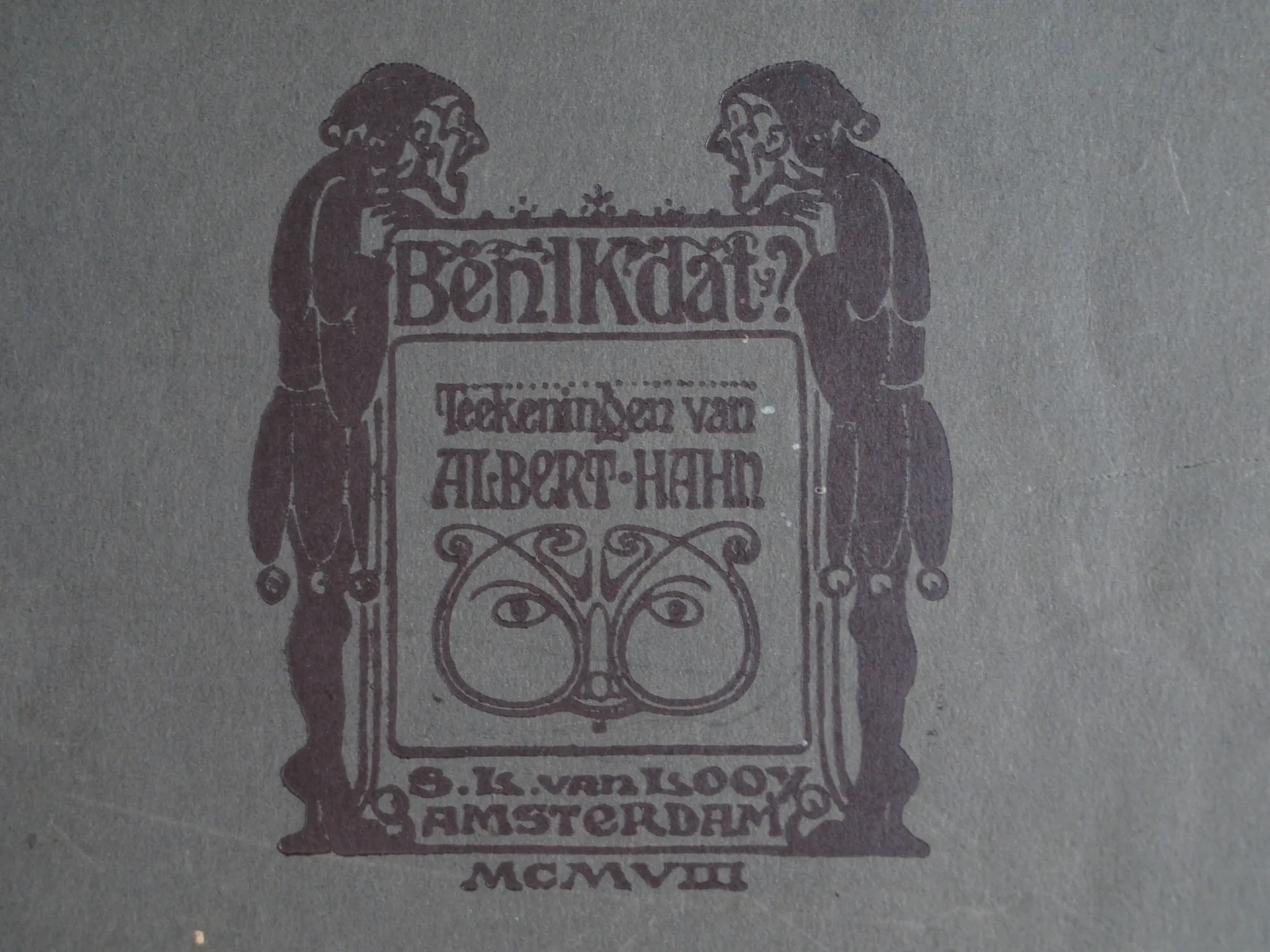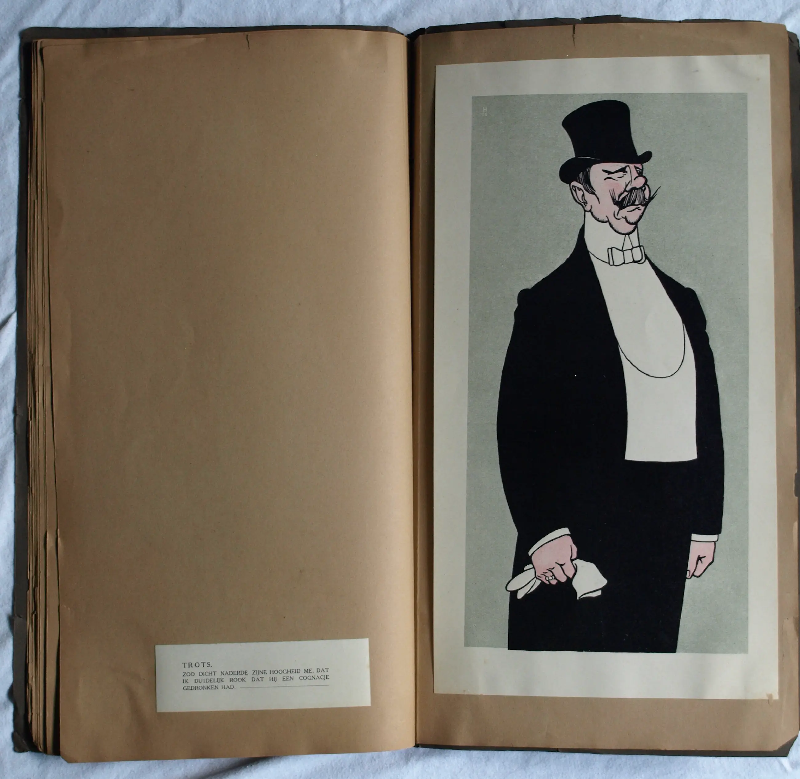 *Albert Hahn – “Ben ik dat? Teekeningen van Albert Hahn - Amsterdam, 1908” zijn 12 karikaturen in origineel touwgebonden (Japanse binding) portfolio. De illustraties zijn (losjes) bevestigd op karton met tekst/uitleg op een etiket op de pagina ernaast, zoals: