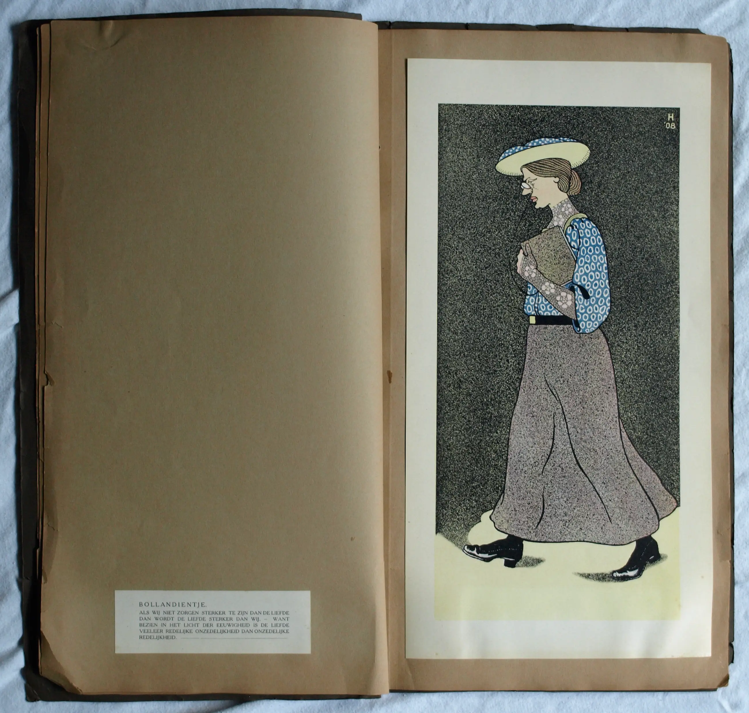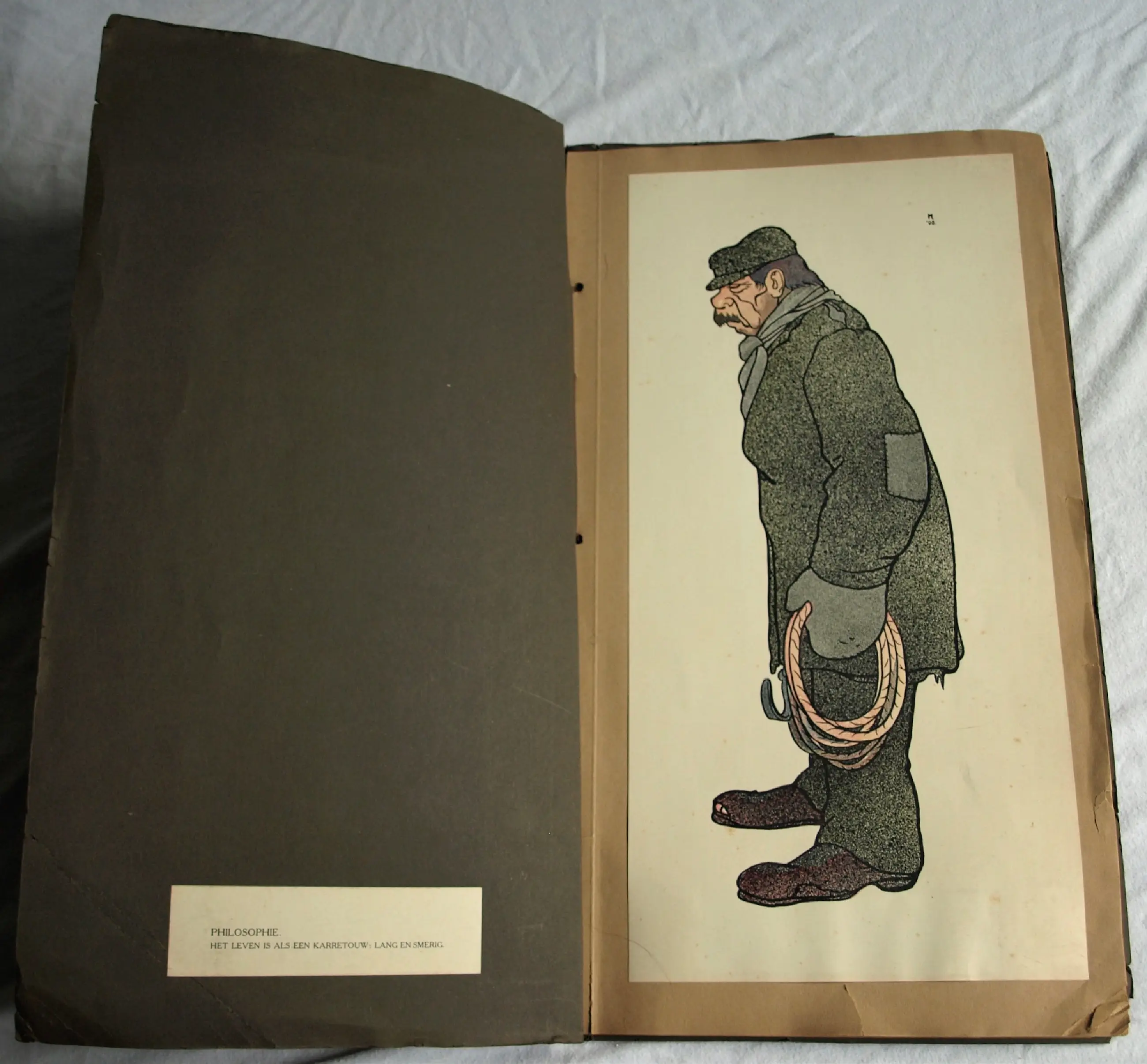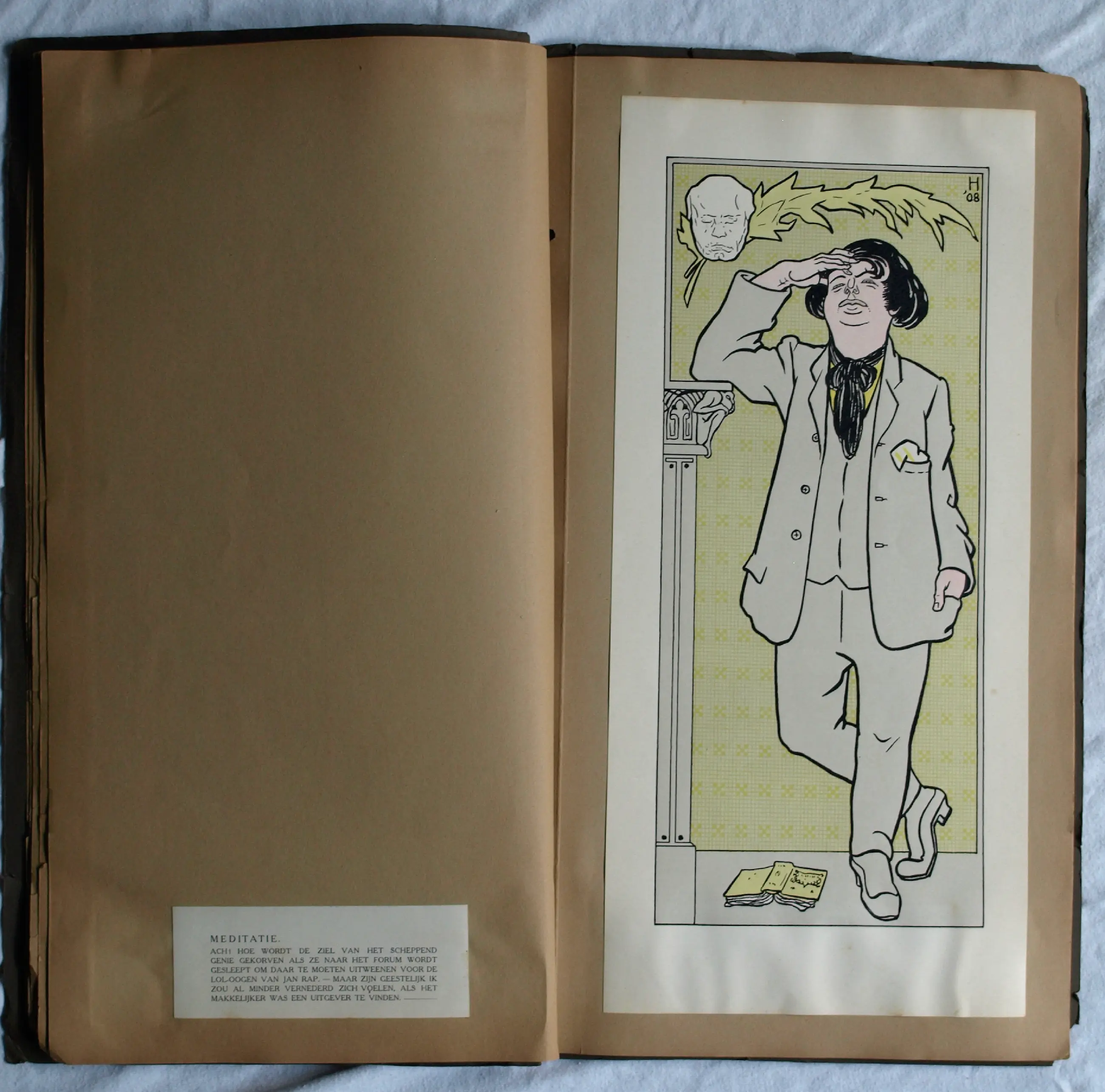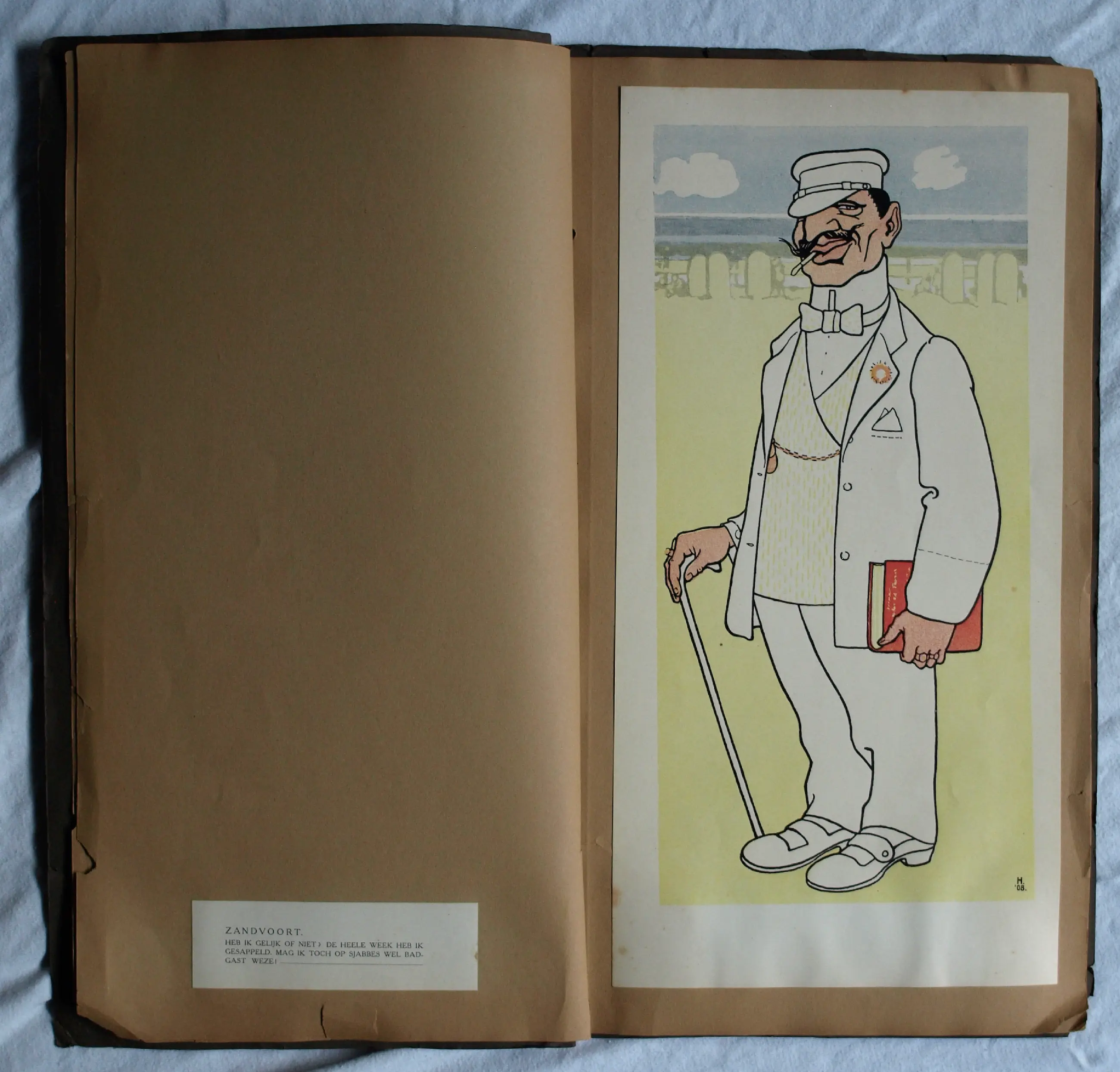 *Albert Hahn – “Ben ik dat? Teekeningen van Albert Hahn - Amsterdam, 1908” zijn 12 karikaturen in origineel touwgebonden (Japanse binding) portfolio. De illustraties zijn (losjes) bevestigd op karton met tekst/uitleg op een etiket op de pagina ernaast, zoals: