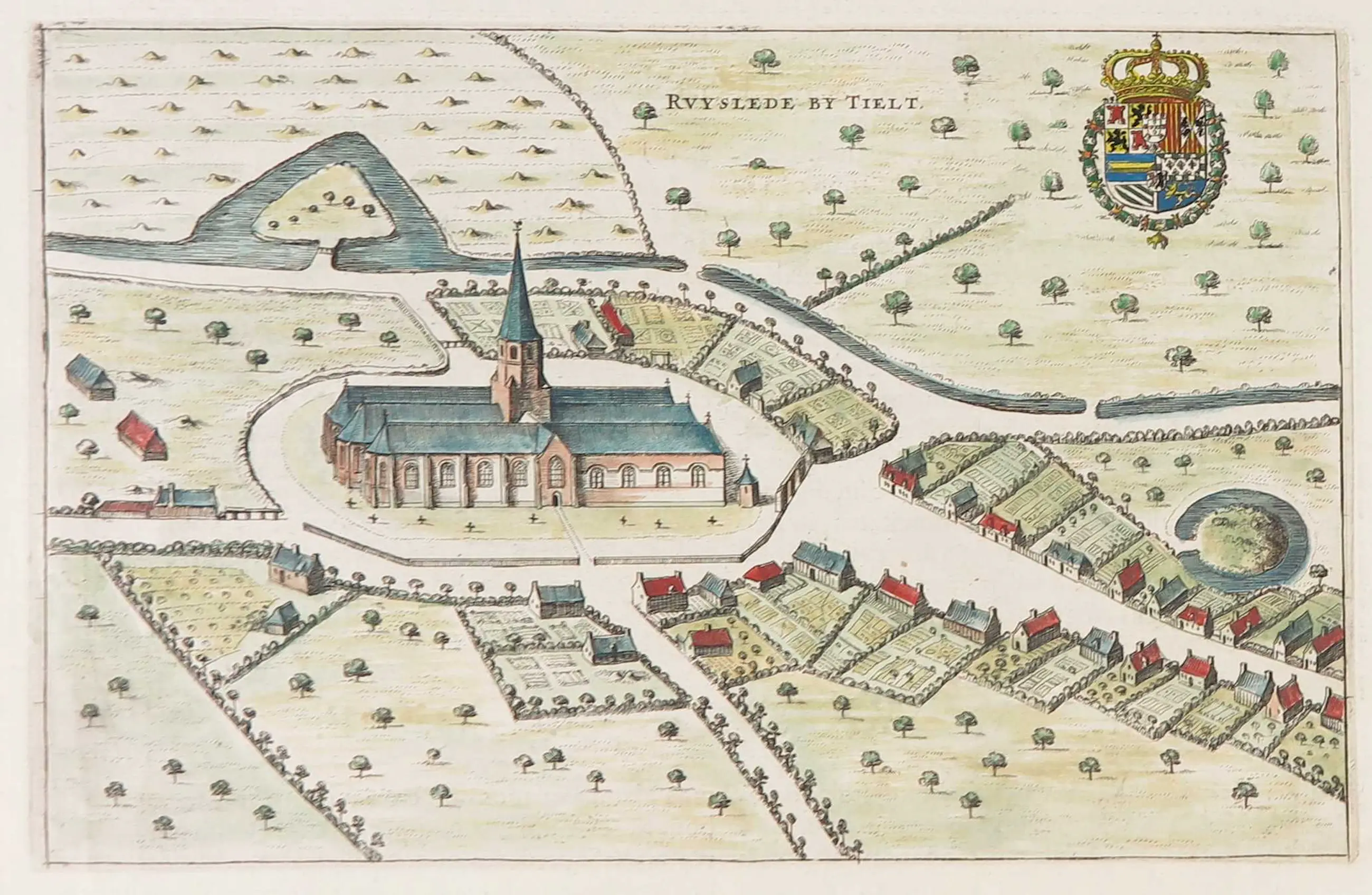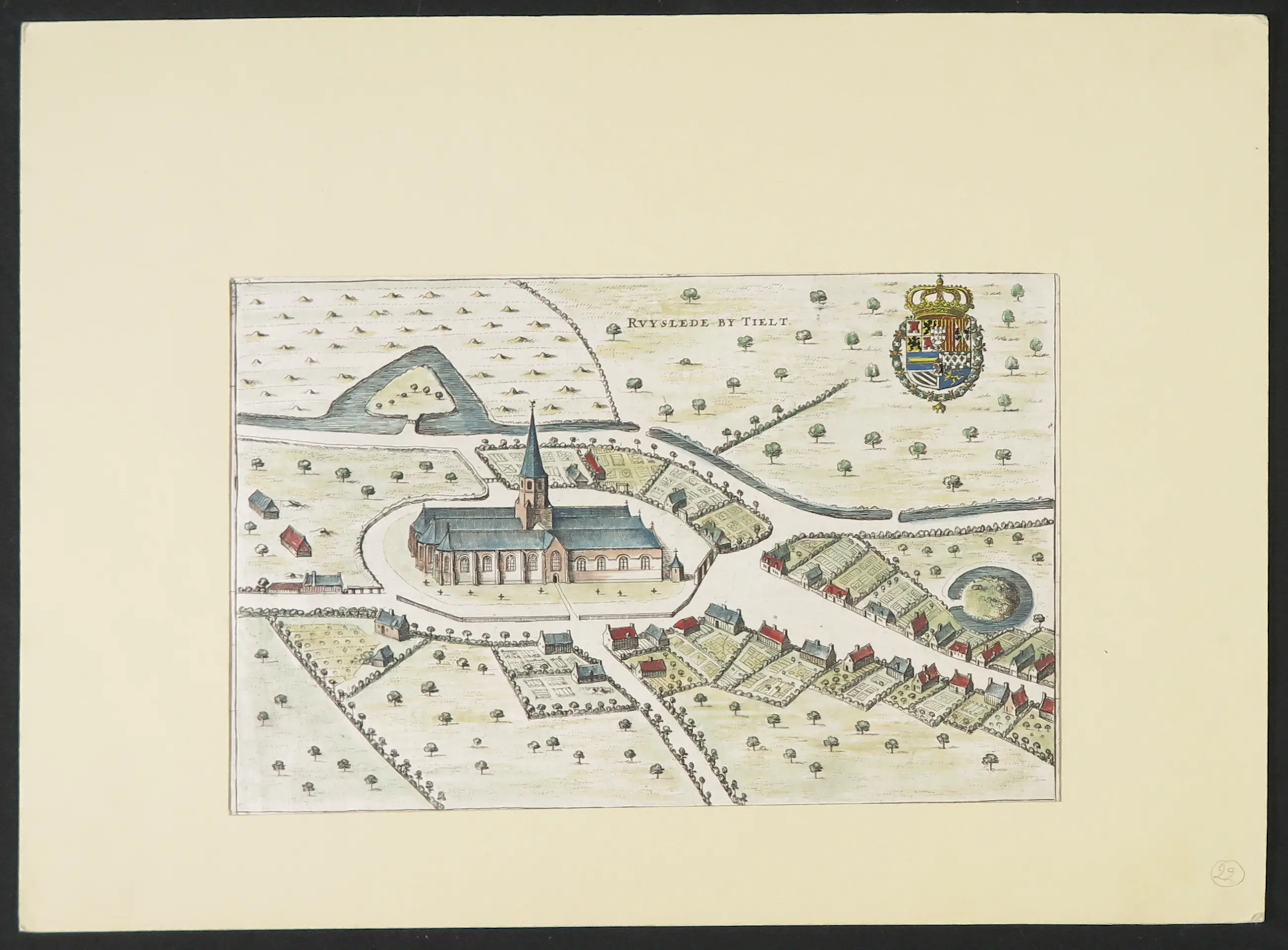 Zeer fraaie kopergravure door Joan Blaeu, verschenen in het Stedenboek van Joan Blaeu in 1649. Het betreft een handgekleurd exemplaar in zeer goede staat.