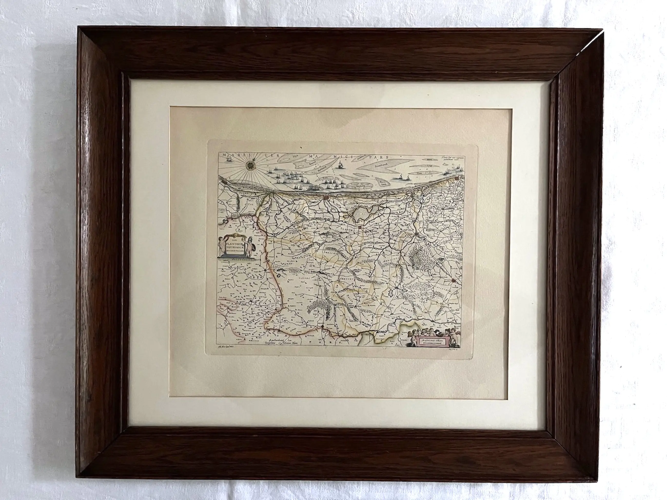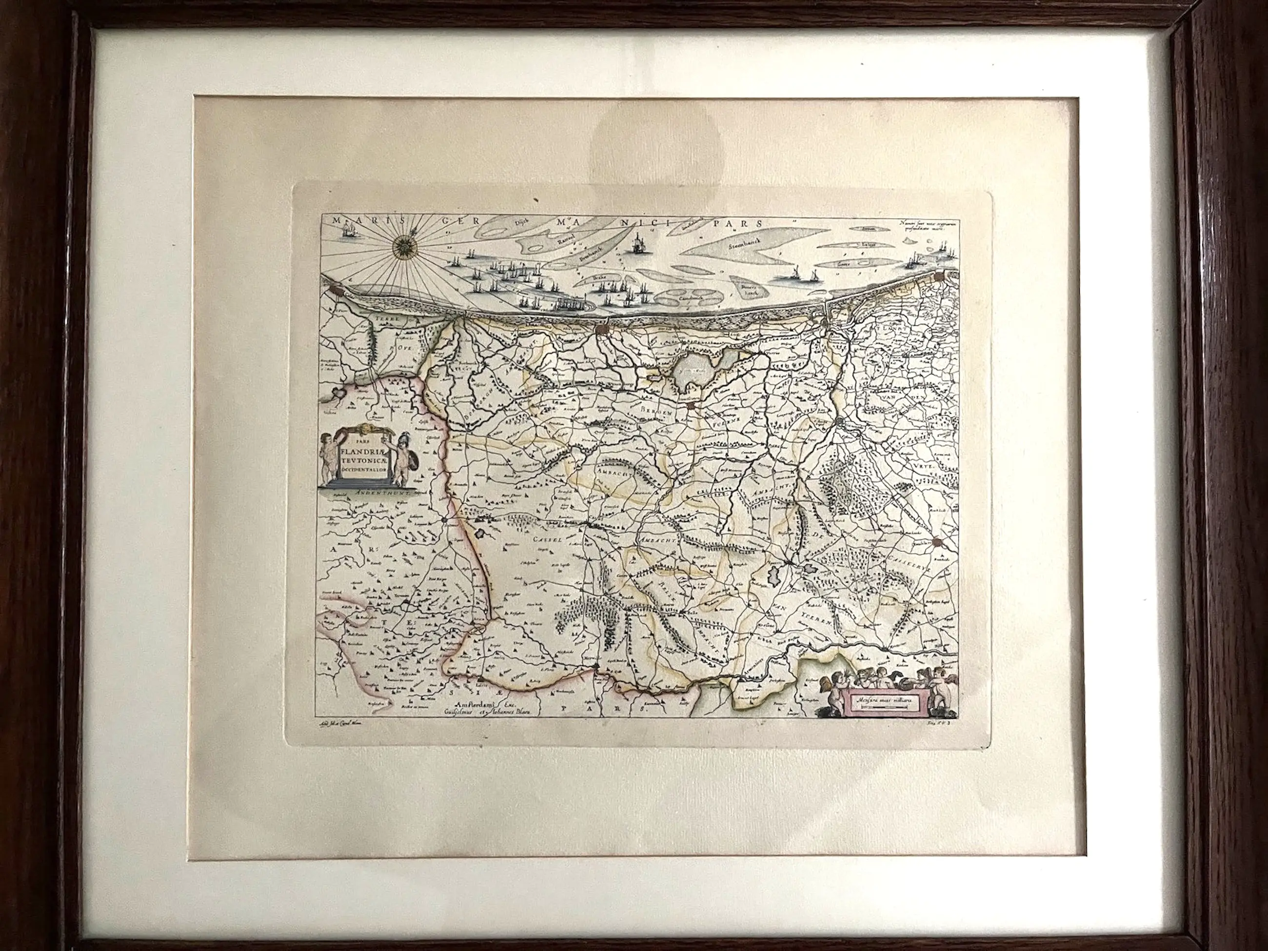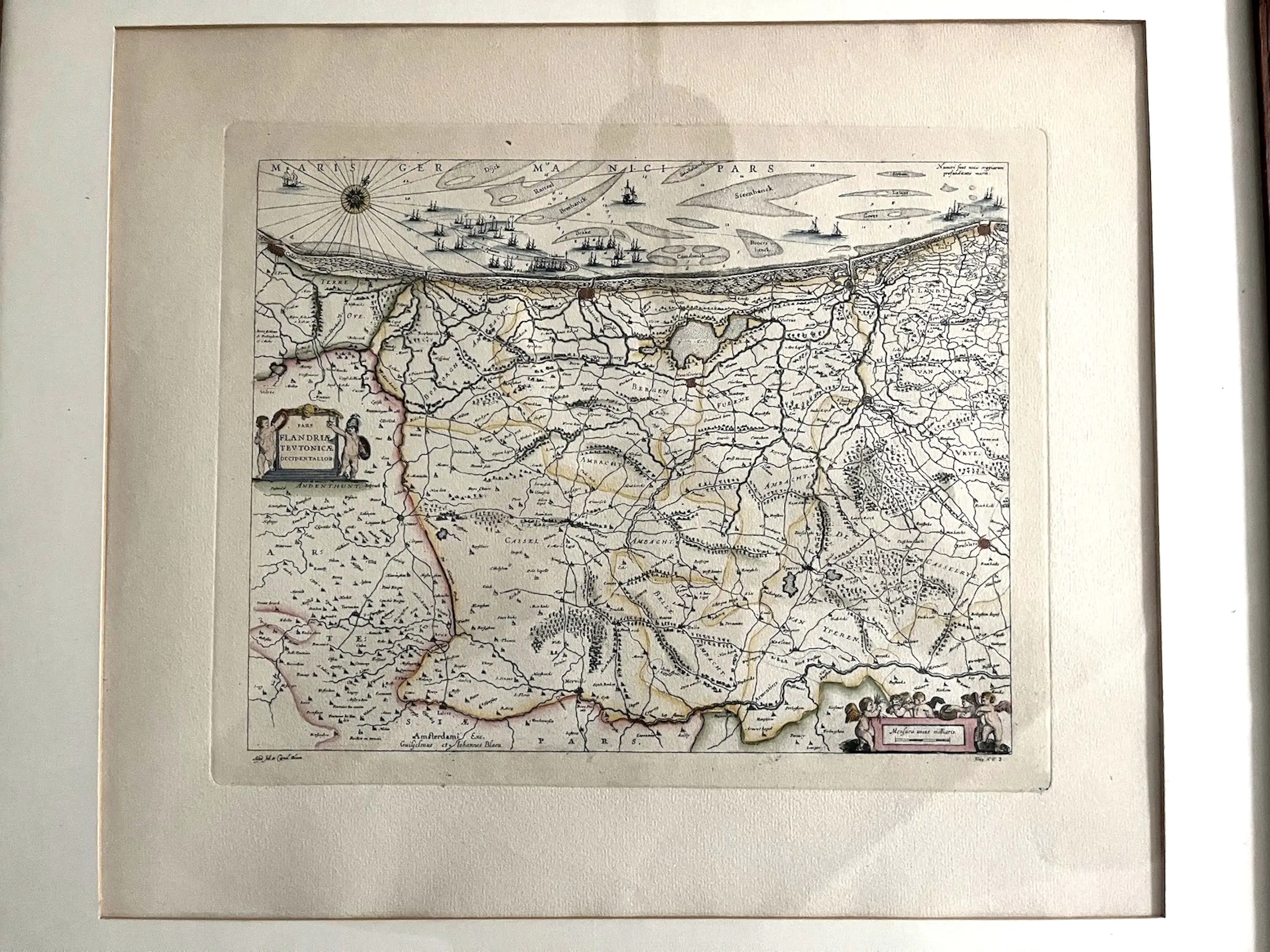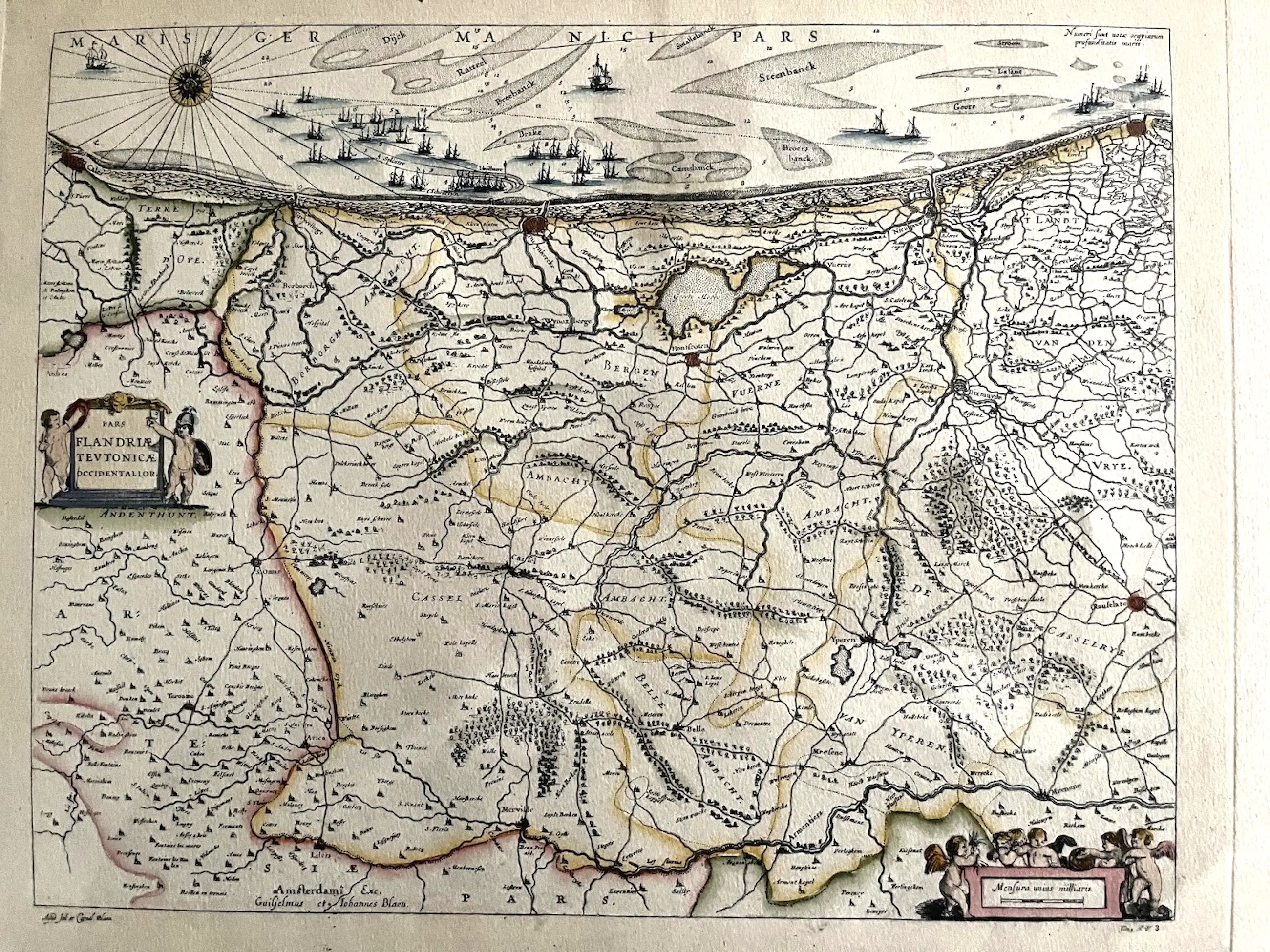 K 80 Joan Blaeu Kaart van het westelijk deel van Vlaanderen Pars Flandriae teutonicae pars occidentalior Handgekleurde kopergravure 1640 24 x 29 cm 48 x 59 cm