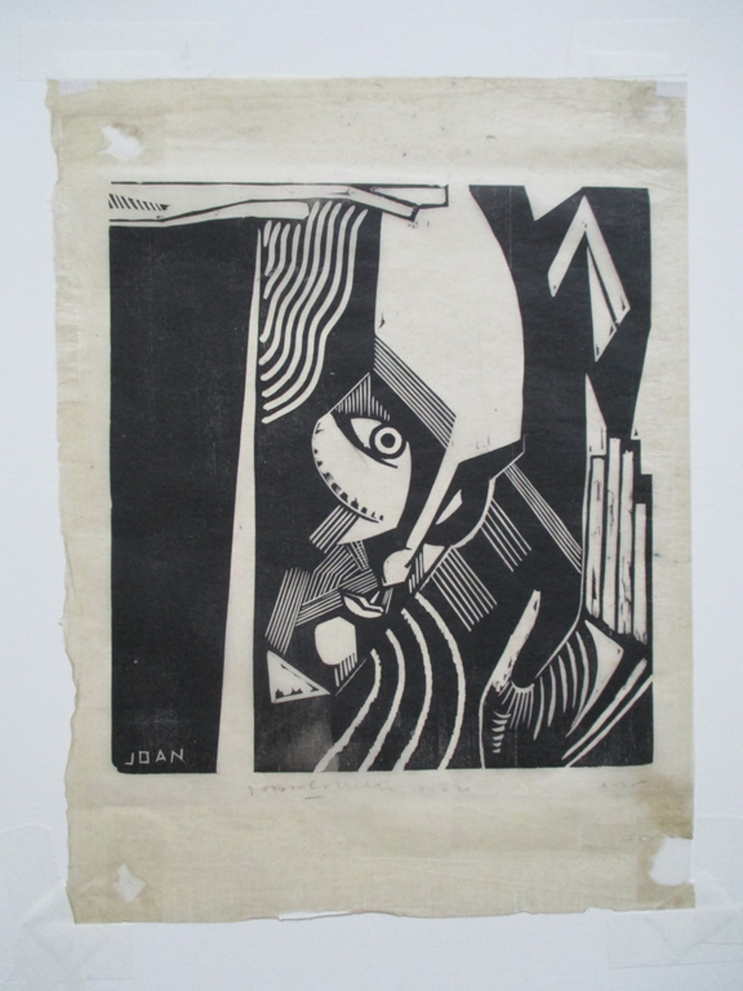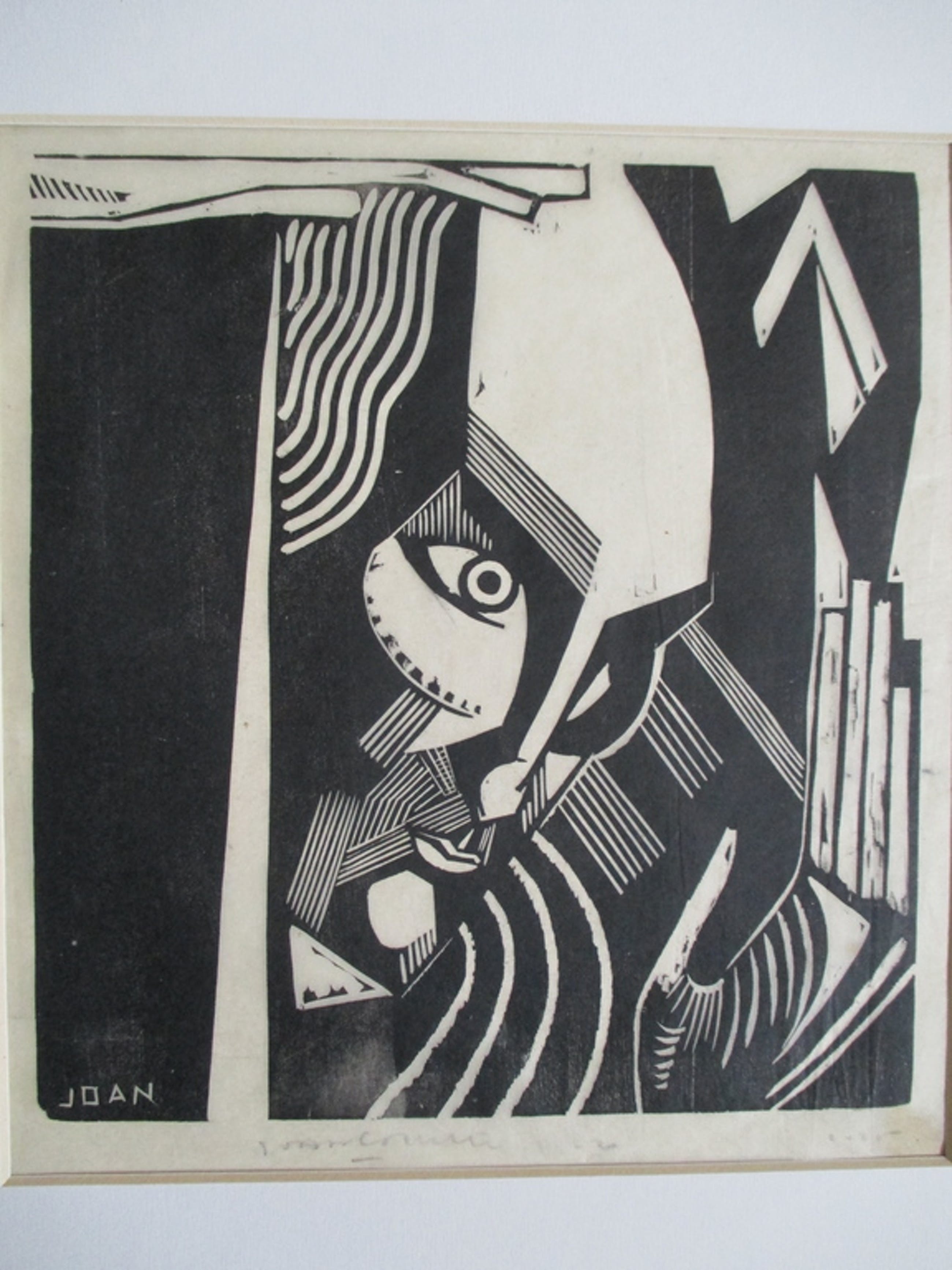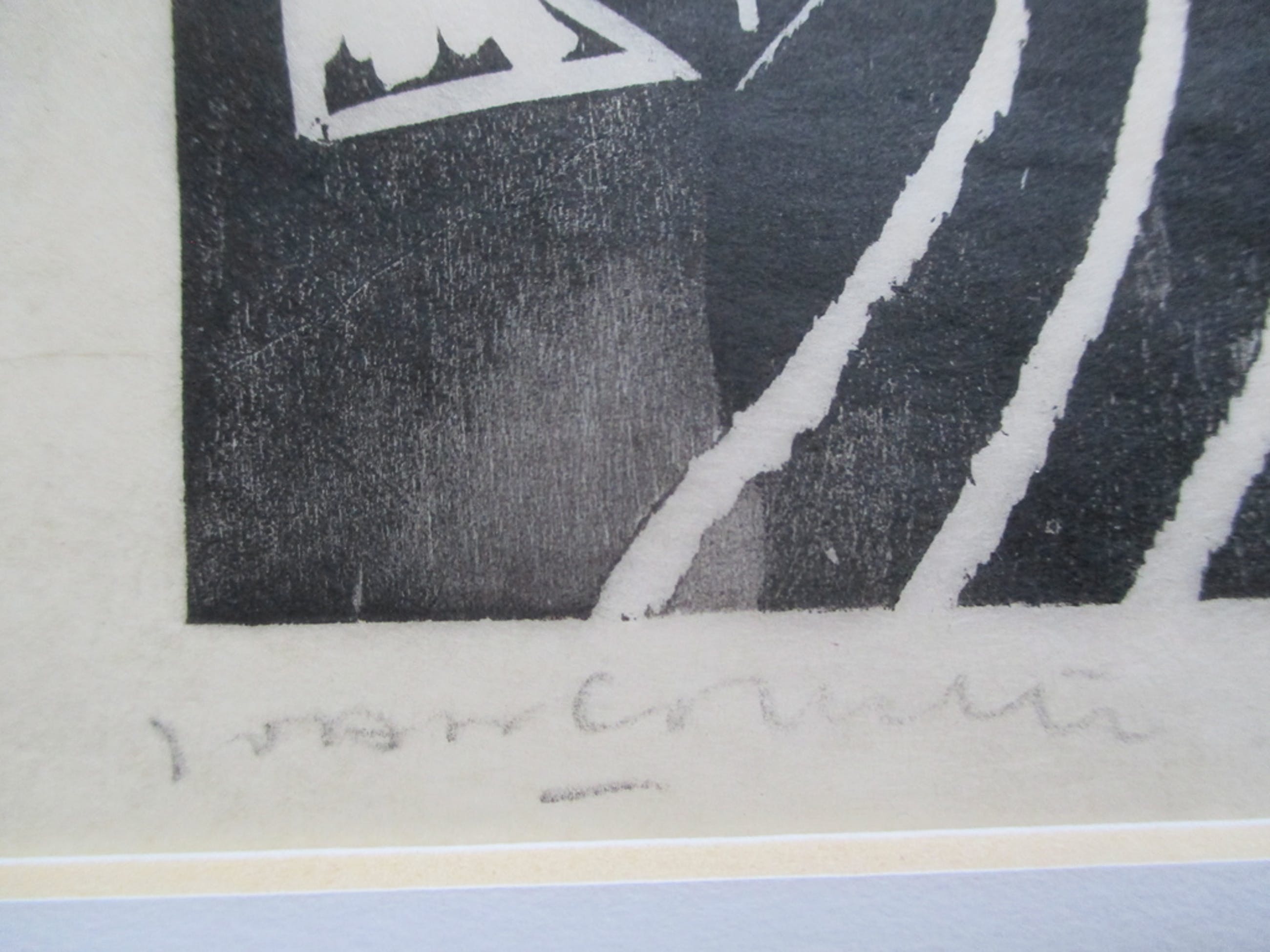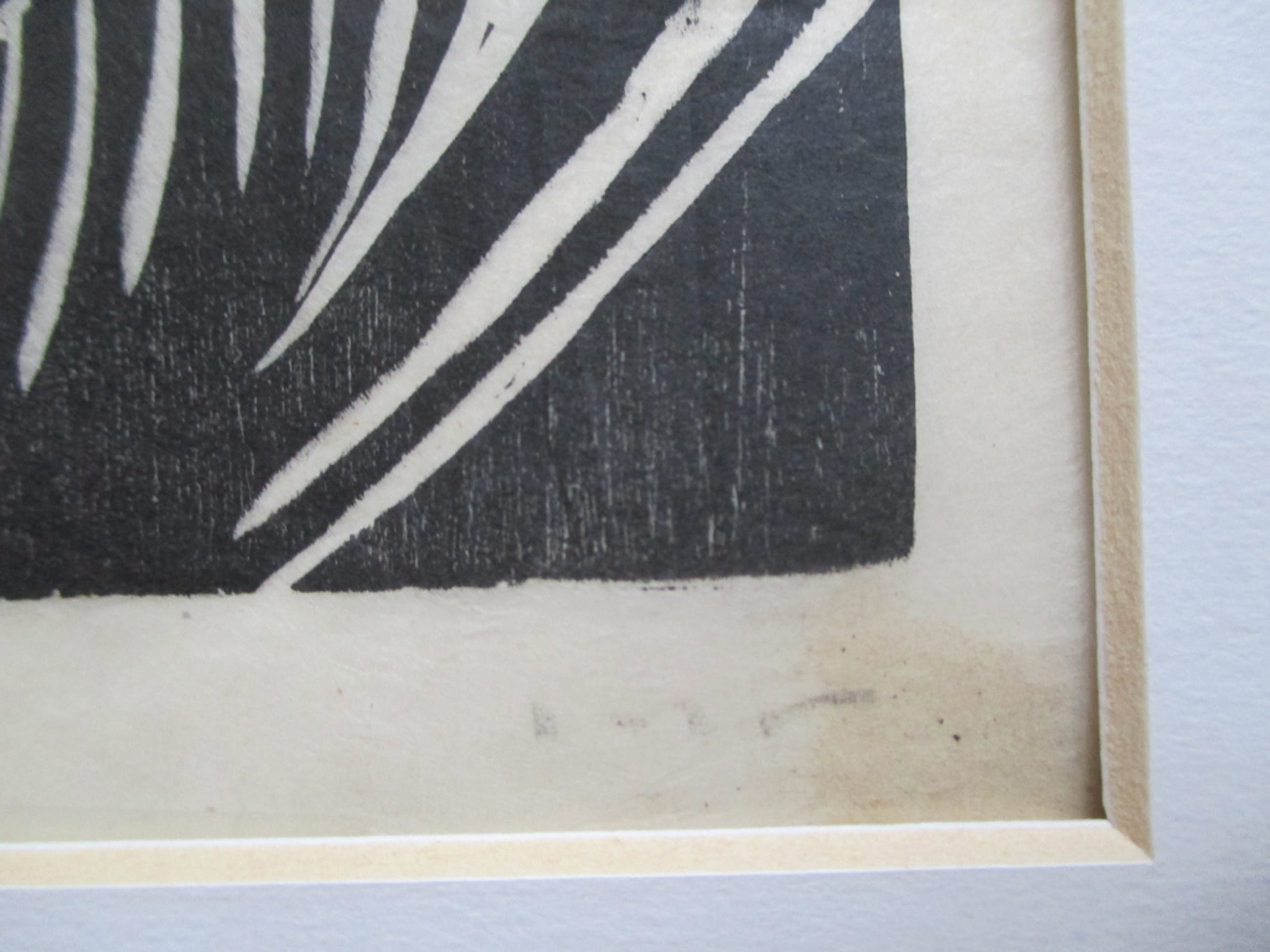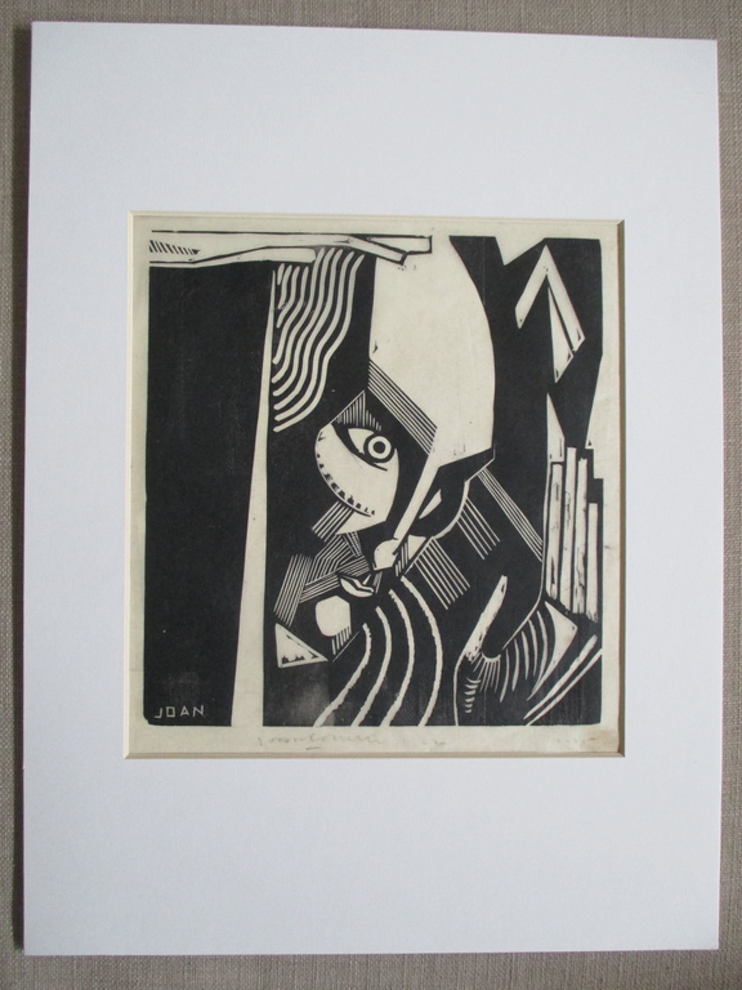 Mooie houtsnede op dun japans papier van joan Collette, m.o gesigneerd in potlood. R.o staat nog iets, wellicht het jaar. Tevens l.o gesigneerd in het blok. Geplaatst in mooi vlekkeloos zuurvrij passe-partout, afm. 30x40 cm, beeld 19,7x21,2 cm.
