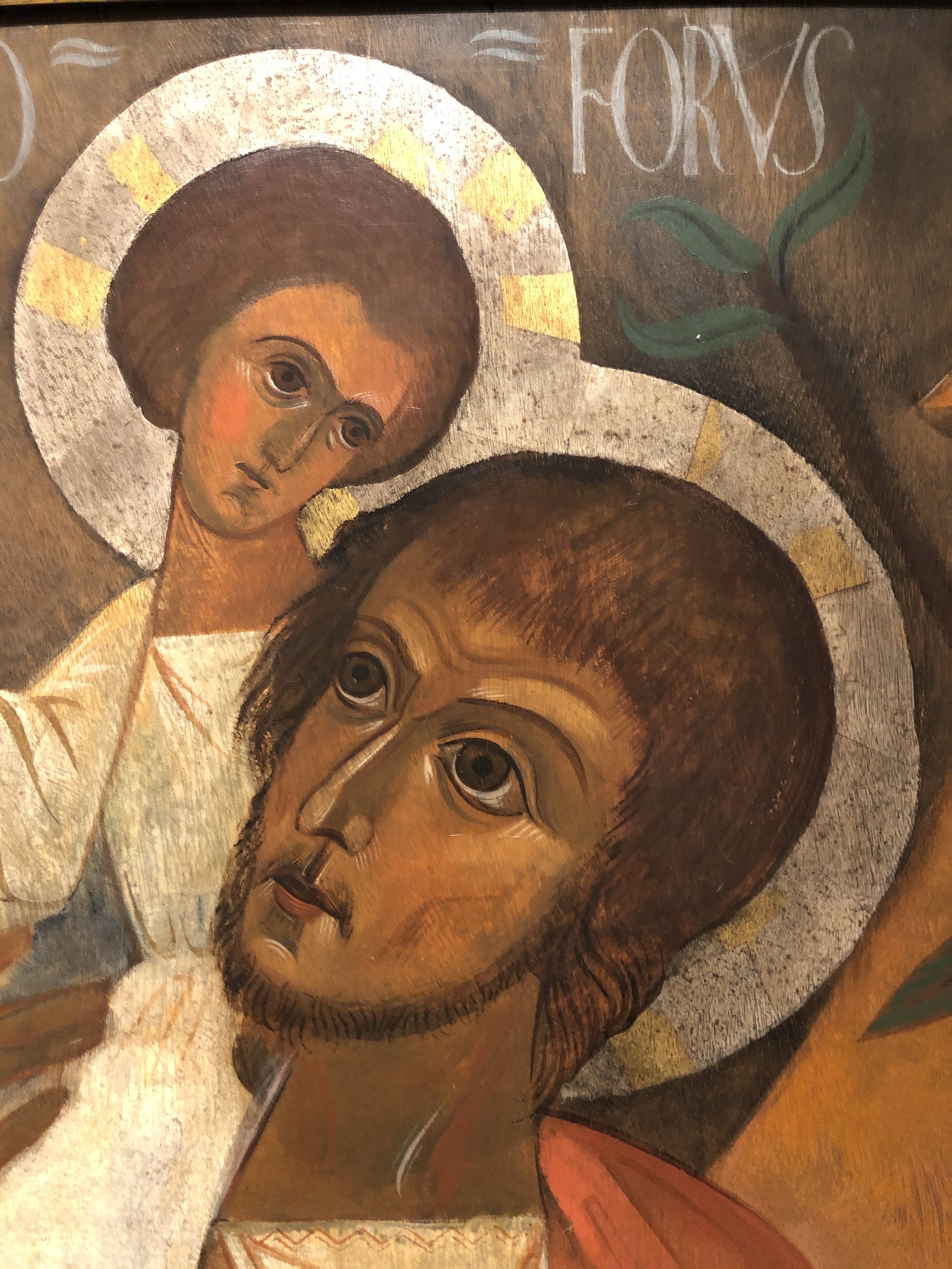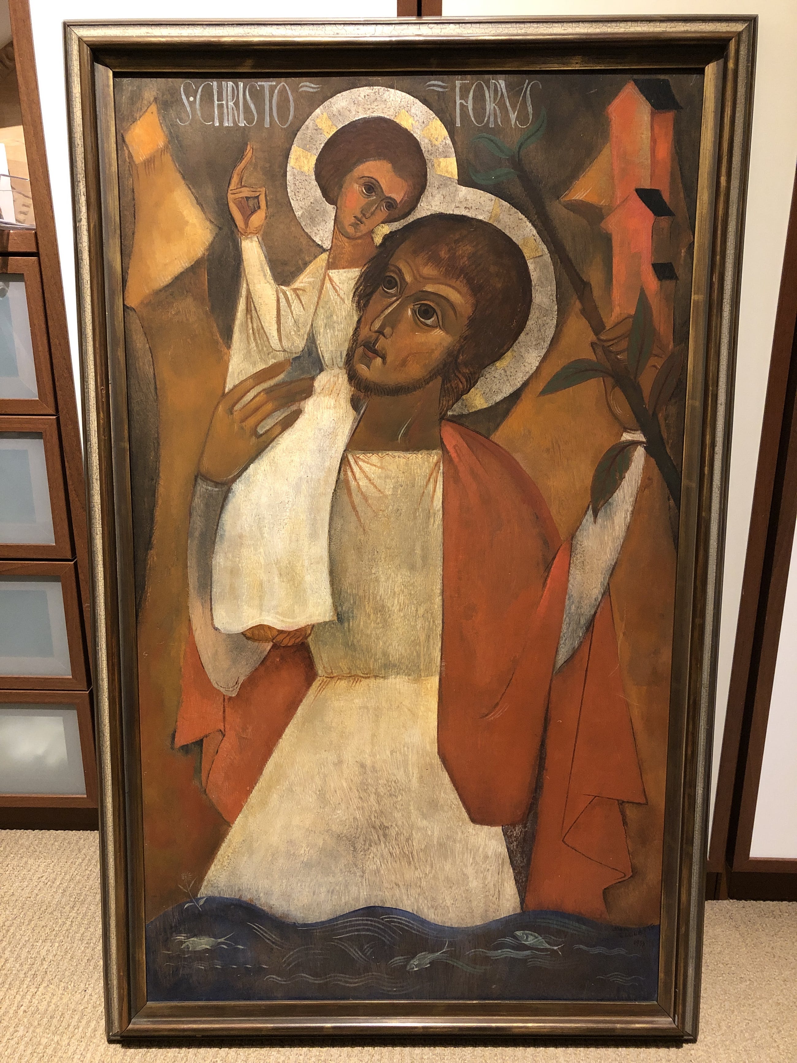 Mooi schilderij van St. Cristoffel gemaakt in 1933 door Joan Collette te Nijmegen.