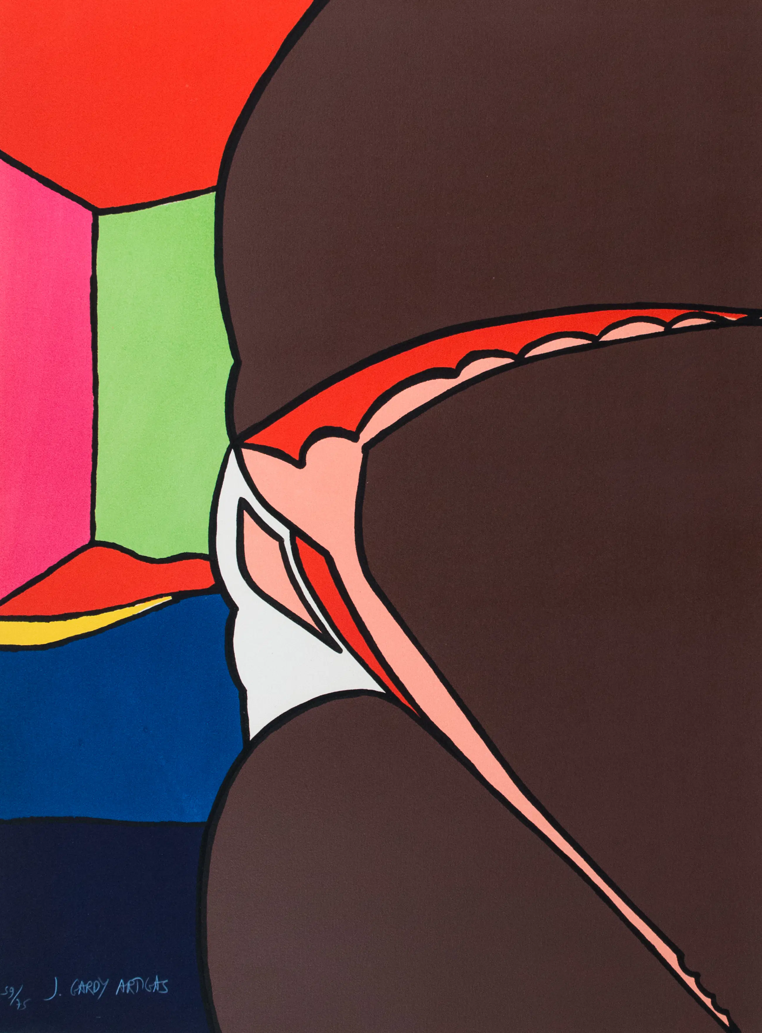 Kleurenlithografie op stevig papier, handgesigneerd en genummerd (69/75) met potlood.