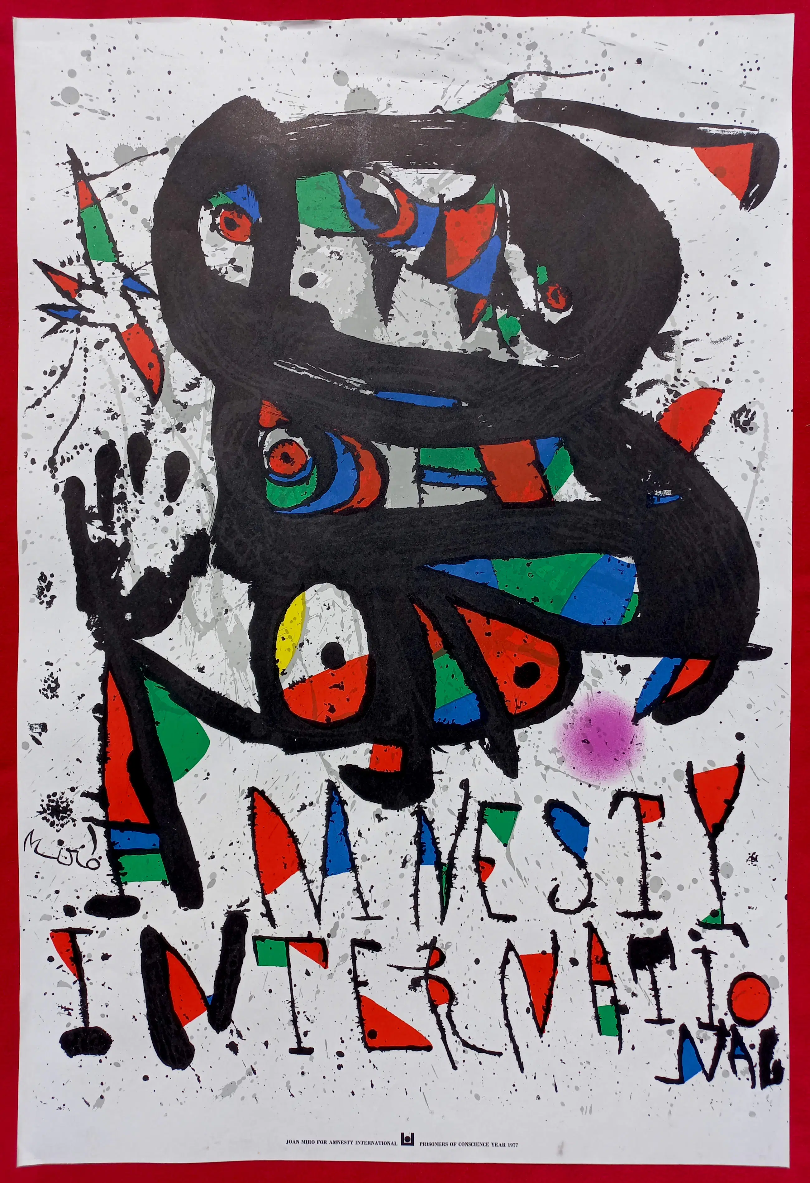 Affiche voor het “Prisoners of Conscience Year 1977” van Amnesty International. Litho op glad papier, gesigneerd en getiteld in de steen. In goede conditie.
