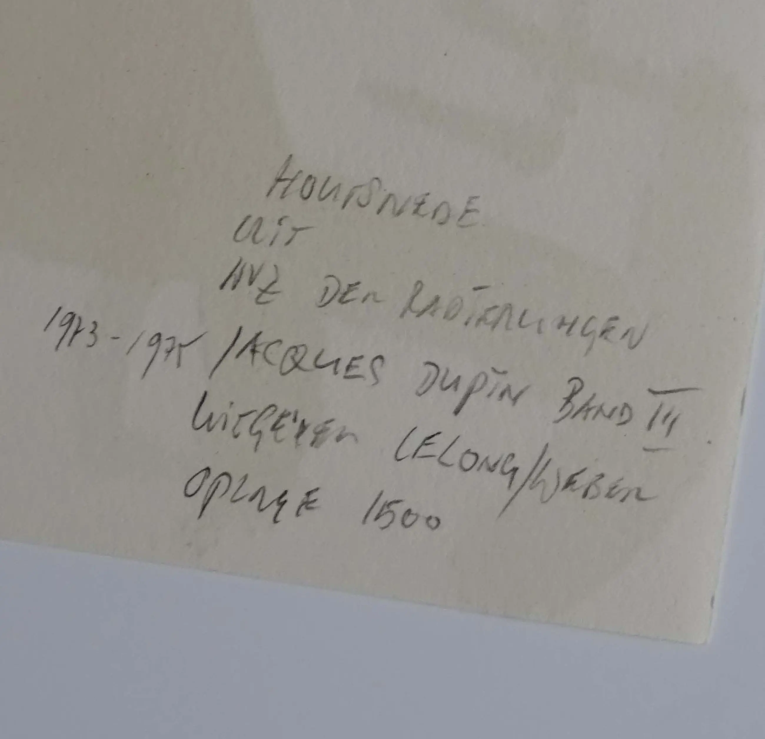 Joan Miro Houtsnede uit WVZ Jacquin Dupin "Die Radierungen 1973/75 " uitgever Lelong / Weber , Paris afmetingen blad : 32,0 x 24,7 cm op zwaar papier ongesigneerd oplage 1.500 stuks in goede staat zonder lijst
