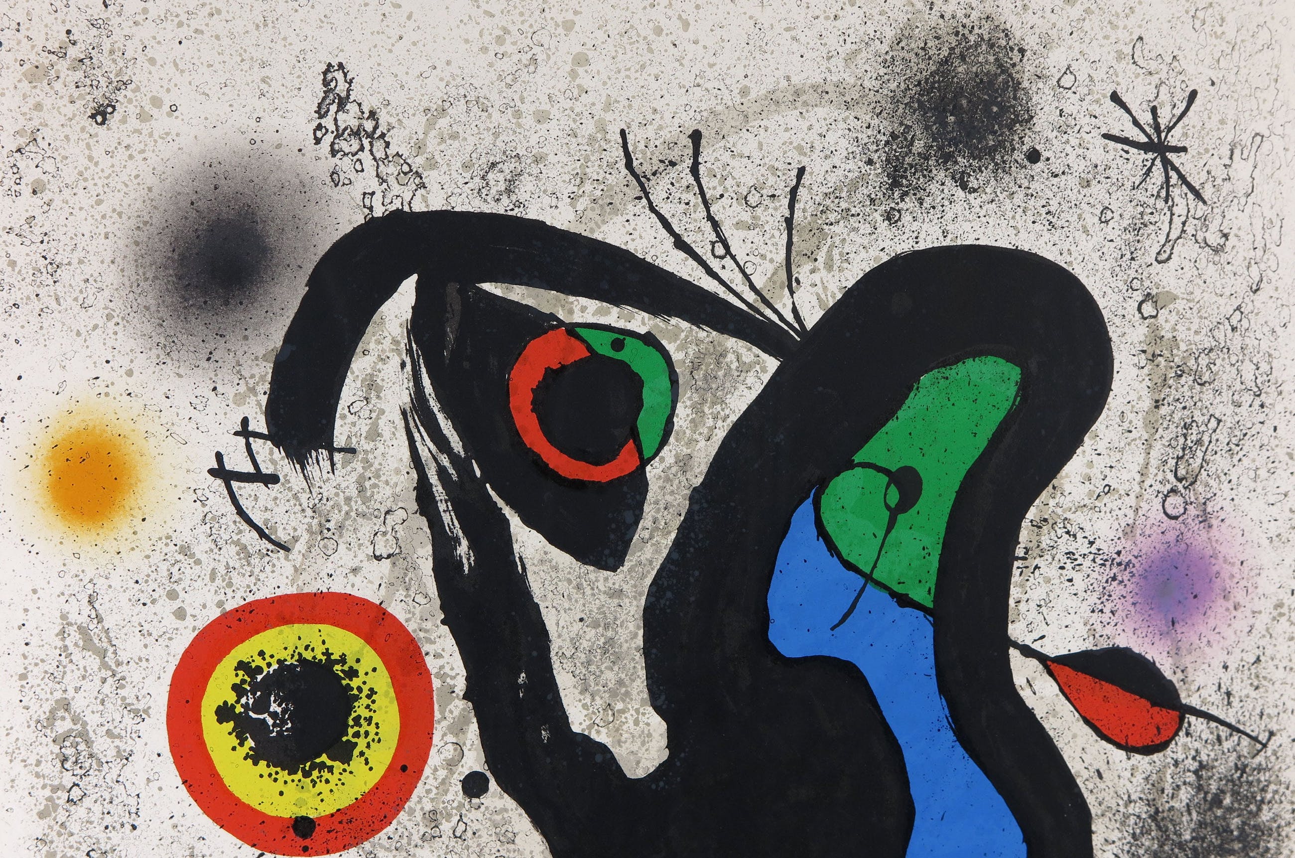 Uitzonderlijke kleurenlitho van de Spaanse kunstenaar Joan Miro op Arches papier. Het werk is in goede staat en daarmee een waar topstuk! De litho is gemaakt voor de International Plastic Arts Association, Unesco. Gedrukt door Mourlot.