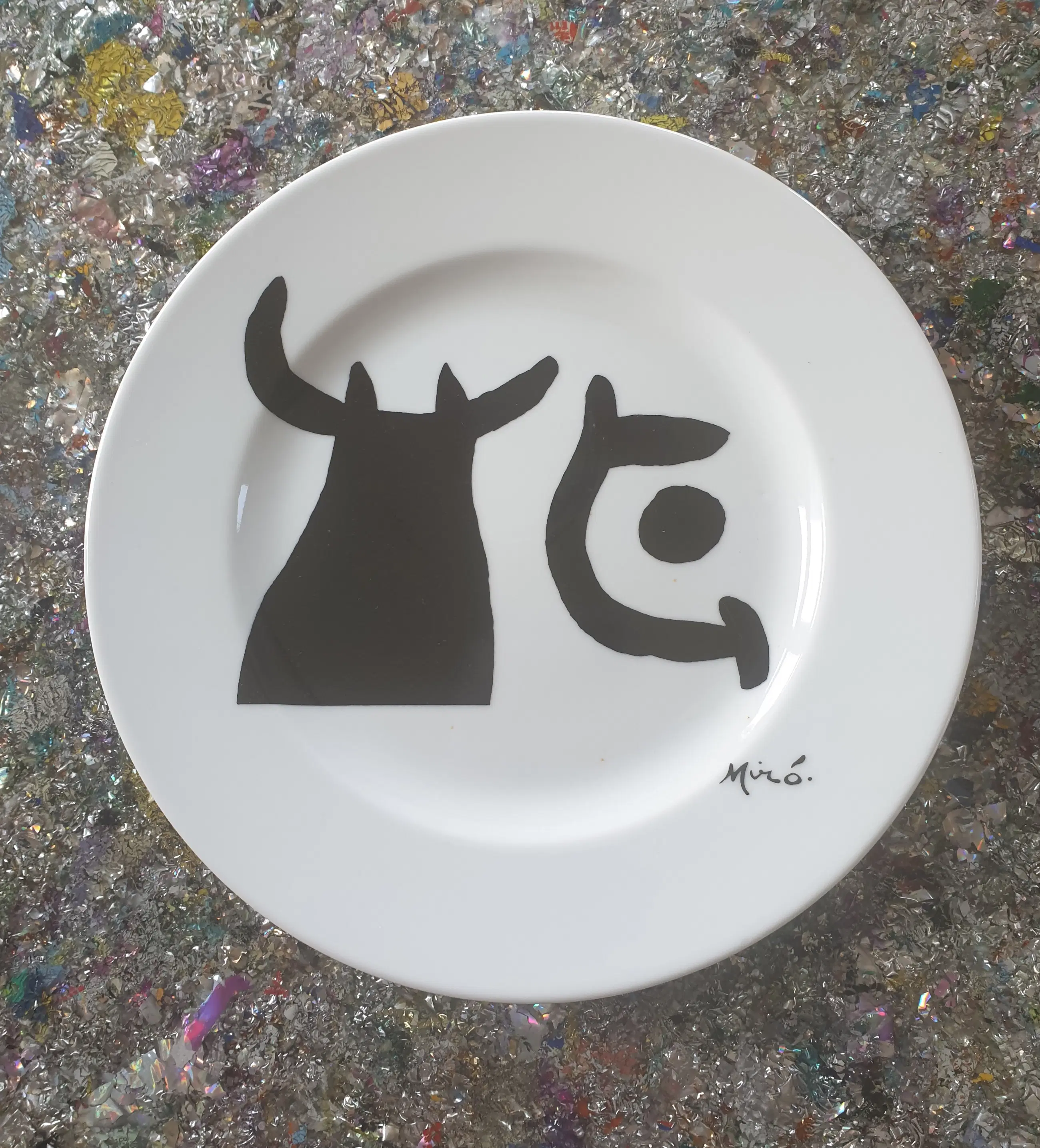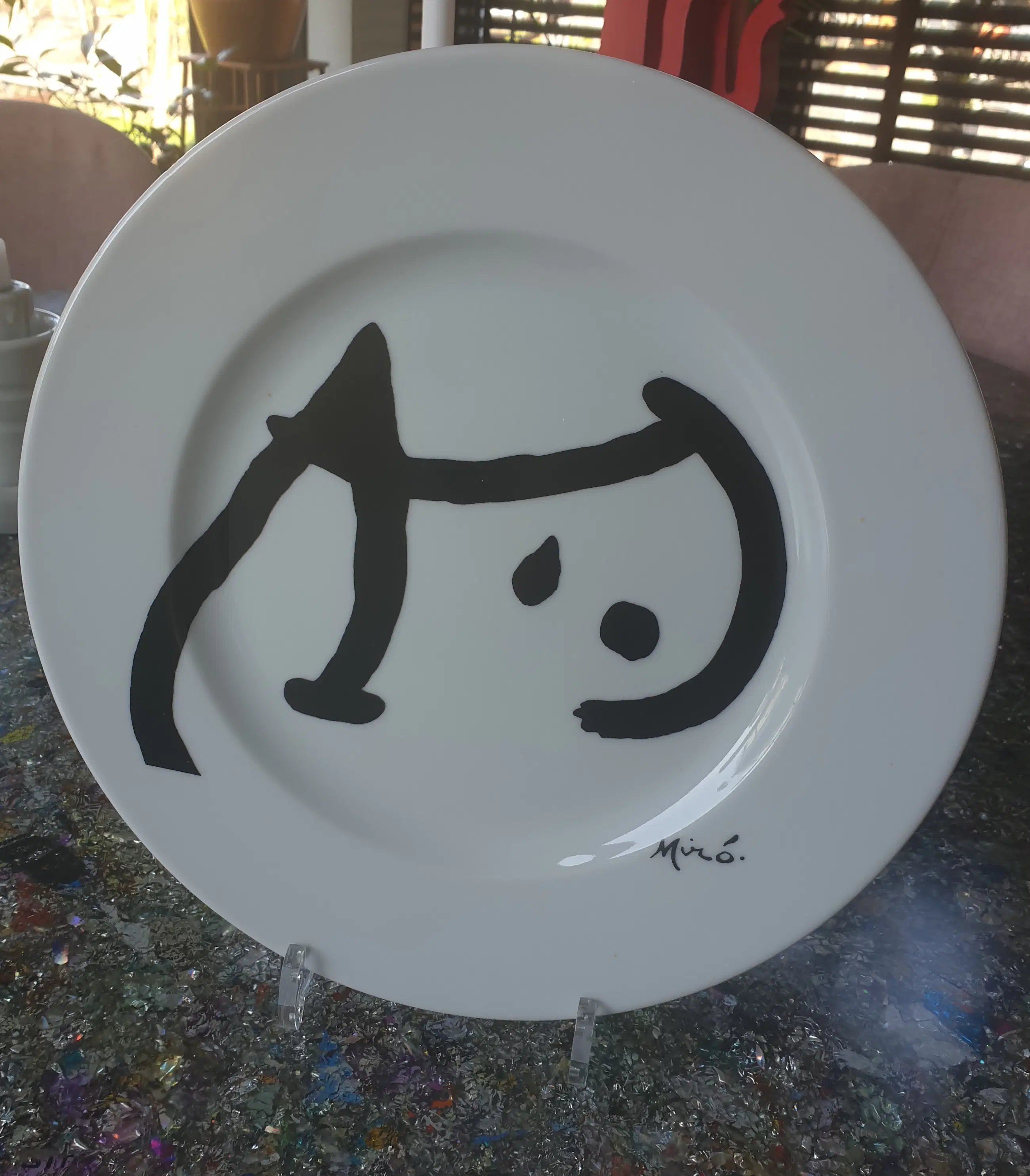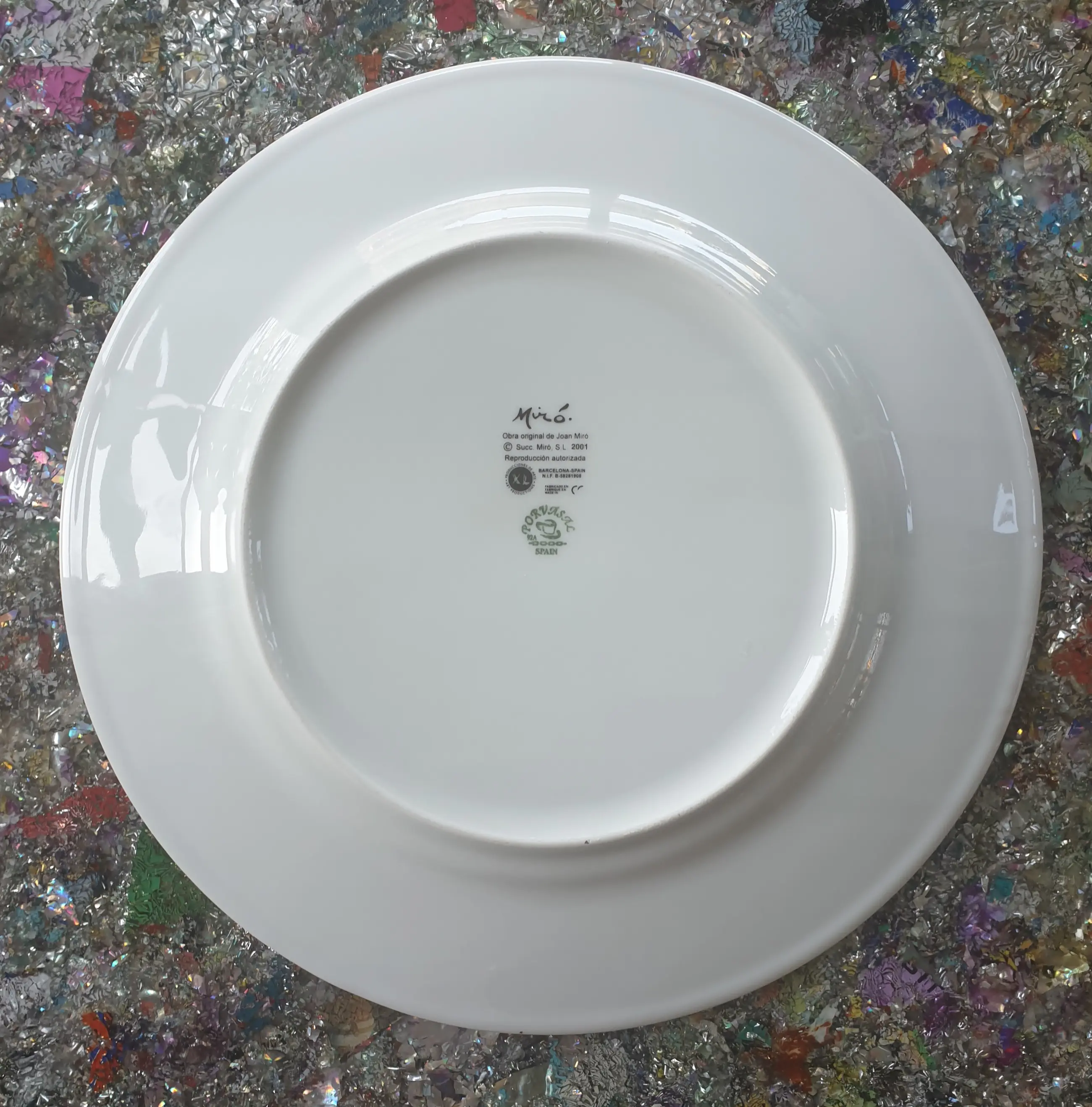 Twee porseleinen (Porfasac Spanje) borden van Joan Miro. De borden uit 2001 zijn officieel geautoriseerd. Diameter 30 cm. De borden worden aangetekend verstuurd, maar kan ook afgehaald worden.