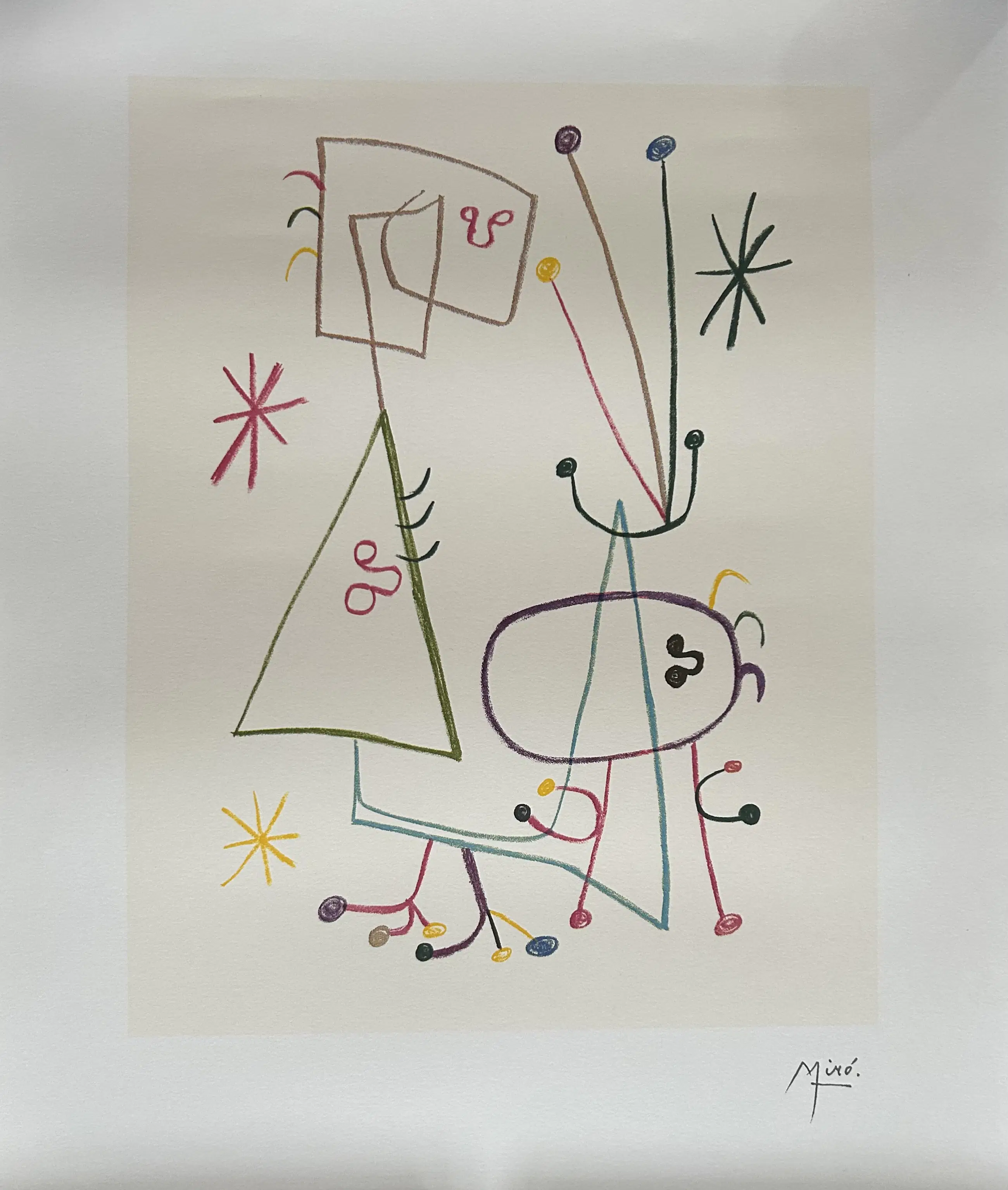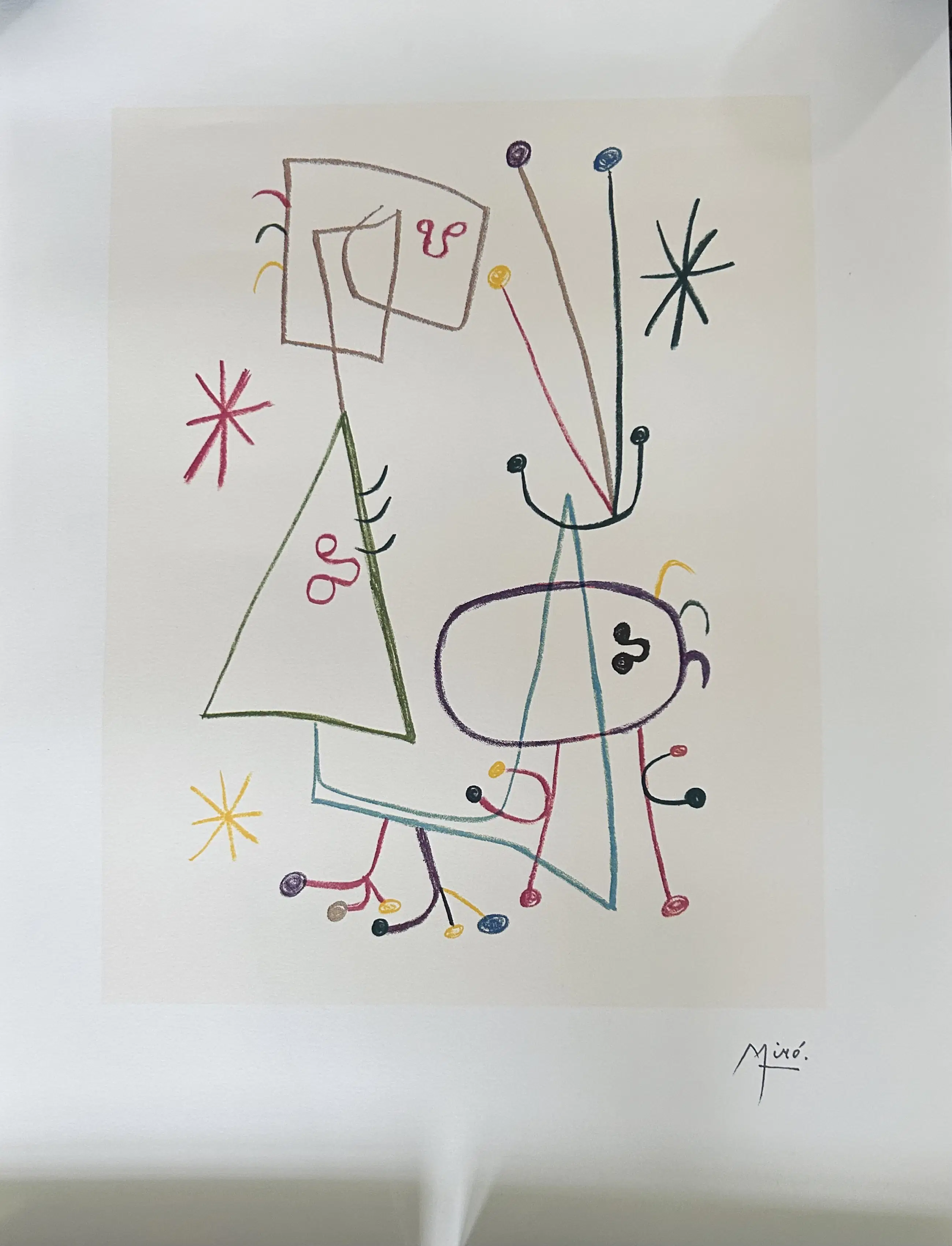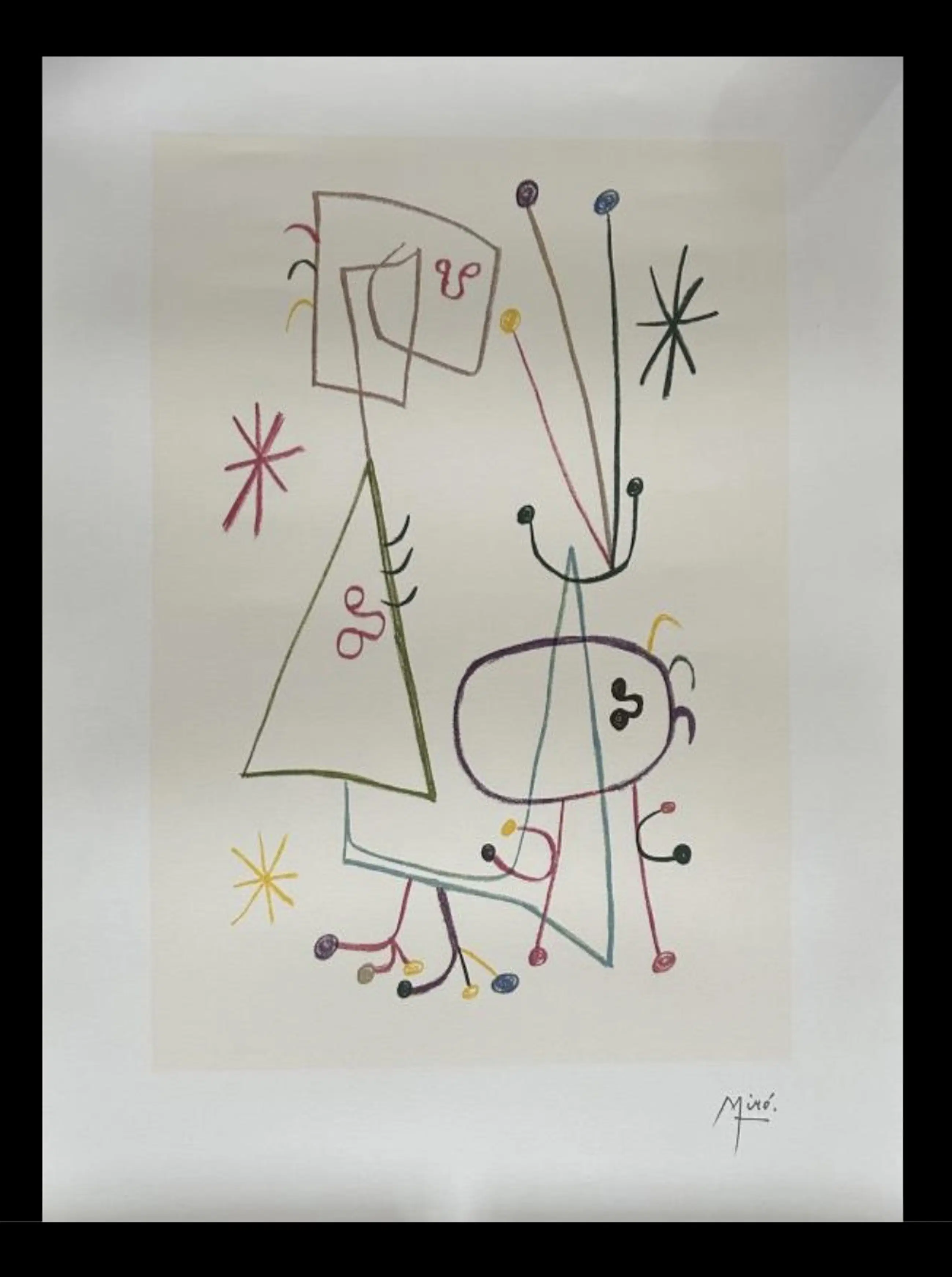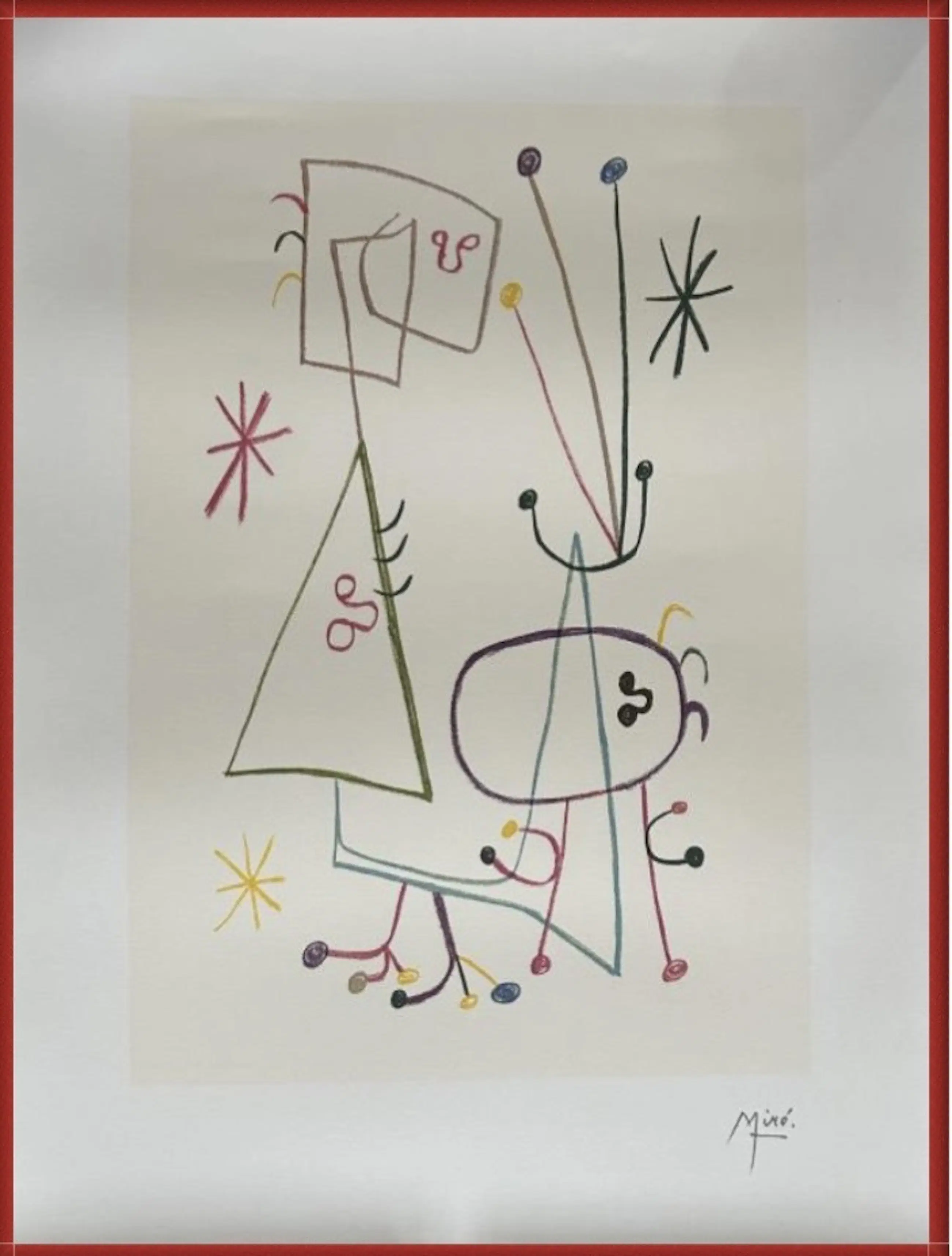 Prachtige litho van Miró meerwaarde voor je interieur thuis en/of op het werk. Voorbeelden van inlijsten zie foto’s.