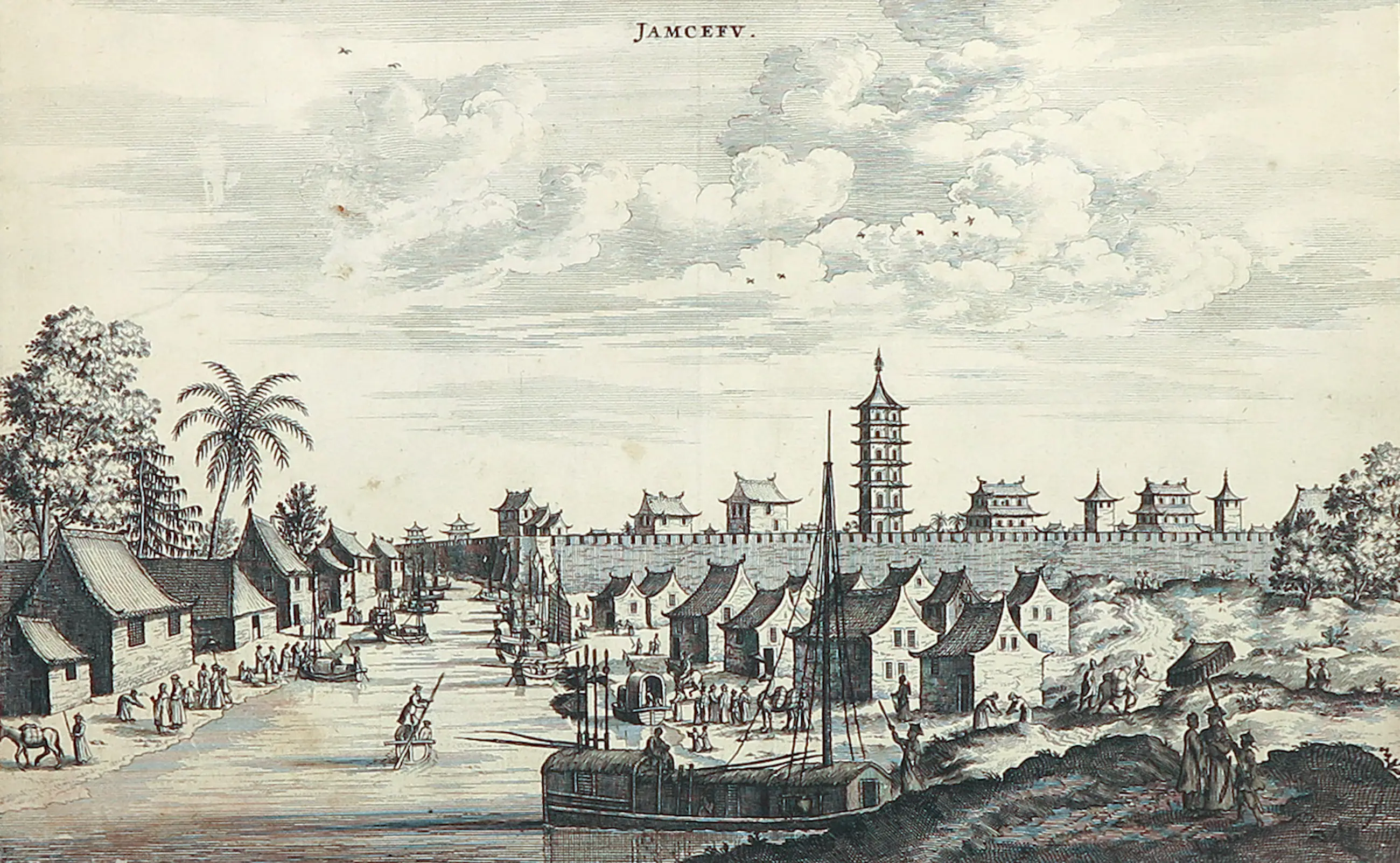 Gravure gemaakt naar een tekening van Joan Nieuhof en afkomstig uit het boek: Gezandtschap der Nederlandtsche Oost-Indische Compagnie ... aan den grooten Tartarischen Cham, den tegenwoordigen keizer van China. Uitgegeven door Jacob van Meurs in 1665.