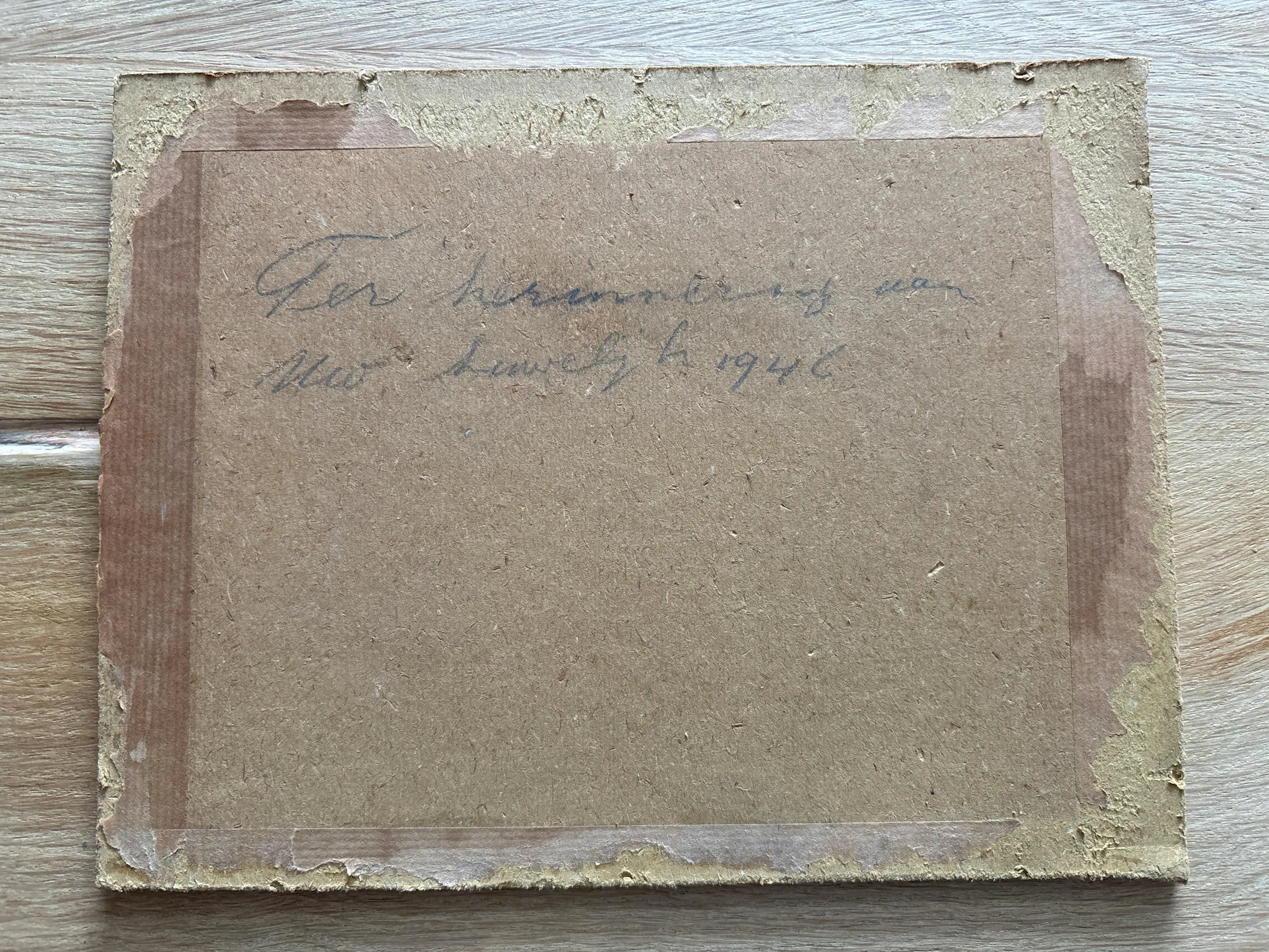 Kleine beschadiging bovenaan het schilderij. Stoffig.
