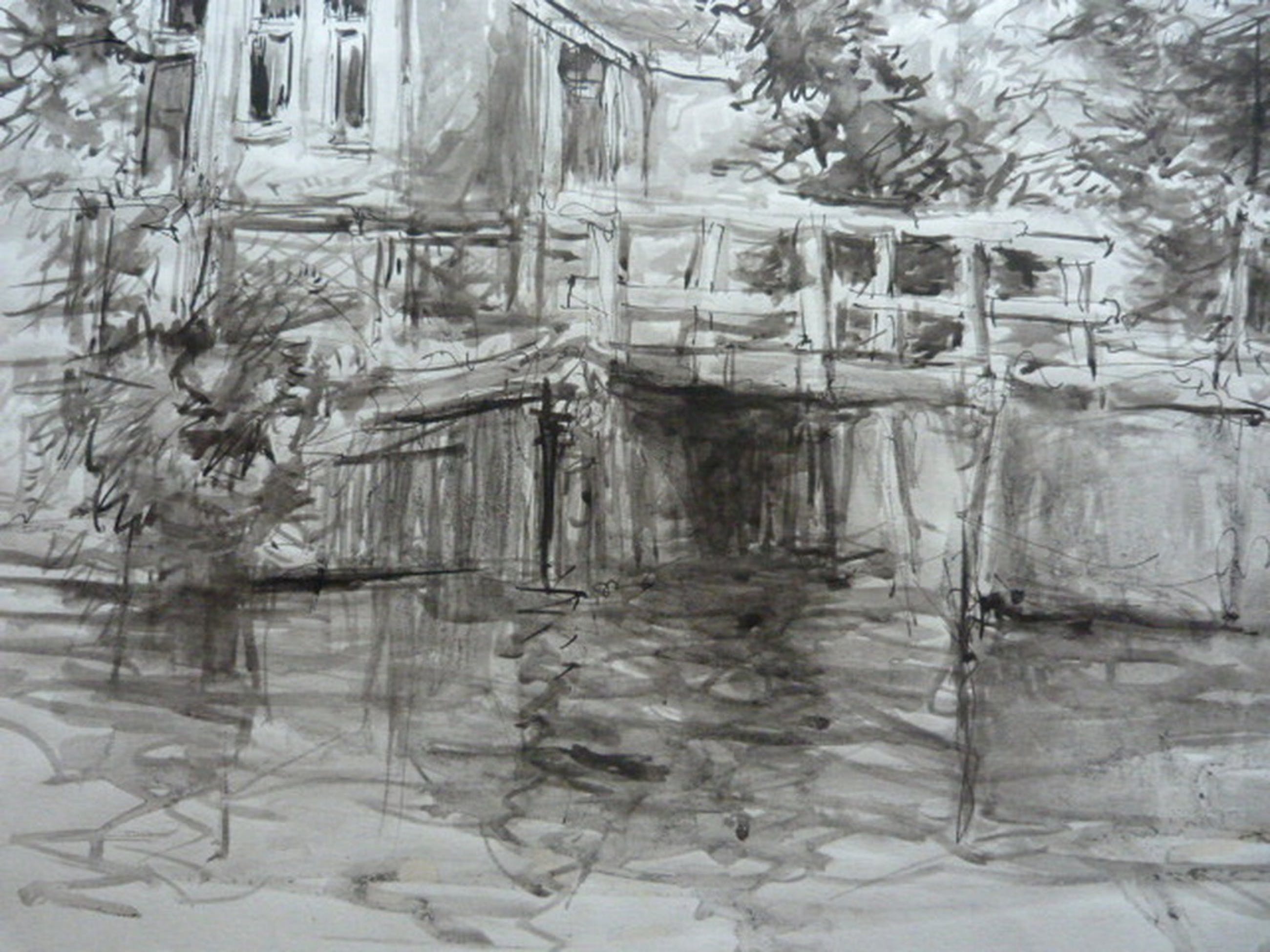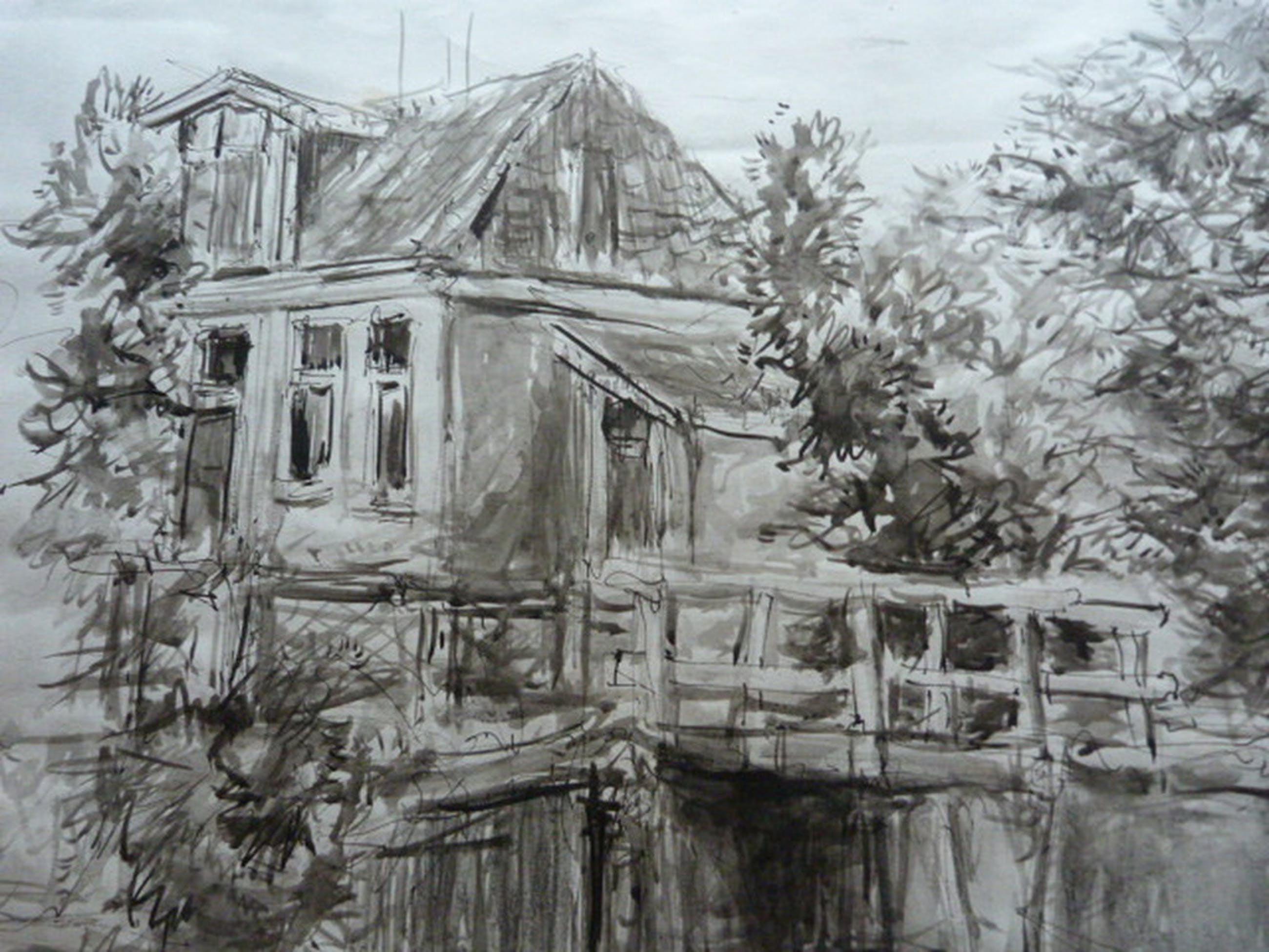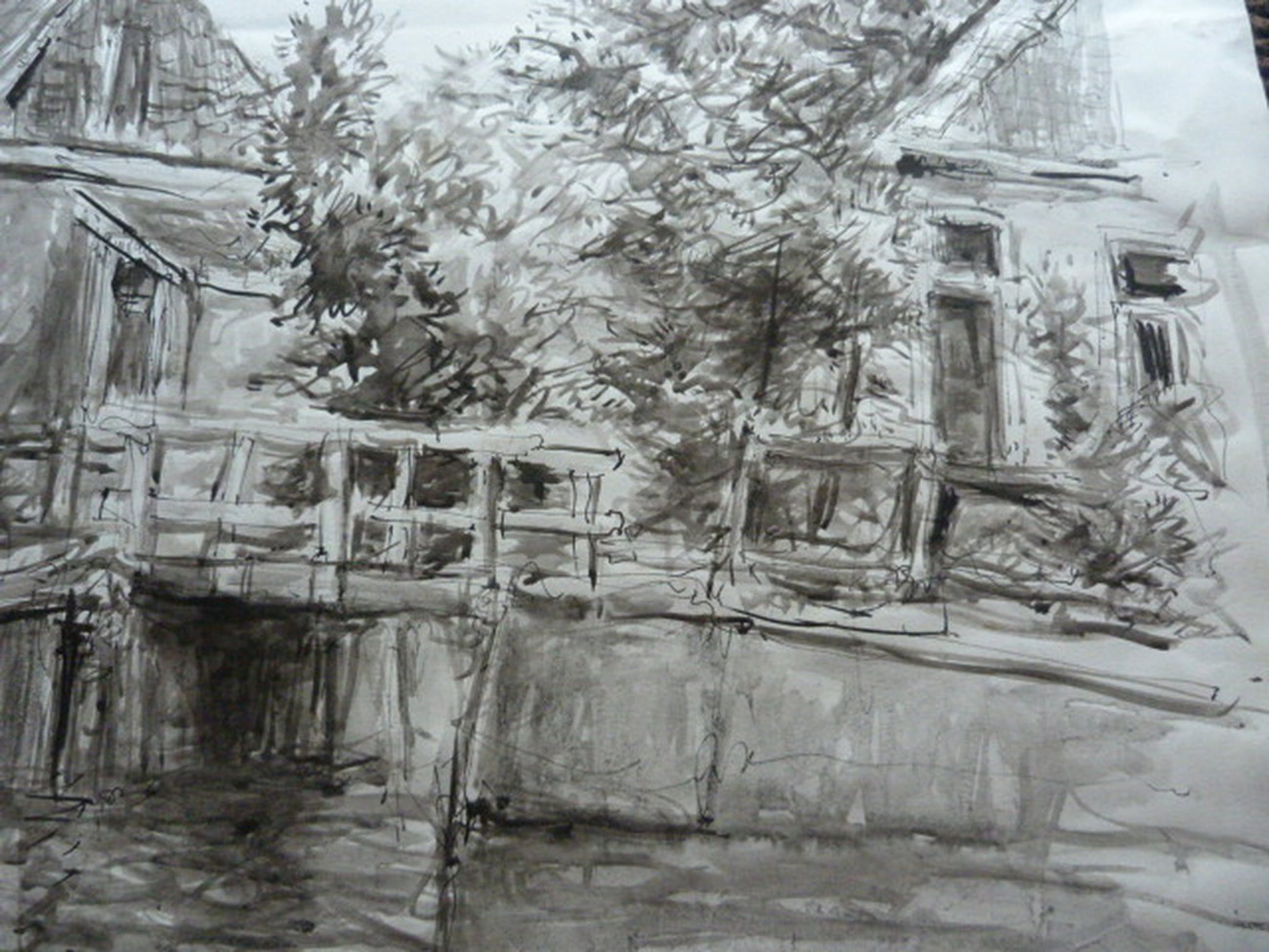 Uit nalatenschap = tekening/aquarel dorpshuisjes =