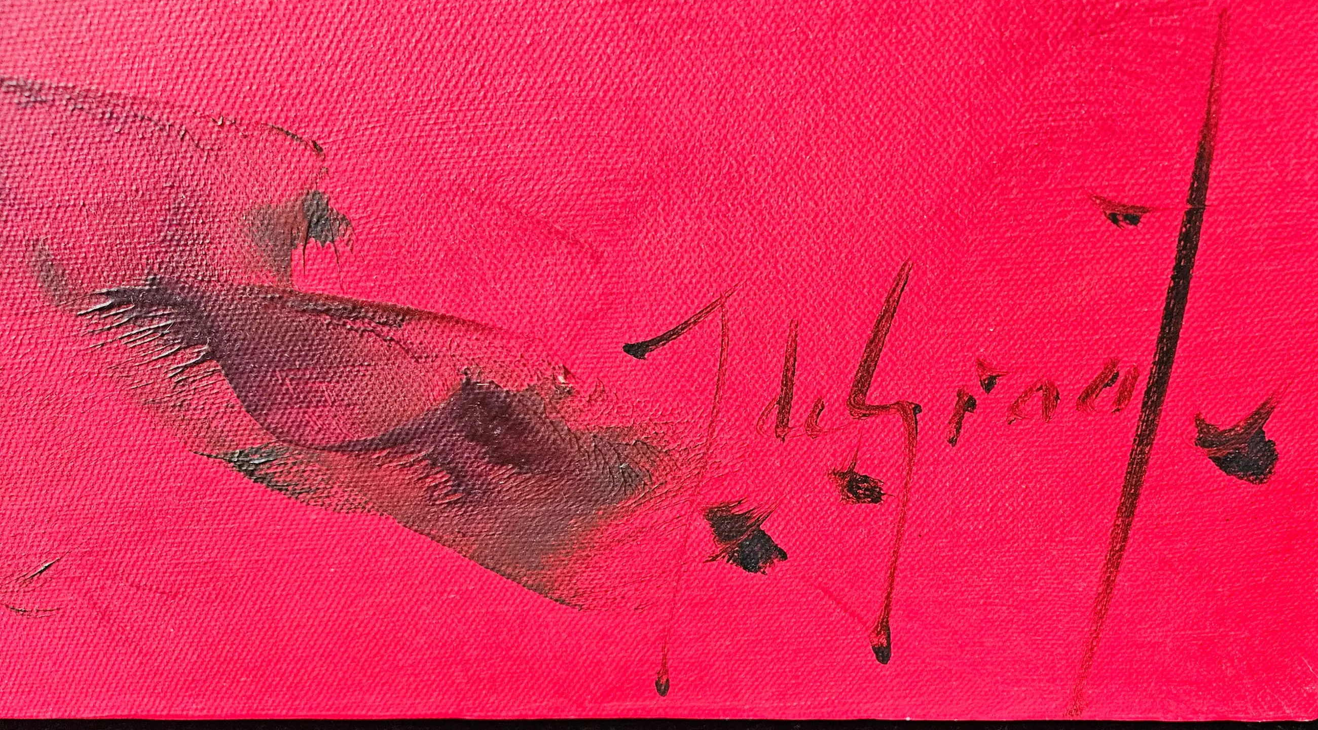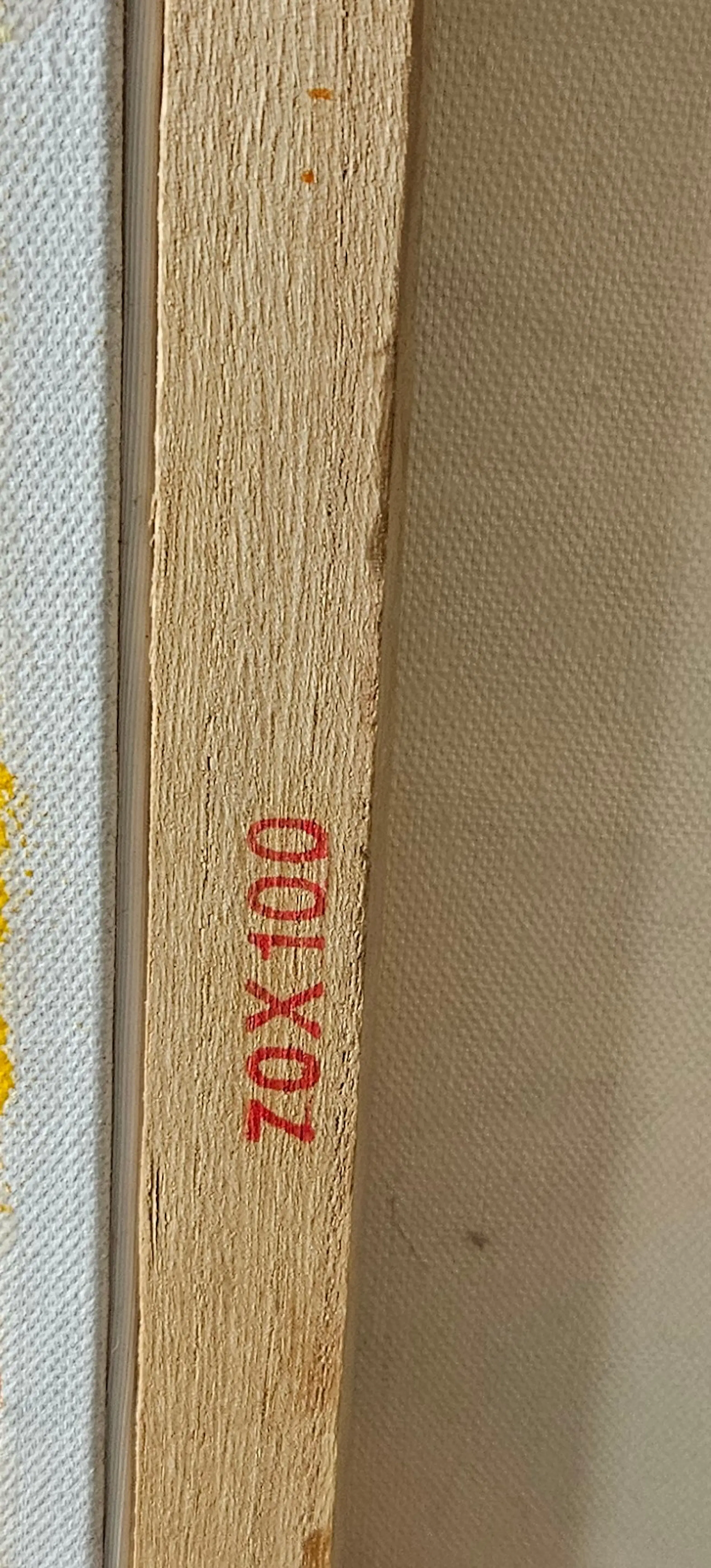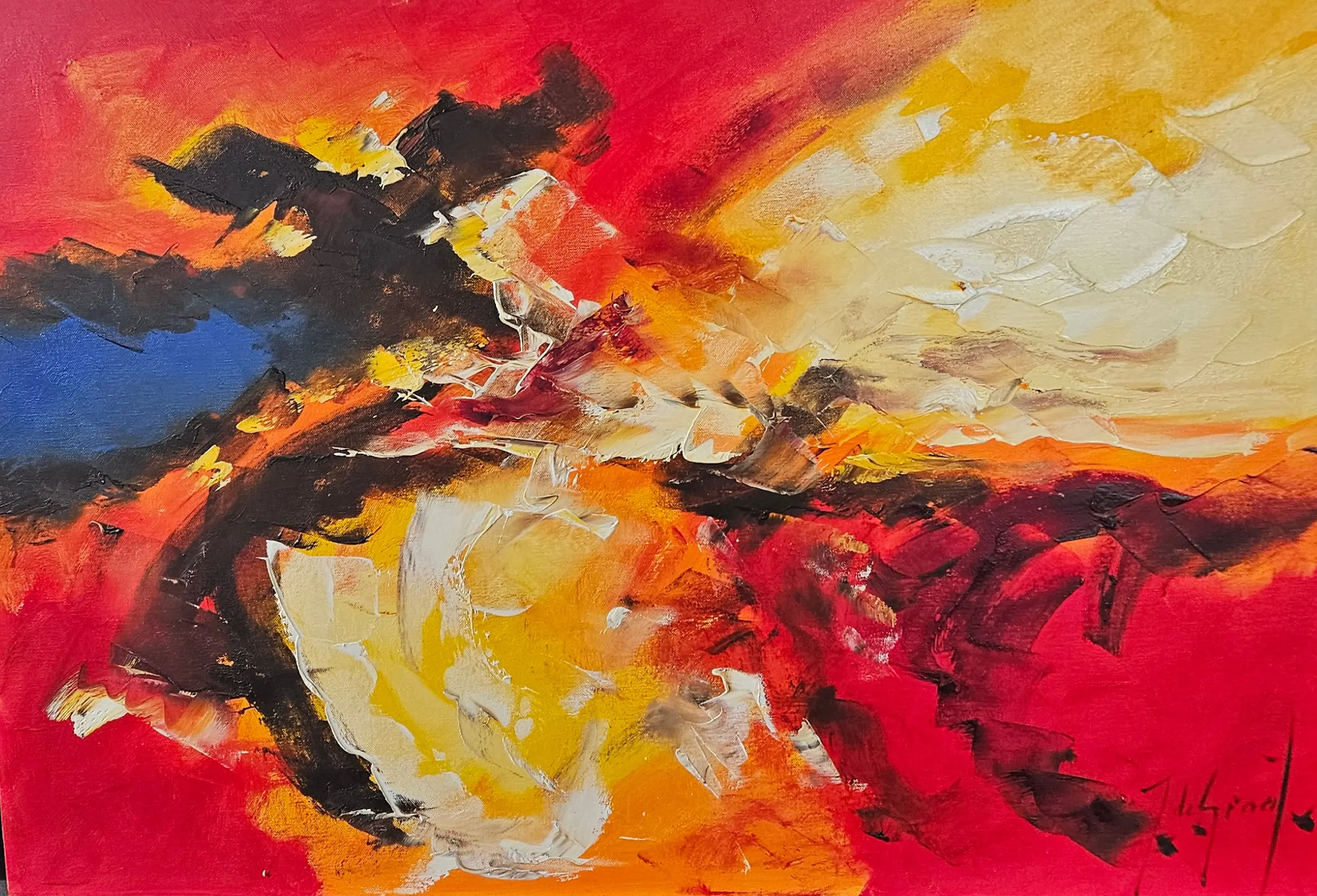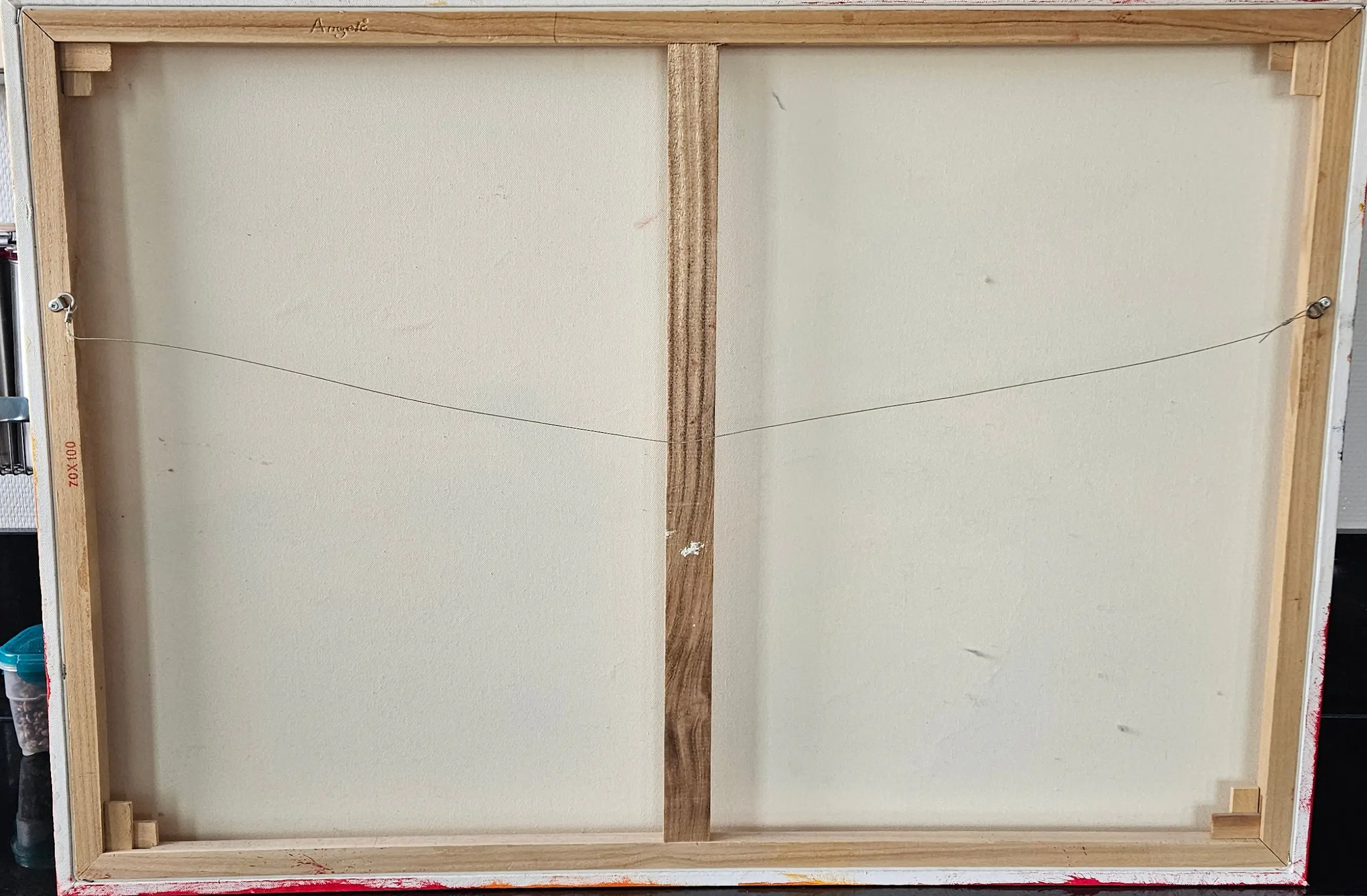 Abstract werk, uv bestendige vernis, niet ingelijst want doorgeschilderd op de zijkant.