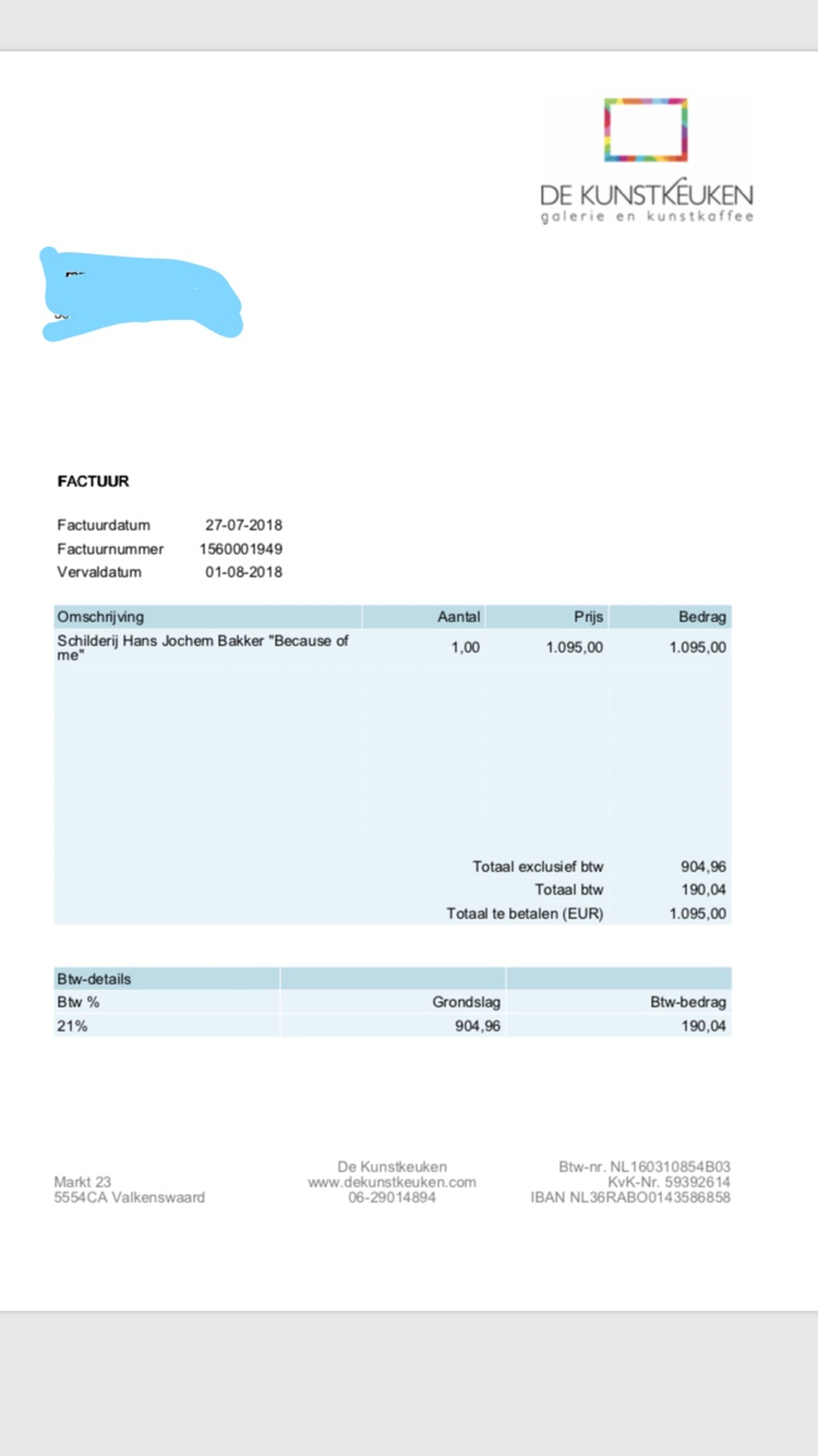 Het werk is af te halen op locatie. Als koper dient u zelf verpakkingsmateriaal mee te nemen. De locatie is: Valkenswaard, Nederland