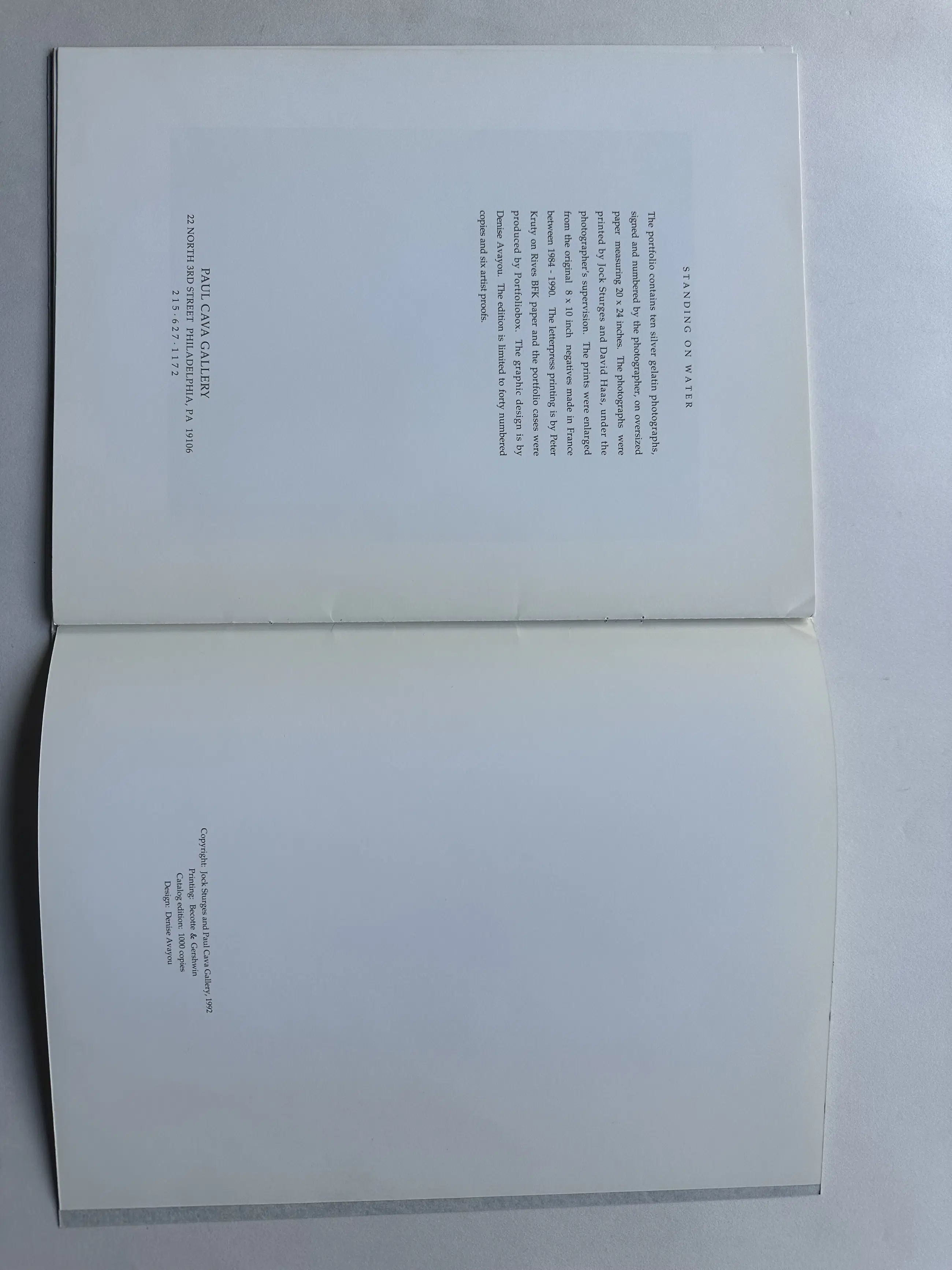 Philadelphia: Paul Cava Gallery, 1991. 1992. Softcover. Mottled blue-grey wraps with grey lettering; 28 pp. with 10 silver gelatin photographs.