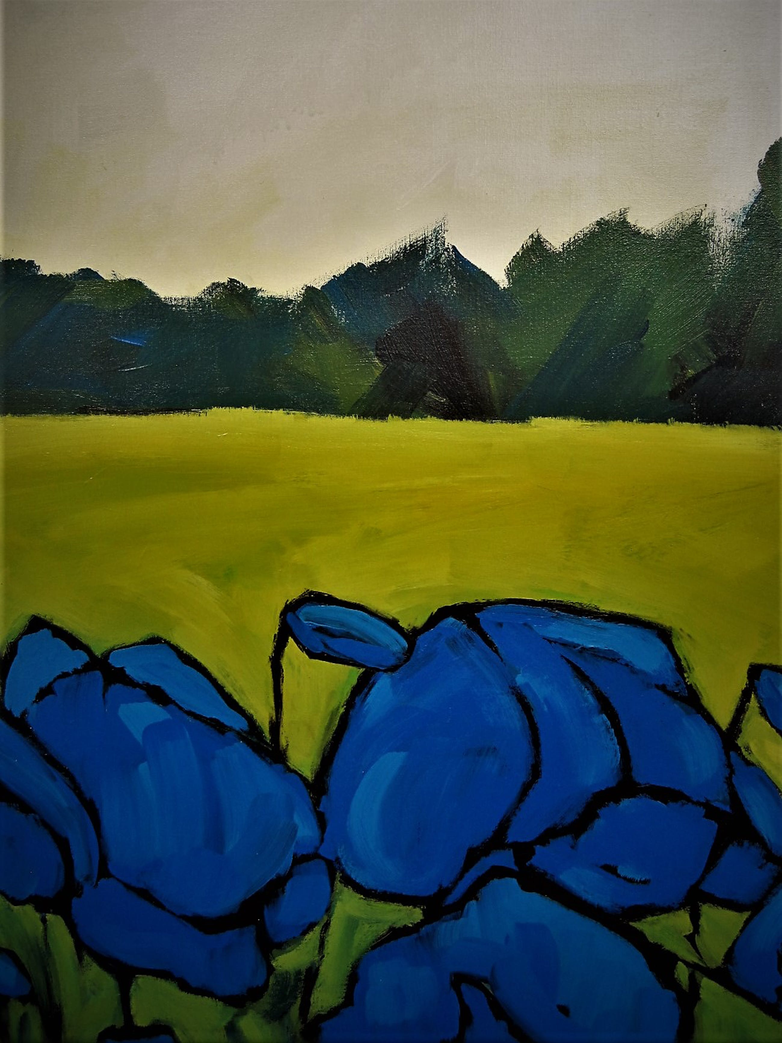 De schilderkunst van Jocke getuigt van een kleurige intensiteit. De samenhang tussen kleur, handschrift en vorm leidt tot doeken waarin dynamiek en verstilling elkaar op opmerkelijke wijze in balans houden.