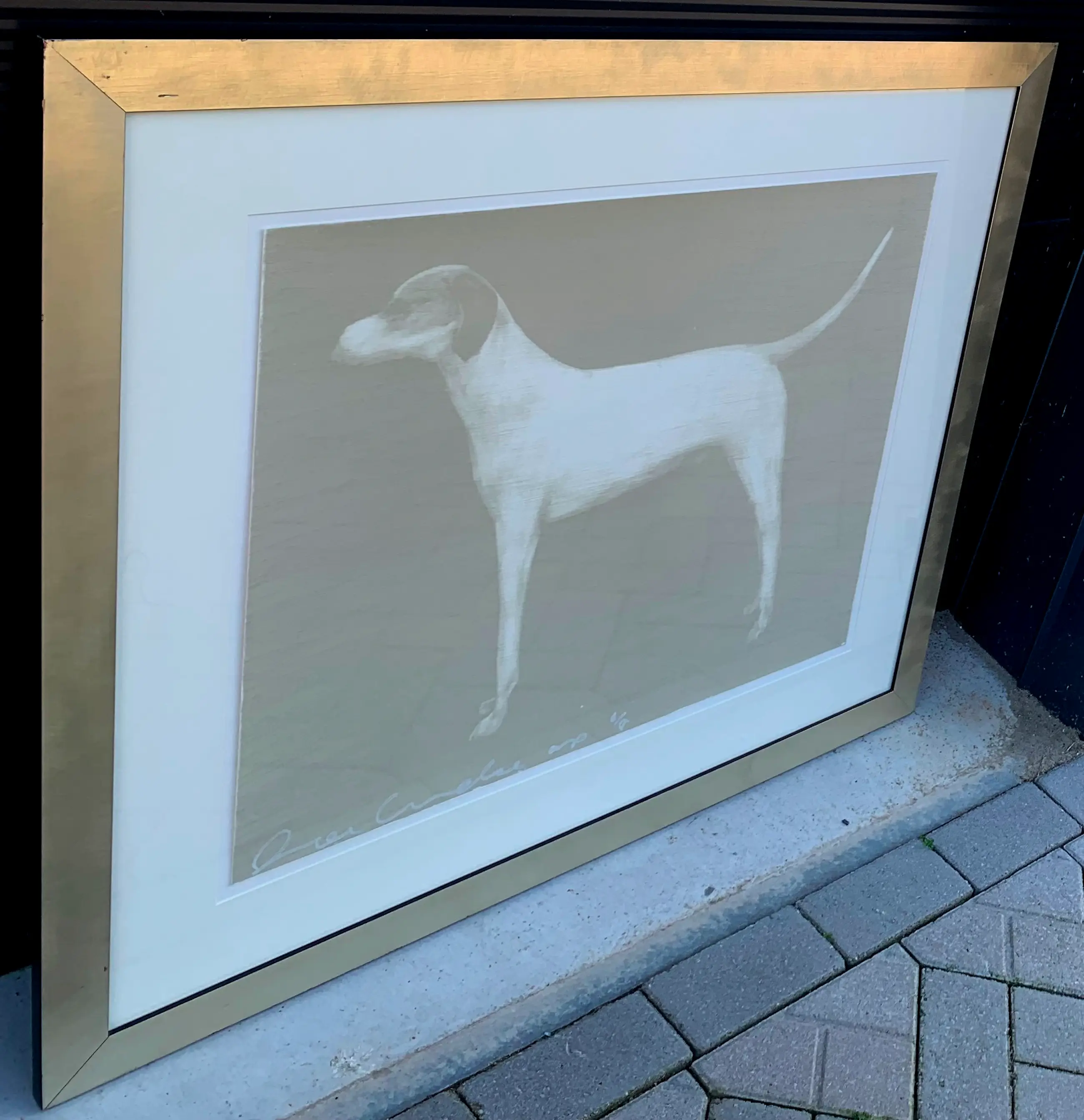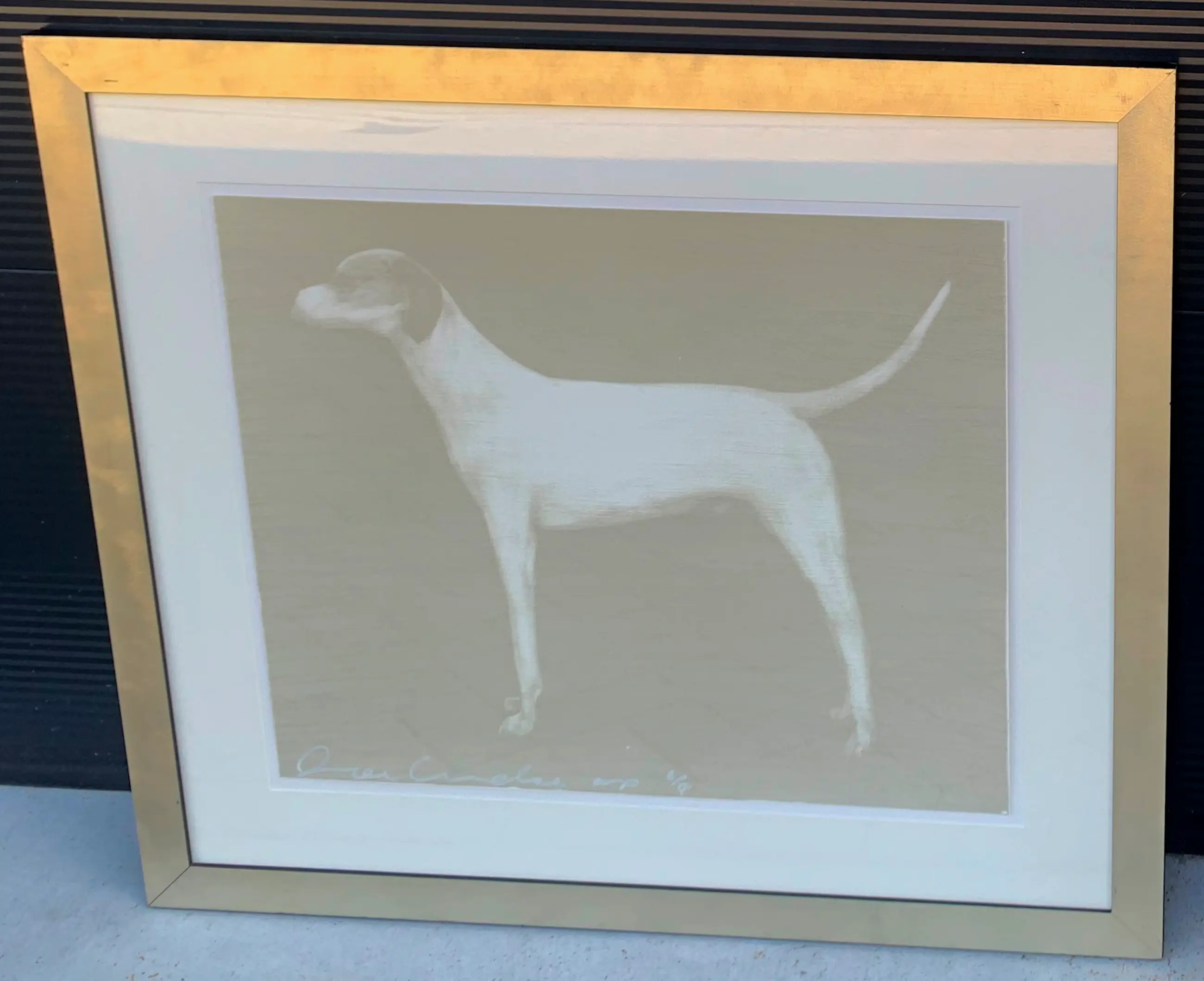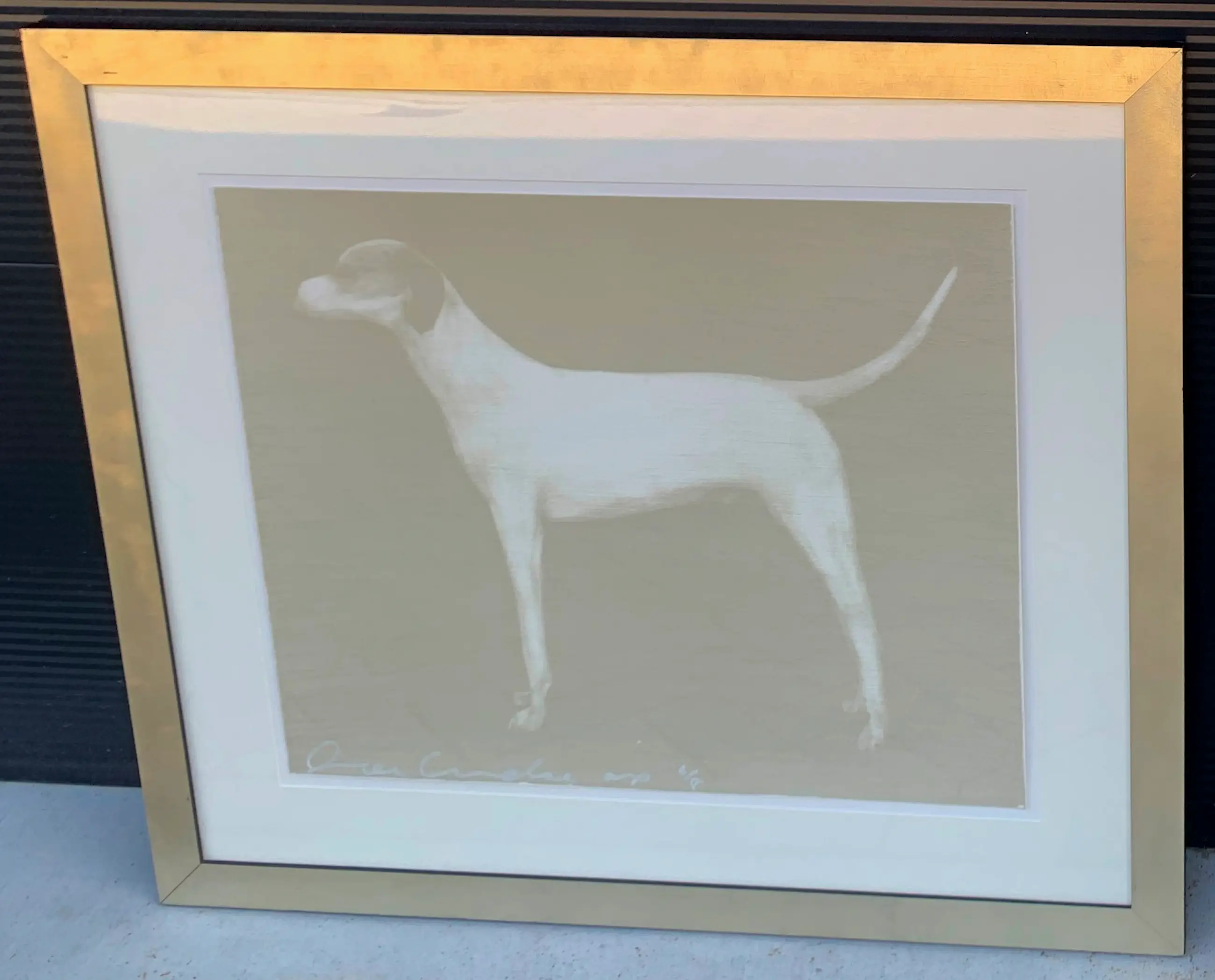 Ingelijste zeefdruk van de Amerikaanse kunstenaar, Joe Andoe. Titel: Small Dog(Putty). Jaar: 1998. Afmetingen incl lijst: H95 x b108cm. Afmetingen voorstelling: H63 x b76cm. Het werk is, links onderaan, gesigneerd door de kunstenaar. De authenticiteit van het, aangeboden, werk wordt volledig gegarandeerd. Een certificaat van echtheid kan, op aanvraag, worden gemaild. Uitgegeven bij Lococo fine art, St. Louis (US) in 1998.
