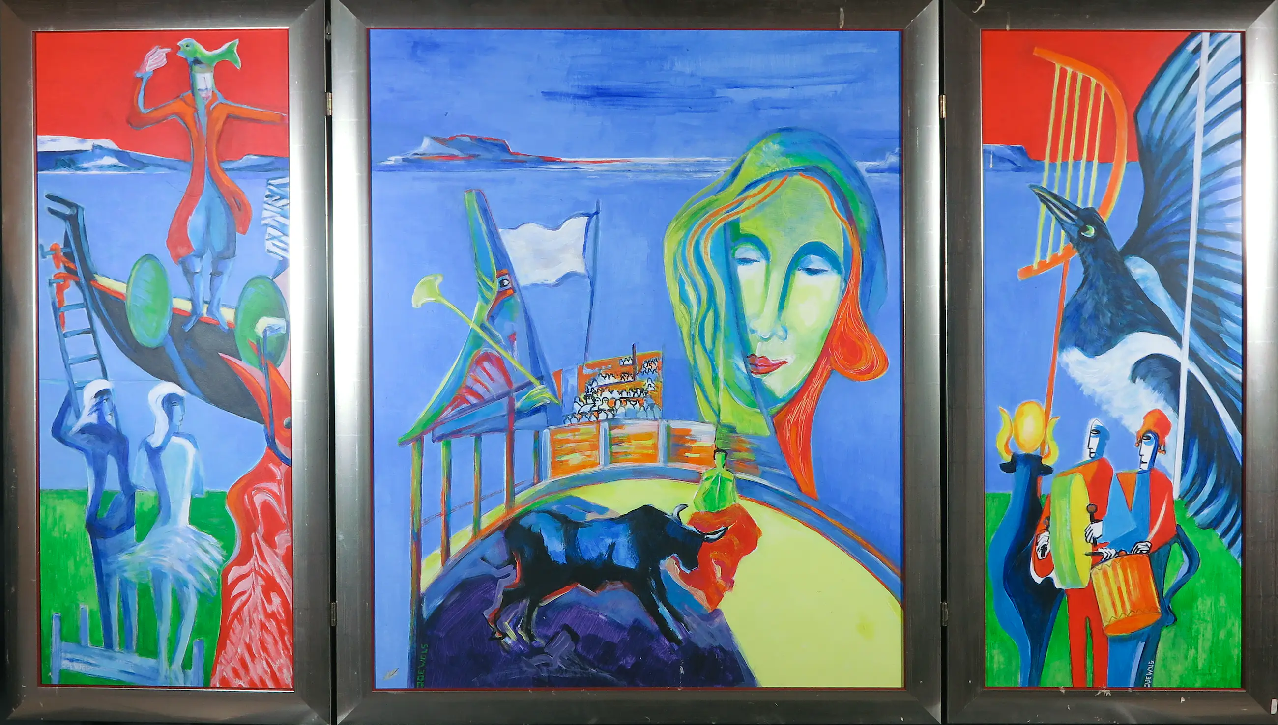 Joe Wols - Acryl op board, Drieluik - Ingelijst - Verkocht