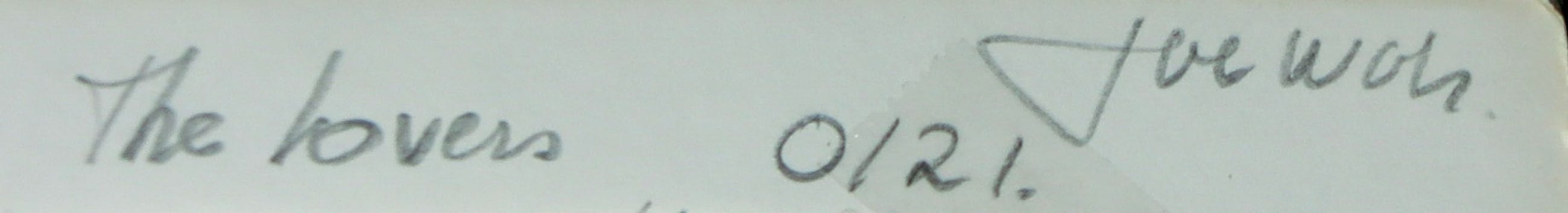 | Kleine duik in het karton aan de rechterzijde. Wat vlekken op het Passe-partout. | |||