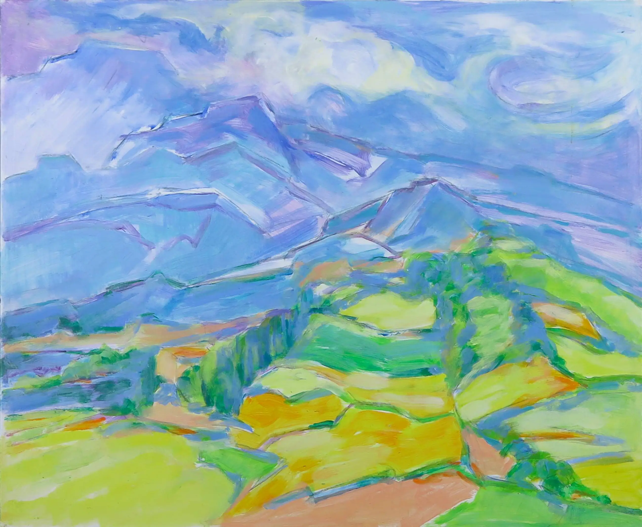 Joe Wols - Acryl op papier, Berglandschap - Ingelijst - Verkocht