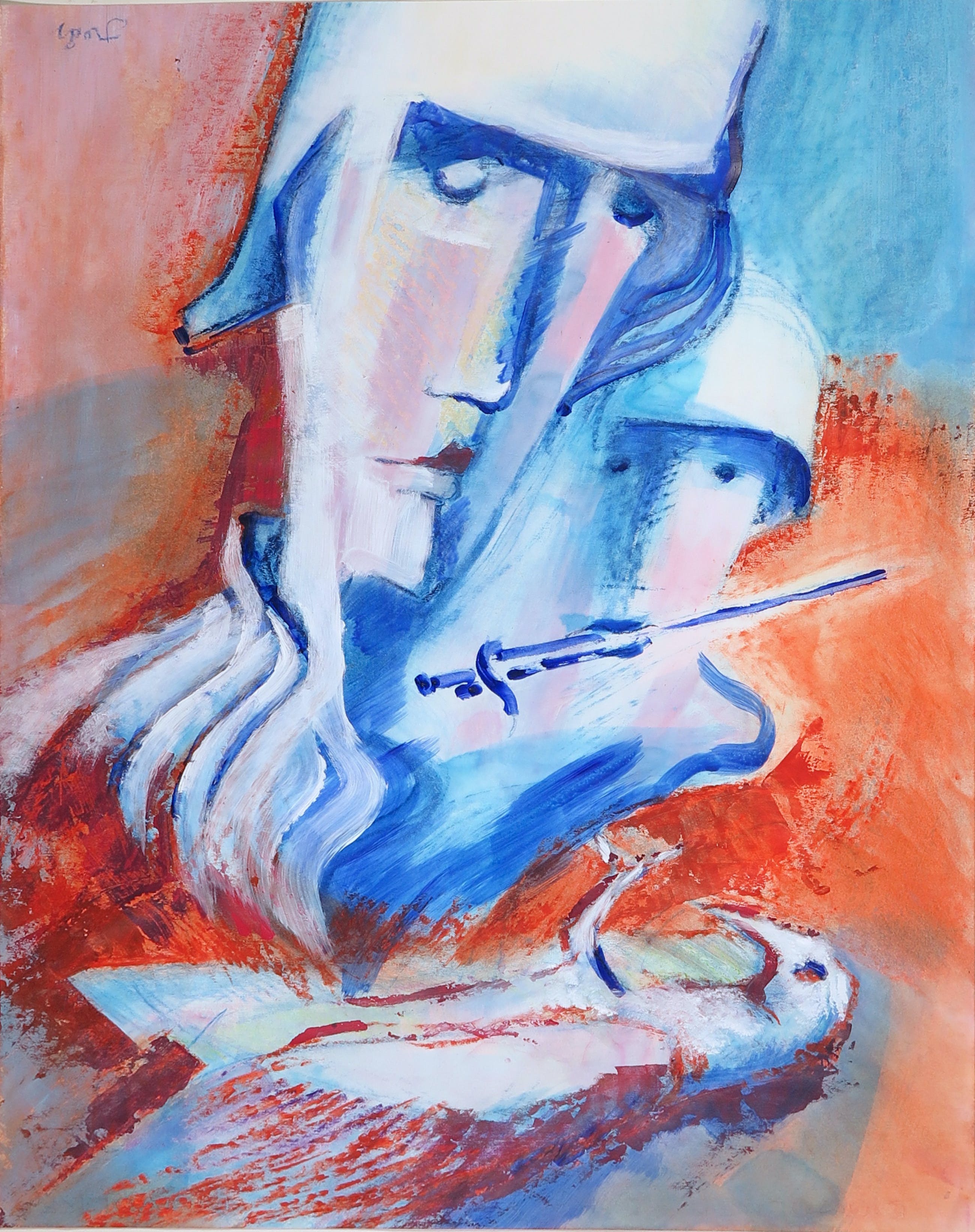 Het kunstwerk zit niet vast aan een stevig onderblad. De afmetingen van het werk zijn: Hoogte 70 cm x breedte 50 cm