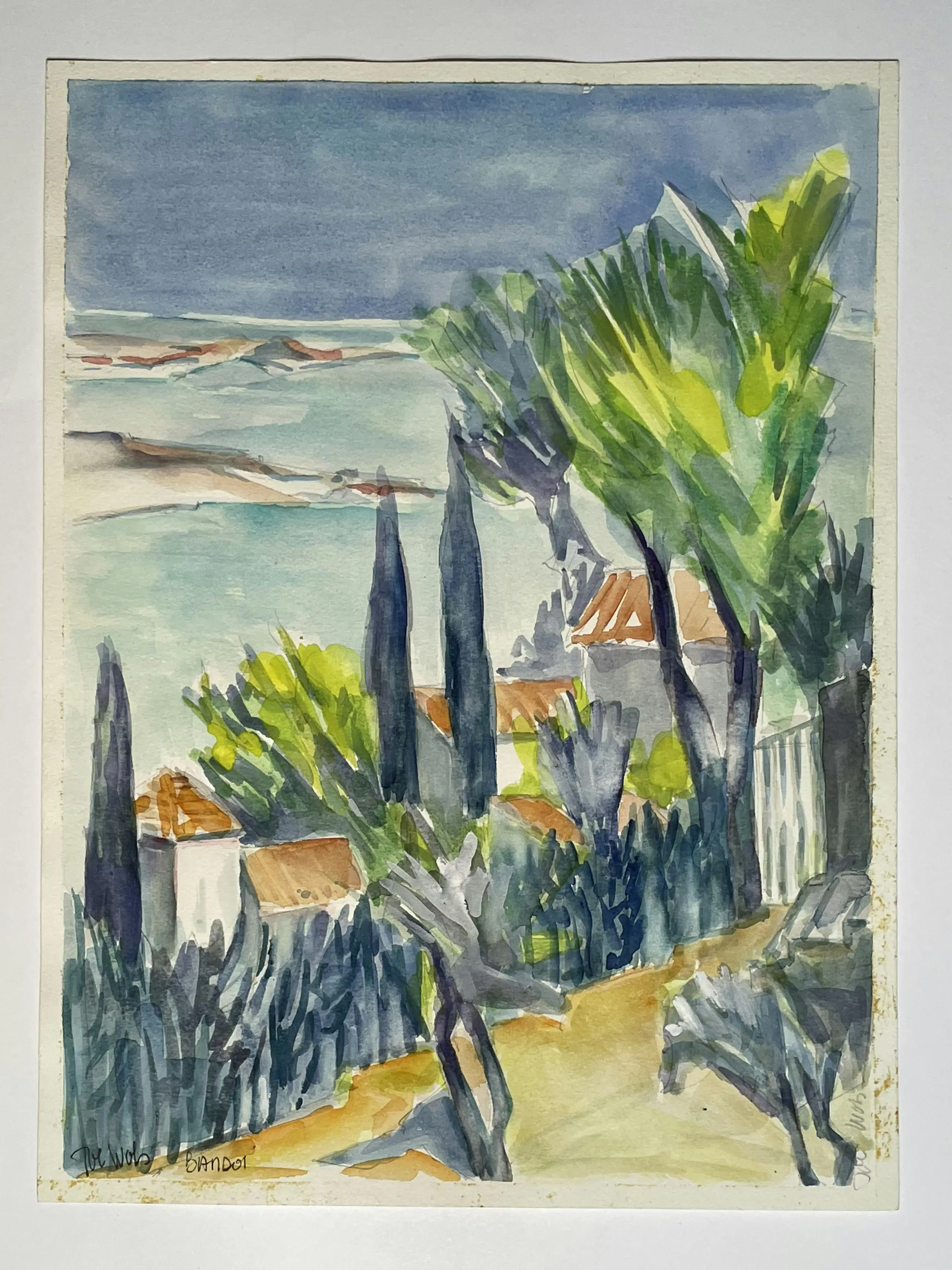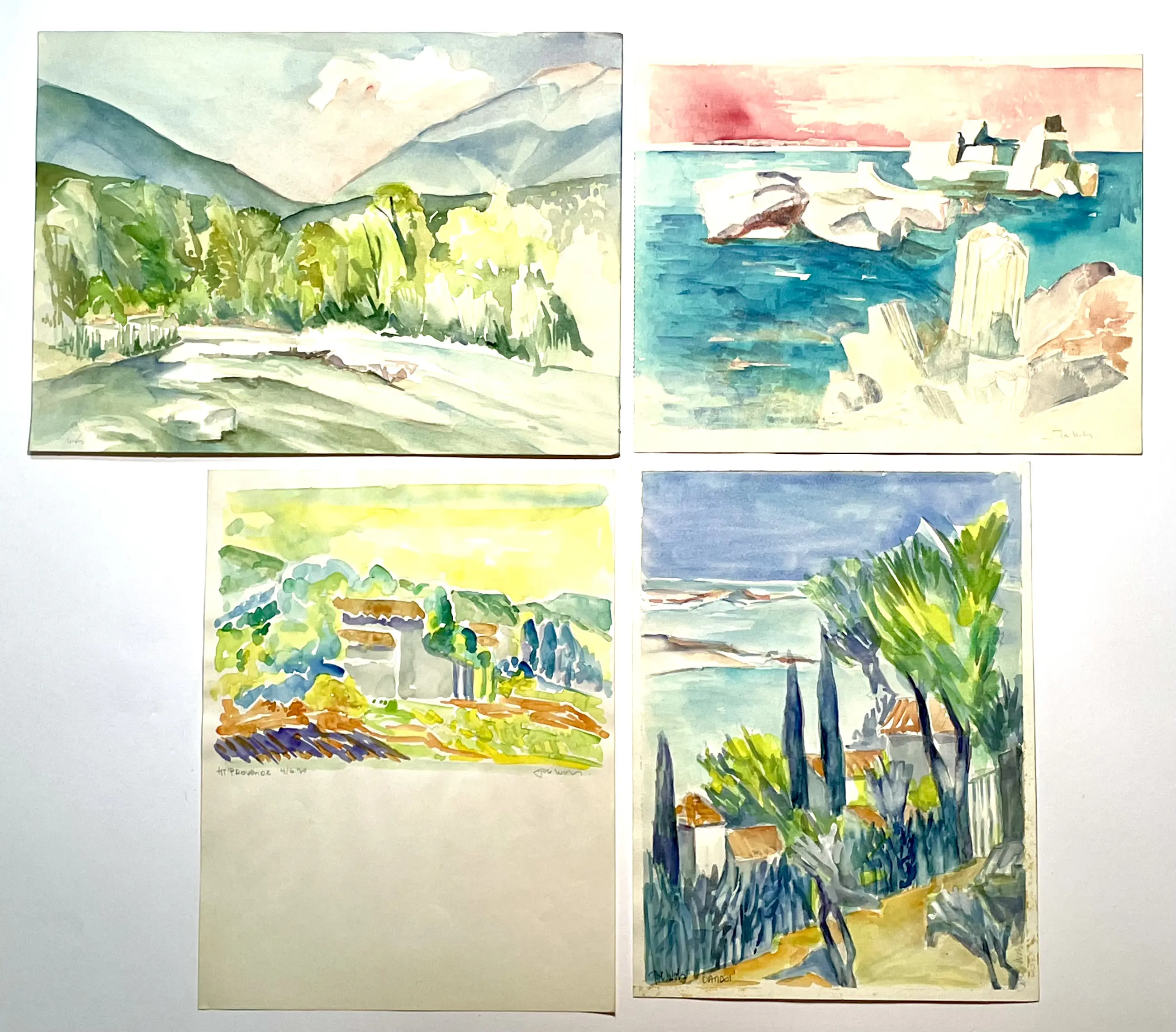 Lot met 4 aquarellen van Joe Wols. Het grootste werk is 26 x 36 cm en het kleinste is 17 x 24 cm op een vel papier van 32 x 25 cm.