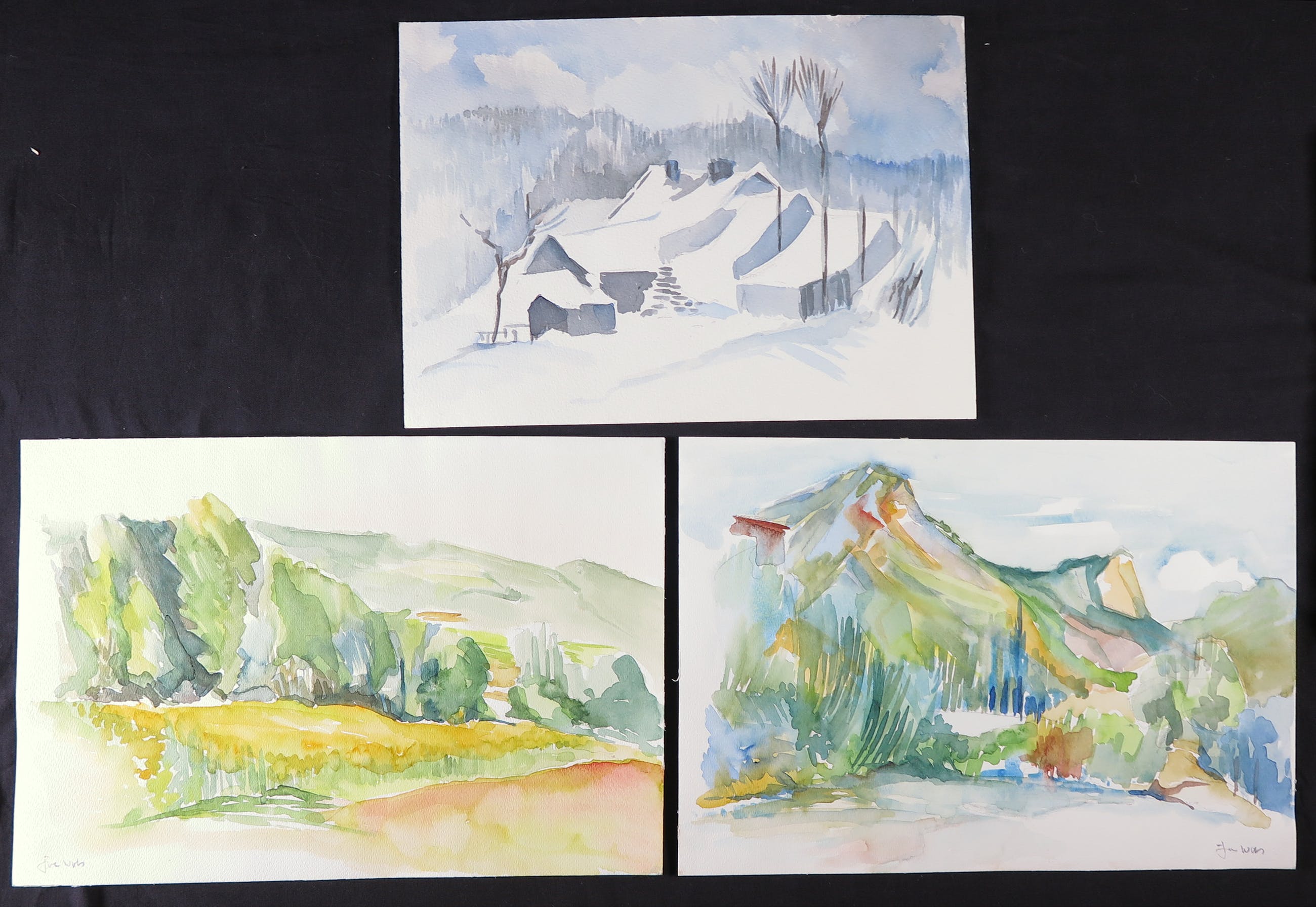 Dit lot bevat drie werken aquarellen op papier gemaakt door Joe Wols. De afmeting van het grootste werk is in de omschrijving gebruikt.