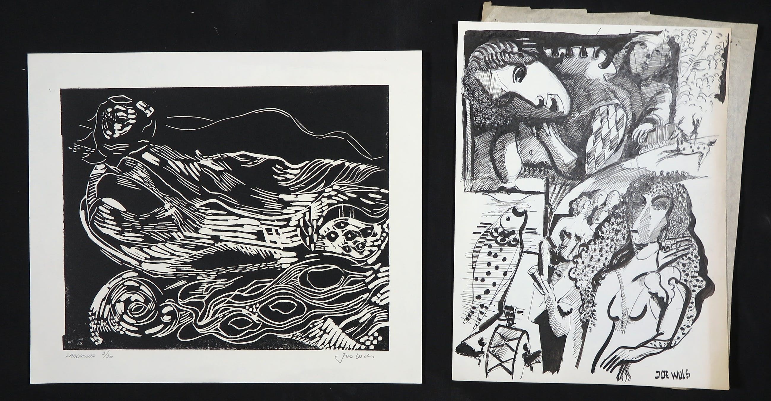 Dit lot bevat twee werken van Joe Wols, waarvan één tekening en één houtsnede.