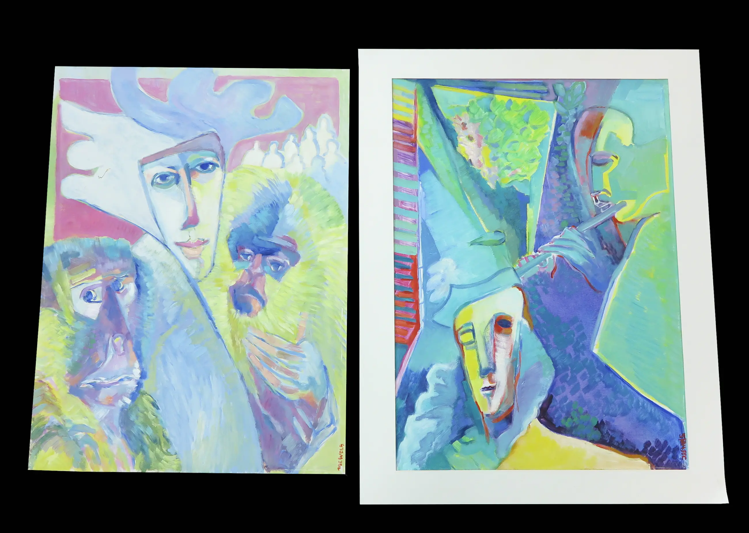 Het betreft een lot van twee originele werken. De gegeven maten zijn van de uiterste randen van het Passe-partout van het rechter werk, het linker werk heeft de volgende afmetingen: 80 x 61.5 cm.