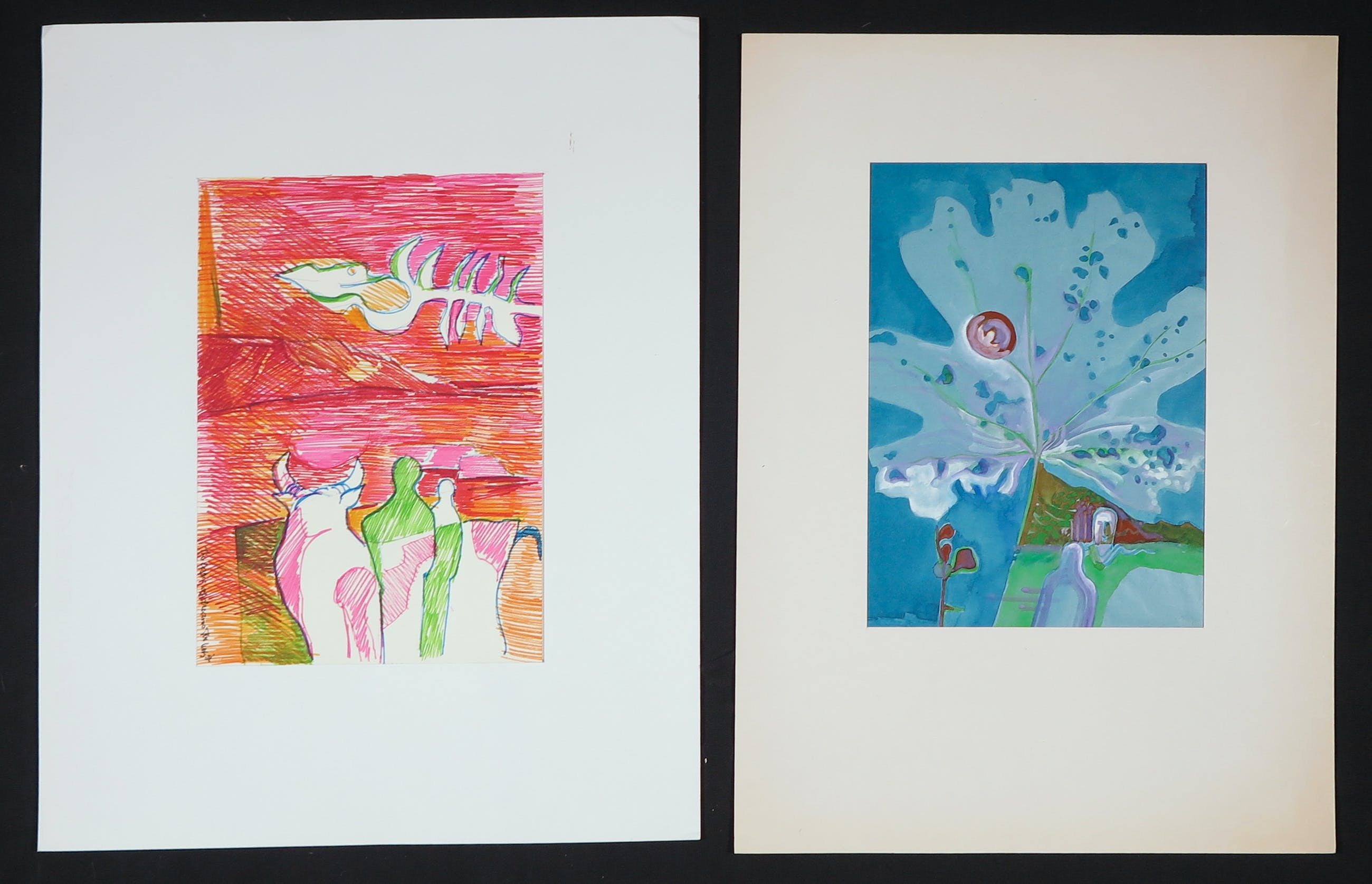 Beide werken zijn in redelijke goede staat, wat kleur verschil in het passe-partout. | |||||||||||
