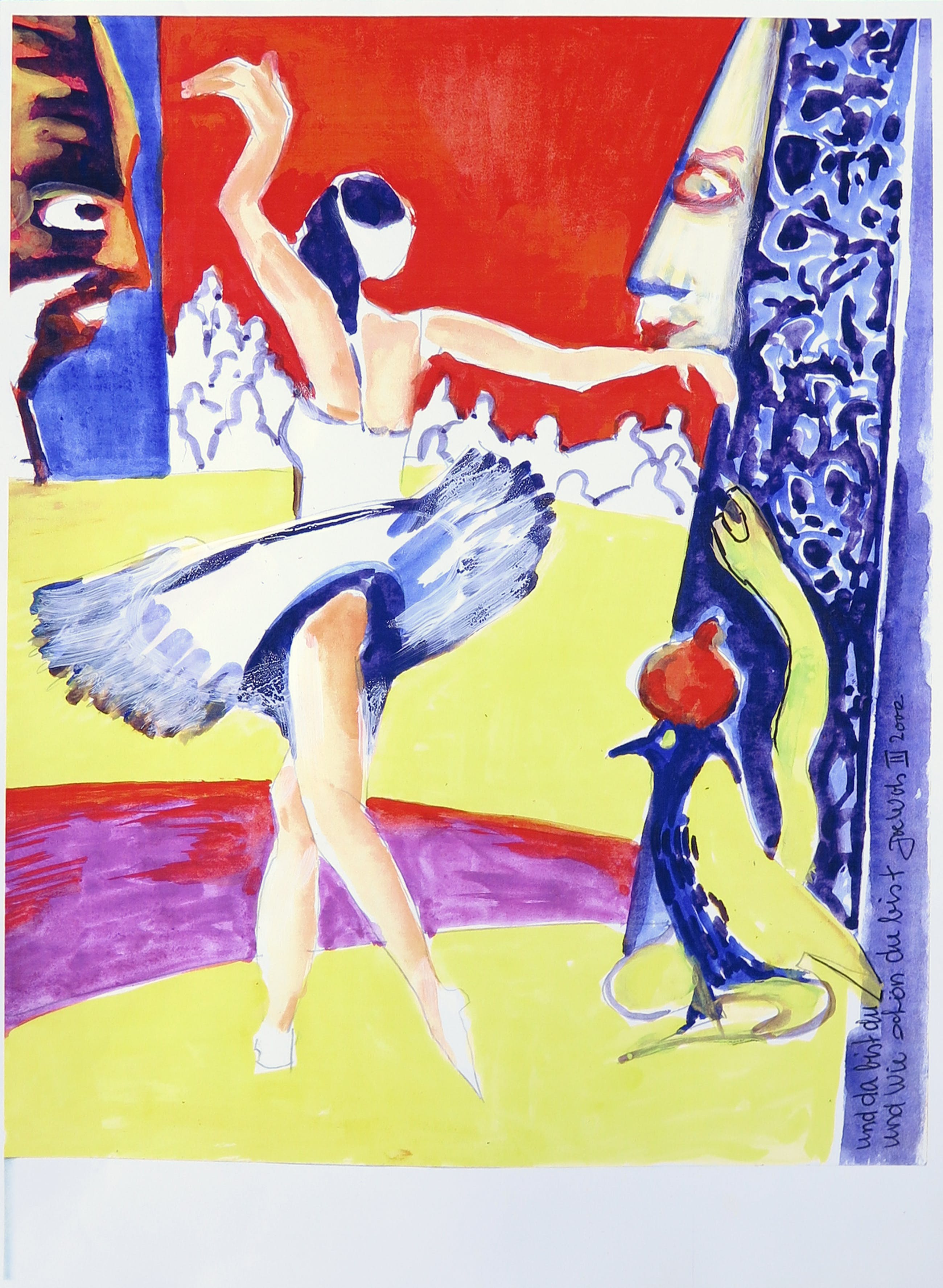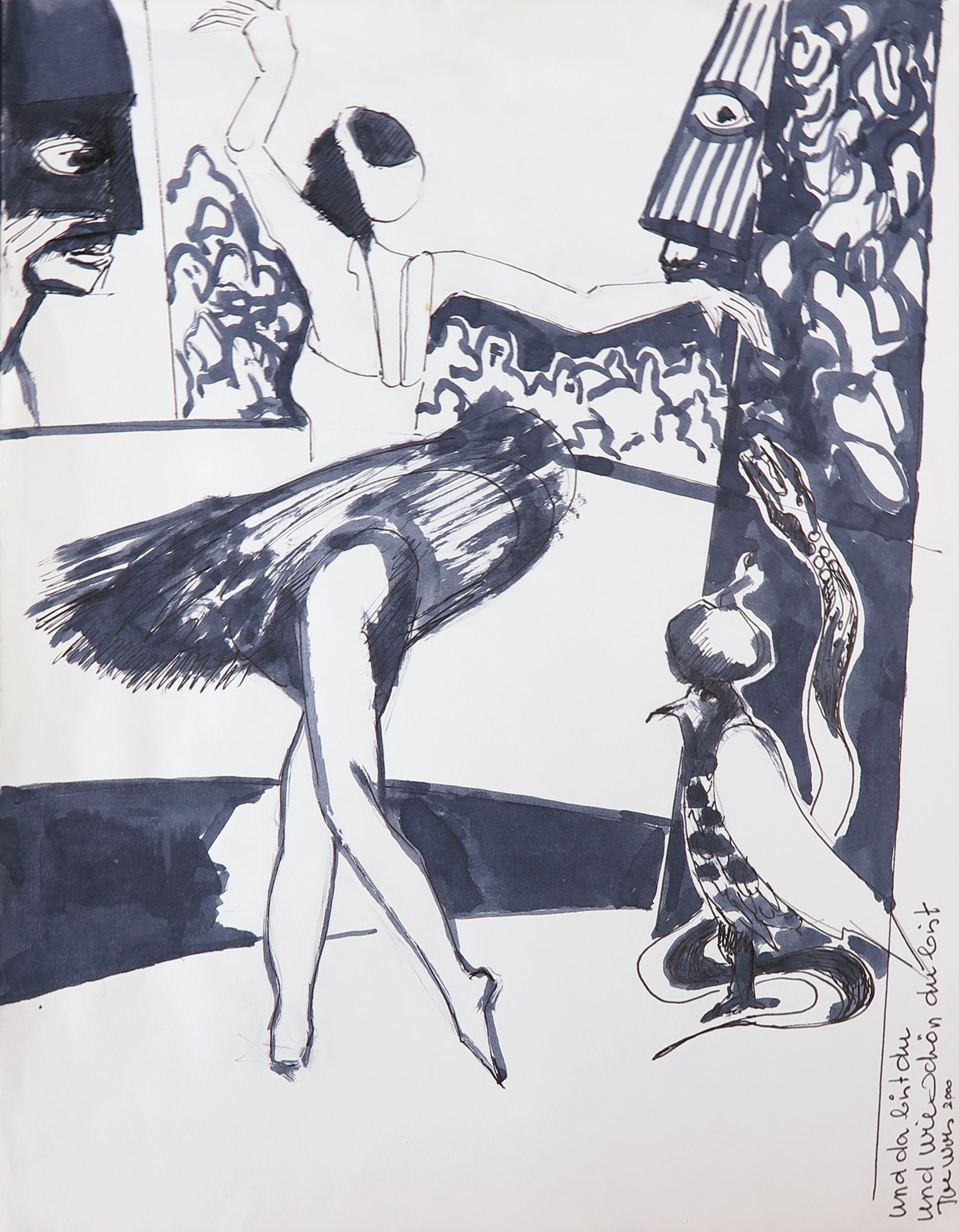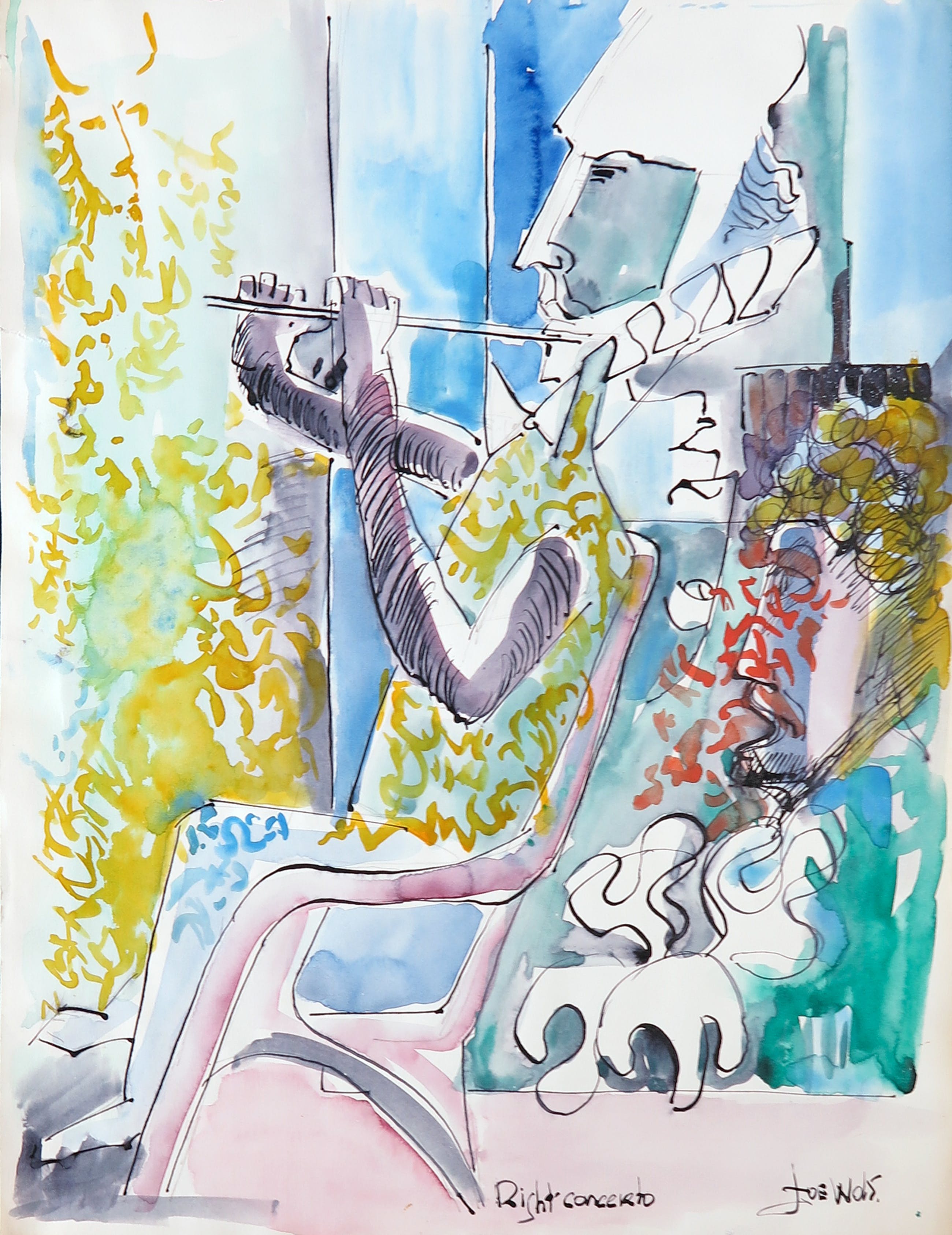 Dit lot bevat vier werken van kunstenaar Joe Wols. Drie hiervan zijn aquarellen en één werk is met penseel getekend. Het werk met de grootste afmeting is gebruikt voor de omschrijving.