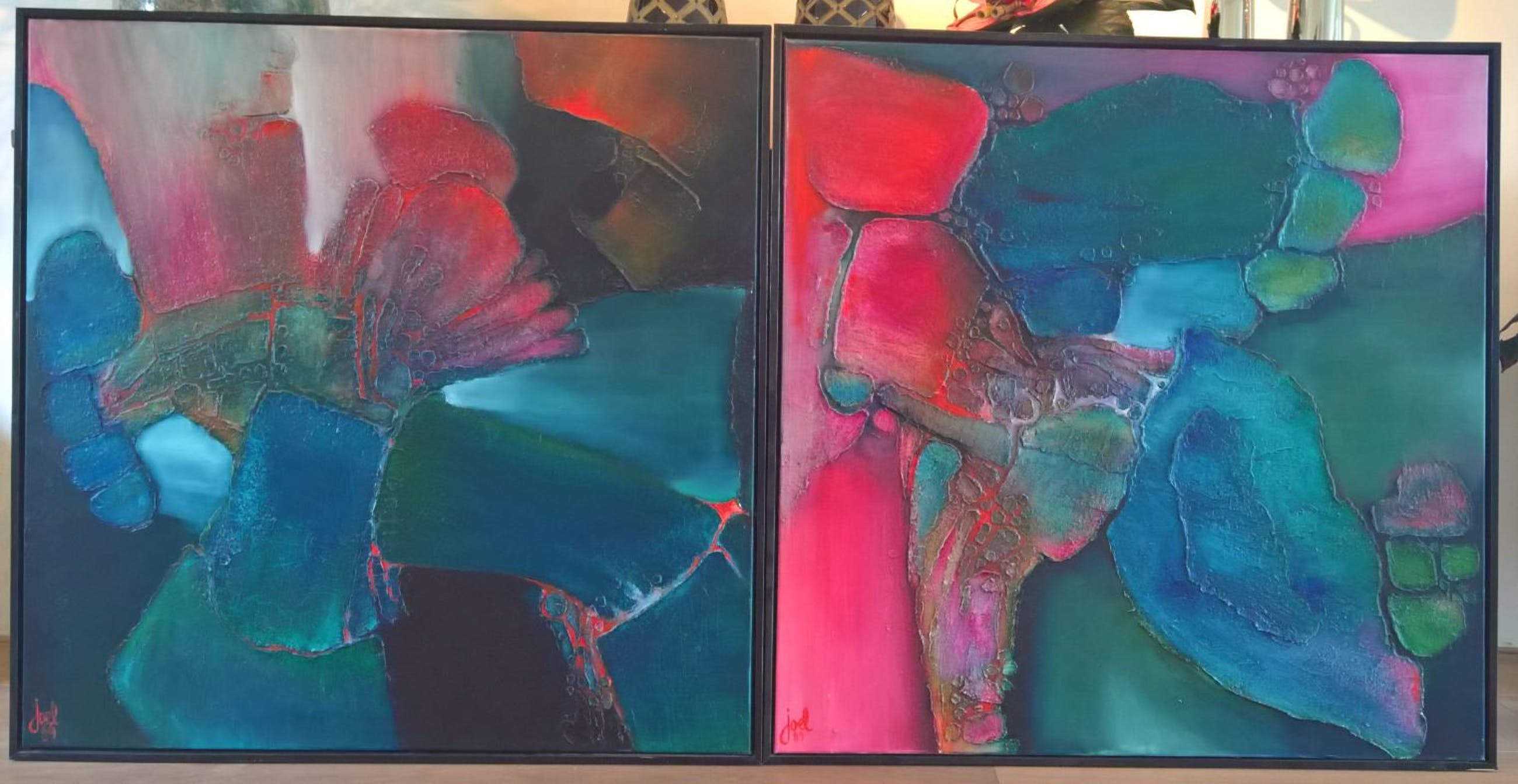 Galeriewaarde van deze werken van 100x100 is op dit moment meer dan 2000,- euro per stuk.