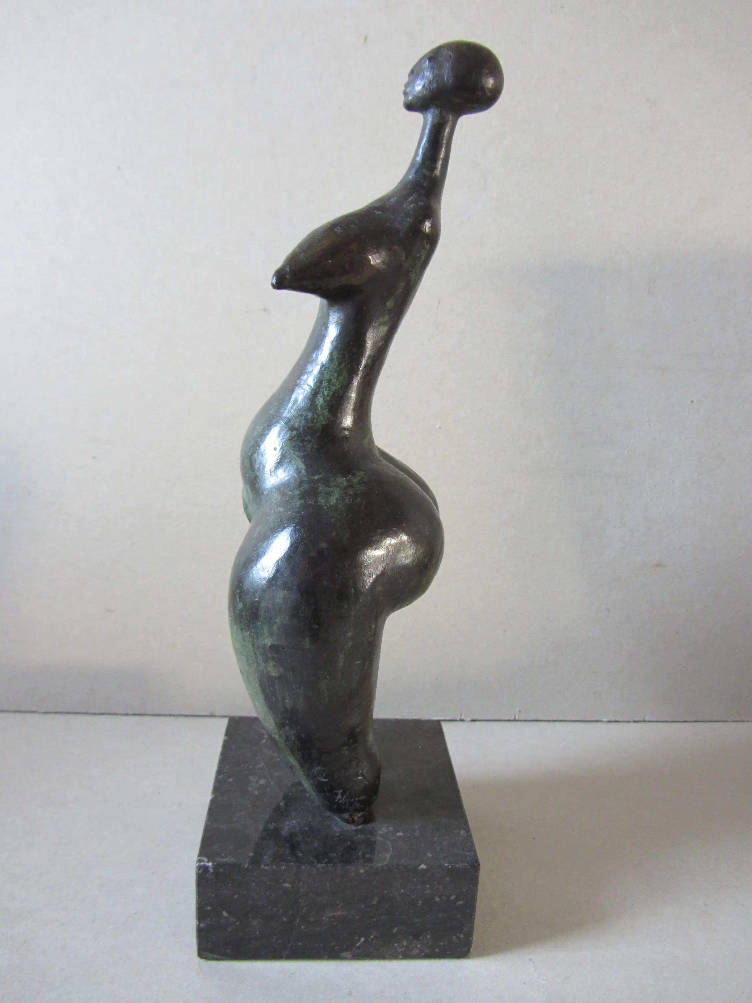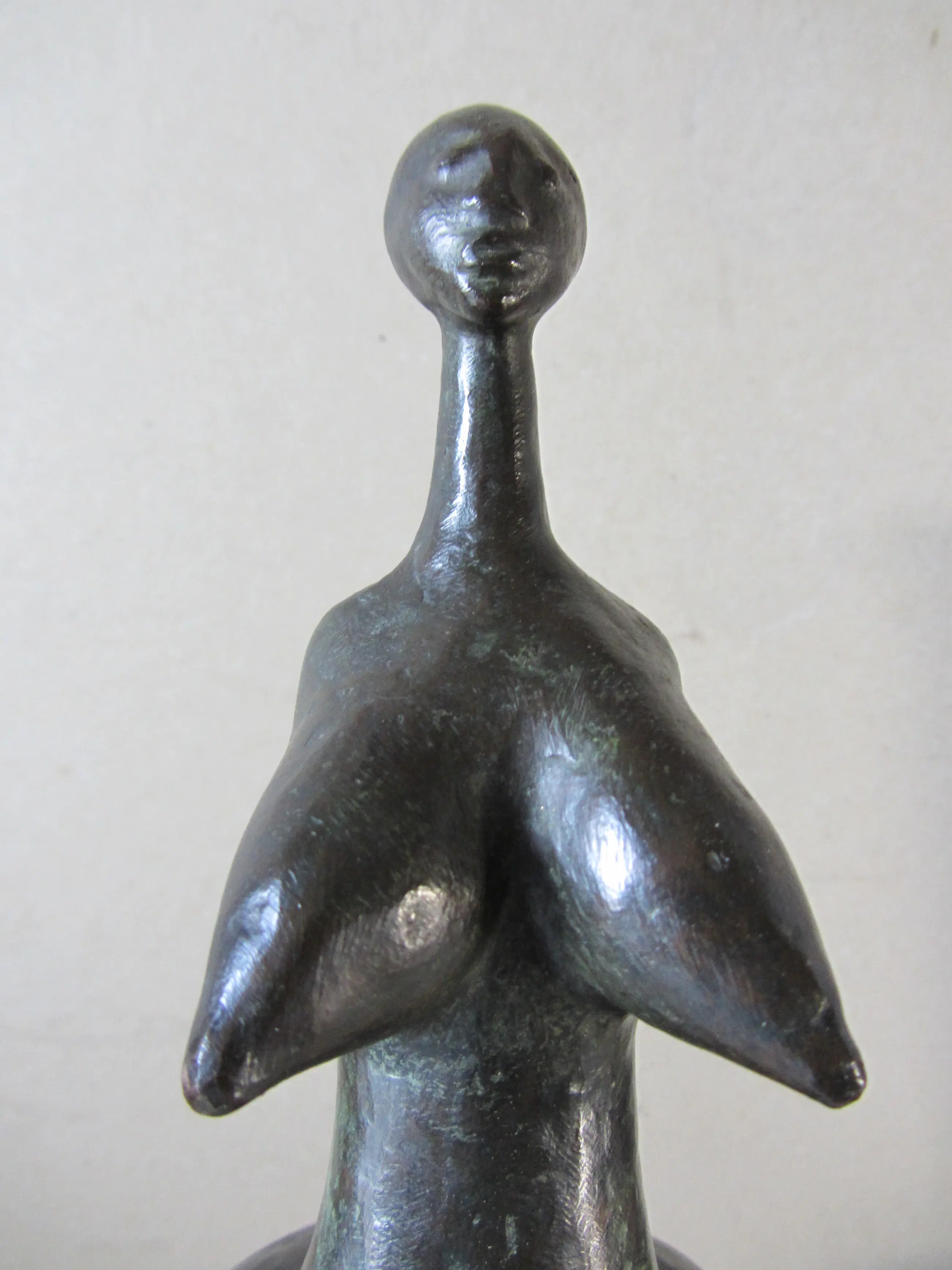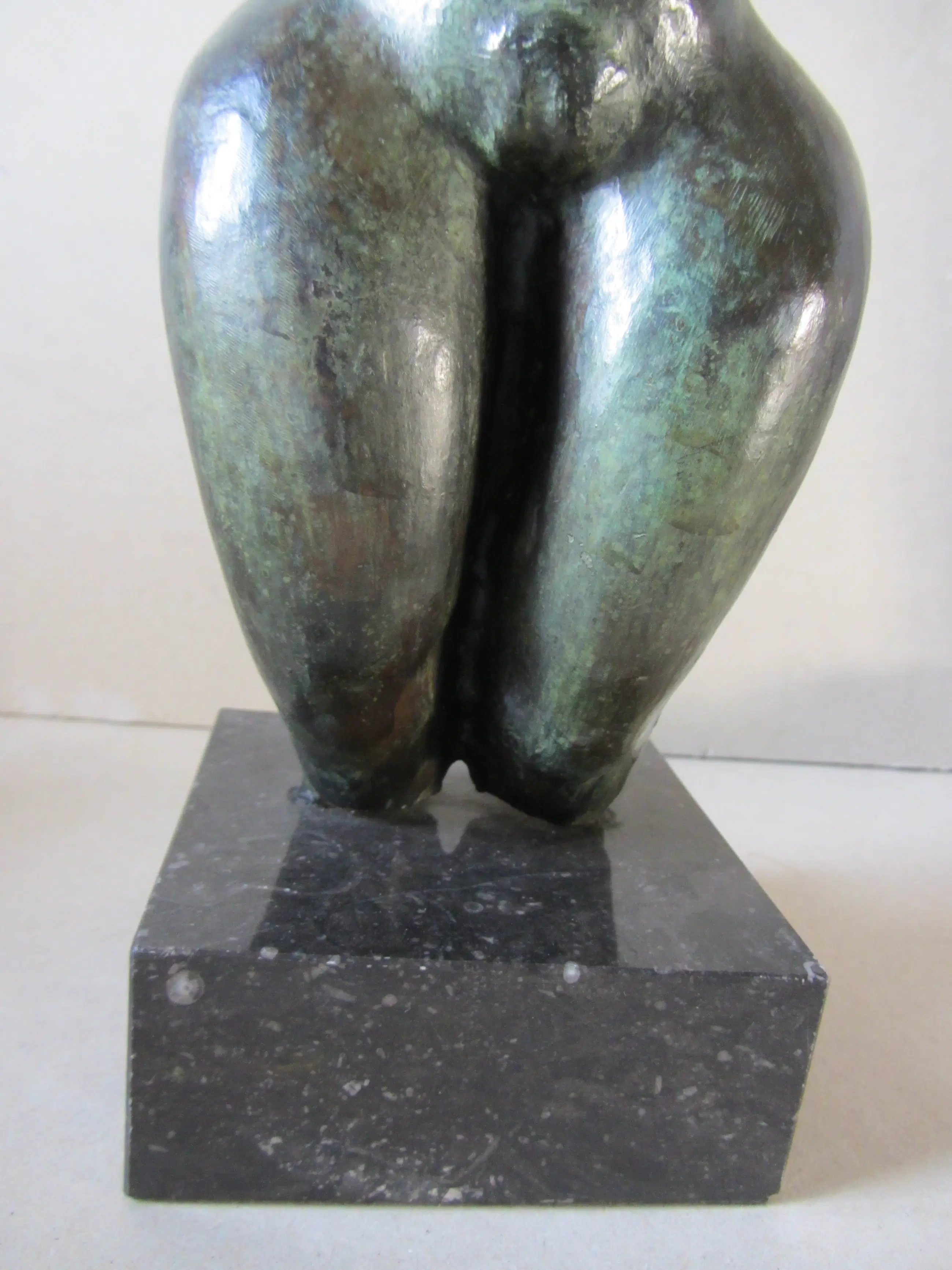 Bronzen beeld uit 1970 van de kunstenaar Joep Coppens (1940-2024). Getiteld: Venus Afmeting inclusief sokkel: hoogte 33 cm breedte 10,5 cm diepte 10 cm Oplage: 7/9 Gemerkt: CJ 70 7/IX In zeer goede staat.