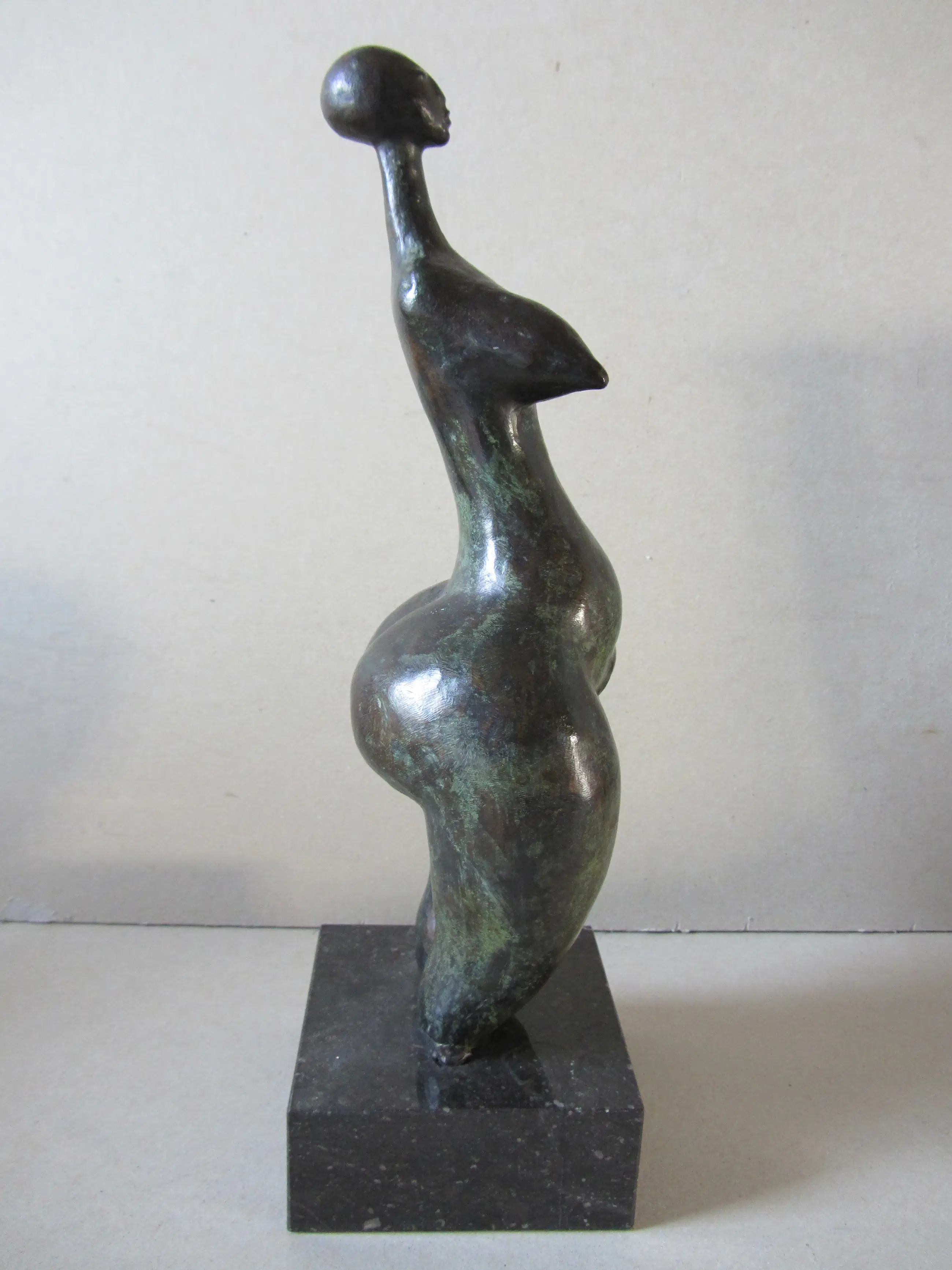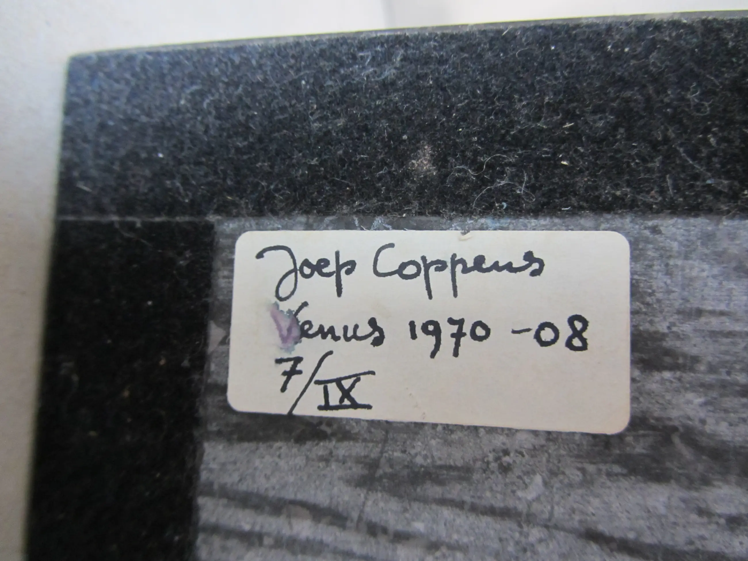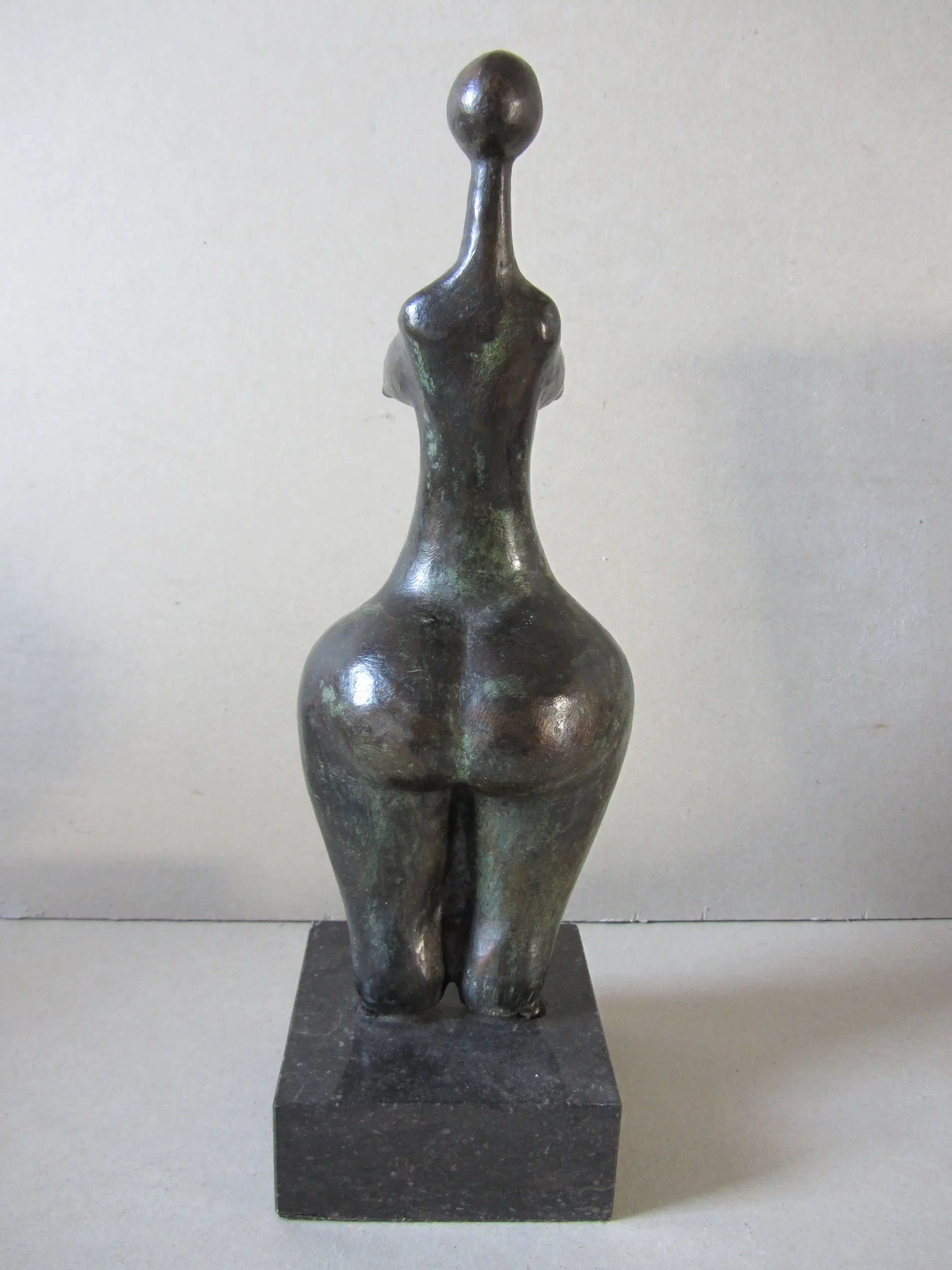 Bronzen beeld uit 1970 van de kunstenaar Joep Coppens (1940-2024). Getiteld: Venus Afmeting inclusief sokkel: hoogte 33 cm breedte 10,5 cm diepte 10 cm Oplage: 7/9 Gemerkt: CJ 70 7/IX In zeer goede staat.