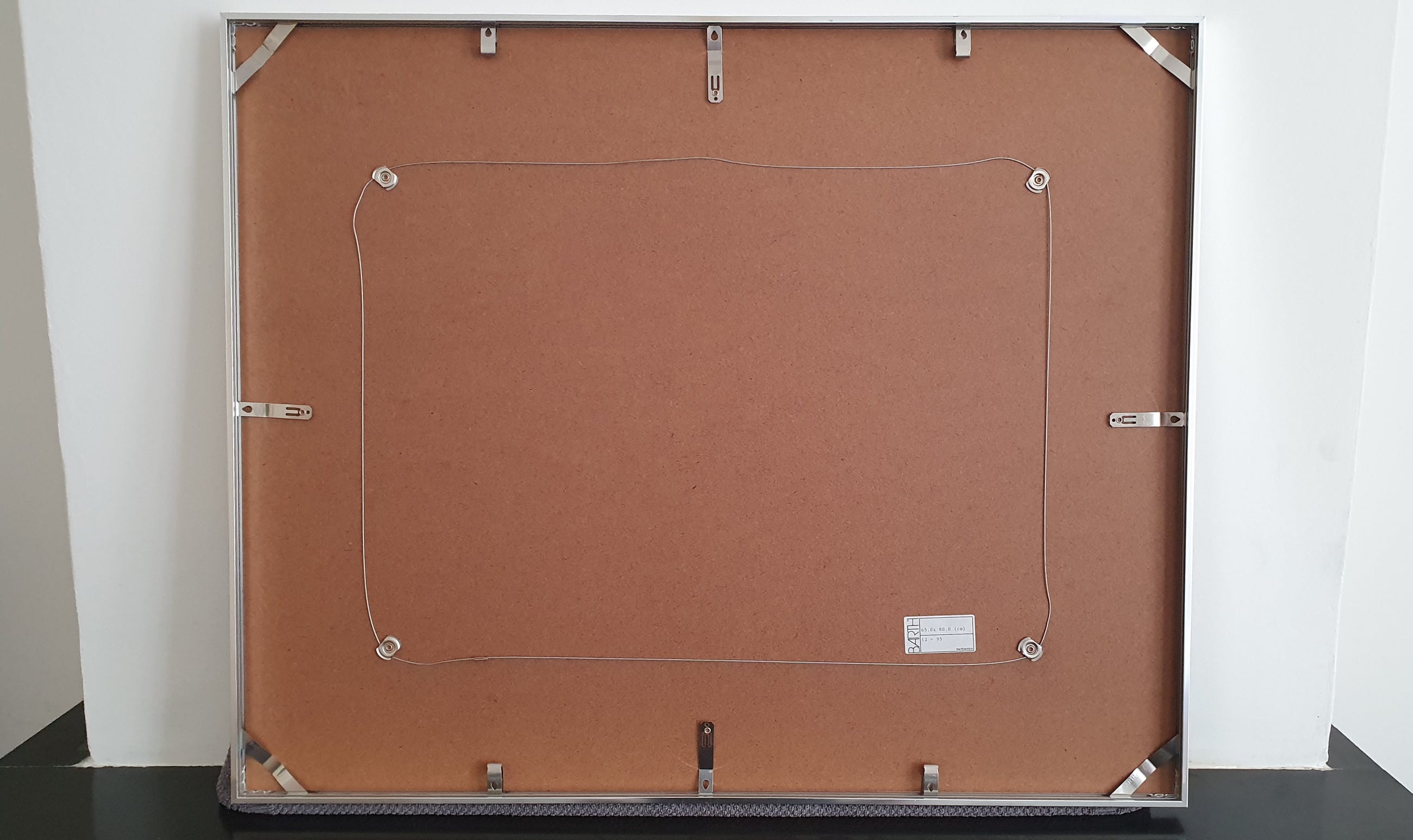gedateerd (’92) midden onder. In aluminium lijst, achter glas en