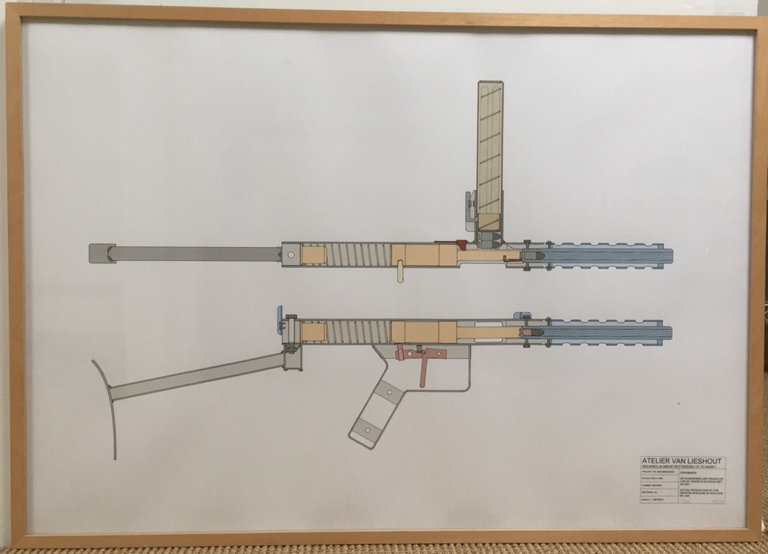 Doorsnede 'AVL Machinegeweer', in druk gedateerd APRIL 8 1998, gesigneerd in potlood AVL '99. Oplage 51/65. In blank houten Barth lijst. Afmeting inclusief lijst: 73 x 103 cm.